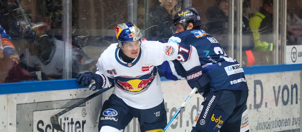 Schlechter hätte das Spiel aus Sicht der Gäste nicht beginnen können. Mit dem ersten Schuss aufs Tor erzielte Jeremy McKenna in der 3. Spielminute die Führung für die Hausherren. Und die roten Bullen legten in der 7. Spielminute gleich nach. Konrad Abelshauser traf zum 2:0. Es ging weiter fast ausschließlich in eine Richtung – auf das Tor von Hendrik Hane. Ihre größte Chance hatten die Gäste ausgerechnet in Unterzahl, als Daniel Geiger auf der Strafbank saß. Aber Henrik Törnqvist konnte den Fehler der Münchener nicht nutzen. Zumindest kamen die Gäste jetzt etwas besser ins Spiel. Daniel Fischbuch scheiterte Sekunden vor dem Drittelende am glänzend reagierenden Red Bull-Keeper Antoine Bibeau. Es blieb bei der verdienten Führung der Gastgeber bis zur ersten Pause.