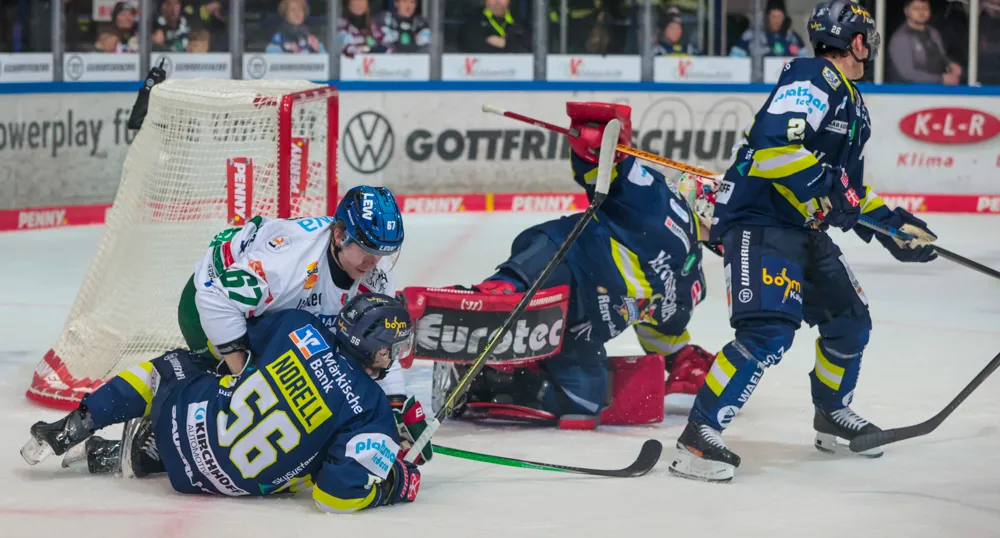Nix war's mit dem erhofften dritten Sieg der Roosters in Folge. Am zweiten Blaulicht-Heimspieltag, bei dem Feuerwehr und Rettungsdienst im Fokus standen und die Sauerländer mit leuchtenden Trikots aufliefen, verloren die Sauerländer vor 4331 Zuschauern mit 1:4 gegen die Augsburger Panther.