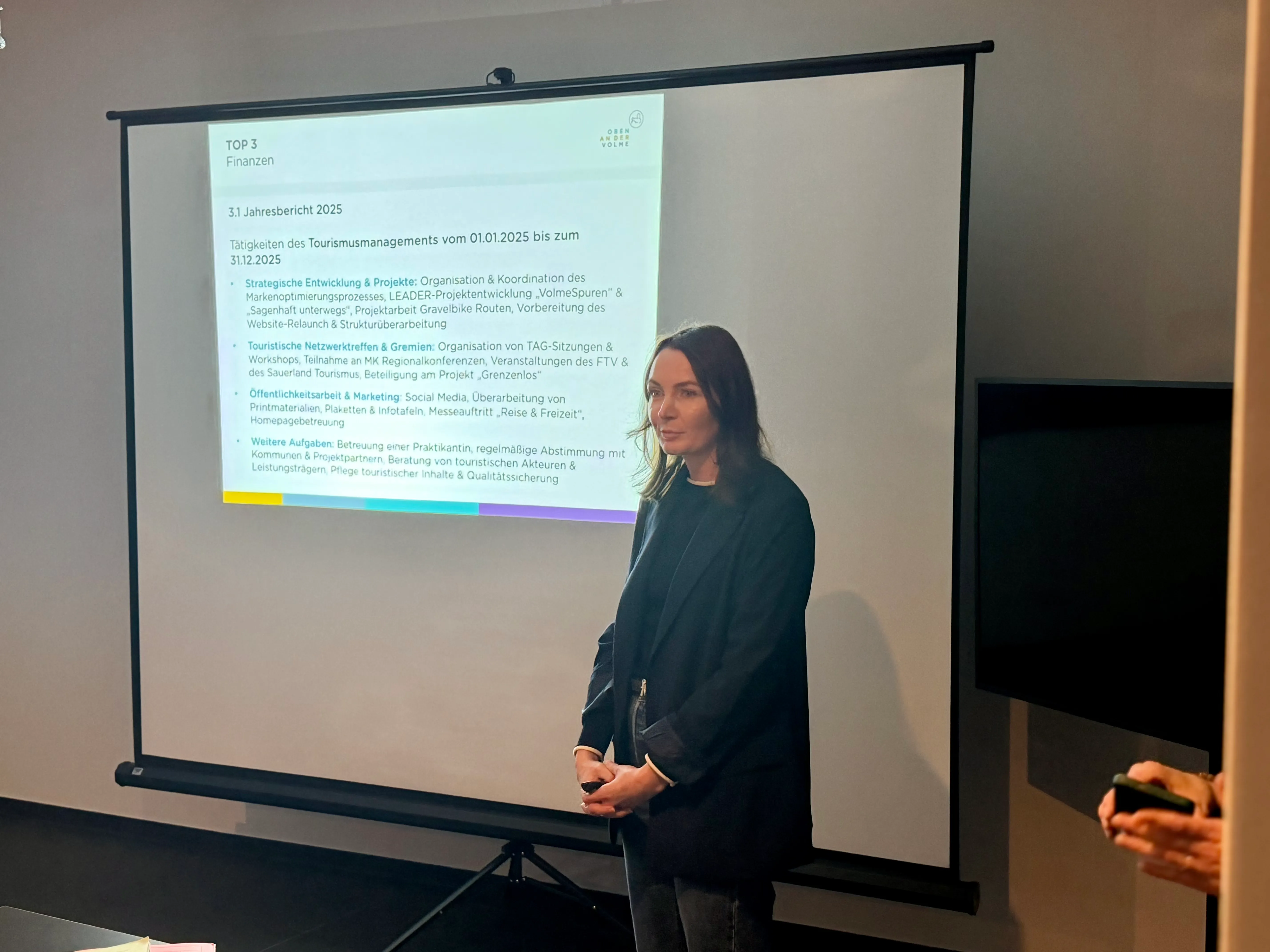 Auch Vivien Bömer, Tourismusmanagerin der Region, berichtete über ihre Tätigkeiten im vergangenen Jahr sowie ihre Planungen für 2026. Dazu zählen die Initiierung der beiden Projekte „Sagenhaft unterwegs“, bei dem es um die weitere Qualifizierung der bestehenden „Sagenwelt Oben an der Volme“ u. a. mithilfe von digitalen Elementen geht, und „Volme Spuren Industriekultur“.