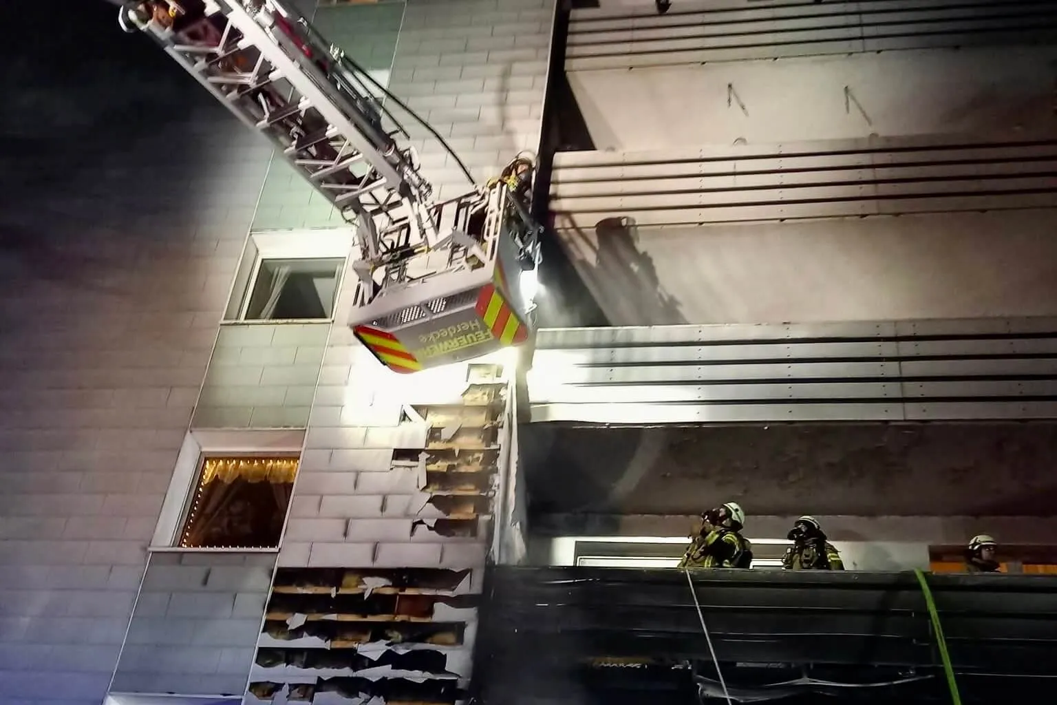 Kurz nach Mitternacht kam es in Herdecke in der Berliner Straße zu einem Balkonbrand im ersten Obergeschoss eines größeren Wohngebäudes mit rund 150 Bewohnerinnen und Bewohnern. Im weiteren Verlauf griff das Feuer auf Gebäudeteile über. In der Notrufmeldung hieß es, der Treppenraum sei verraucht, zudem befinde sich eine gehbehinderte Frau im vierten Obergeschoss in Gefahr. „Durch den schnellen Einsatz der Feuerwehr Herdecke konnte der Brand gegen 0.40 Uhr unter Kontrolle gebracht werden“, so der KFV-EN. Sechs leicht verletzte Personen mussten vom Rettungsdienst versorgt werden. Unterstützt wurde der Einsatz durch den Leitenden Notarzt, den Organisatorischen Leiter Rettungsdienst sowie eine Drehleiter der Feuerwehr Wetter (Ruhr).