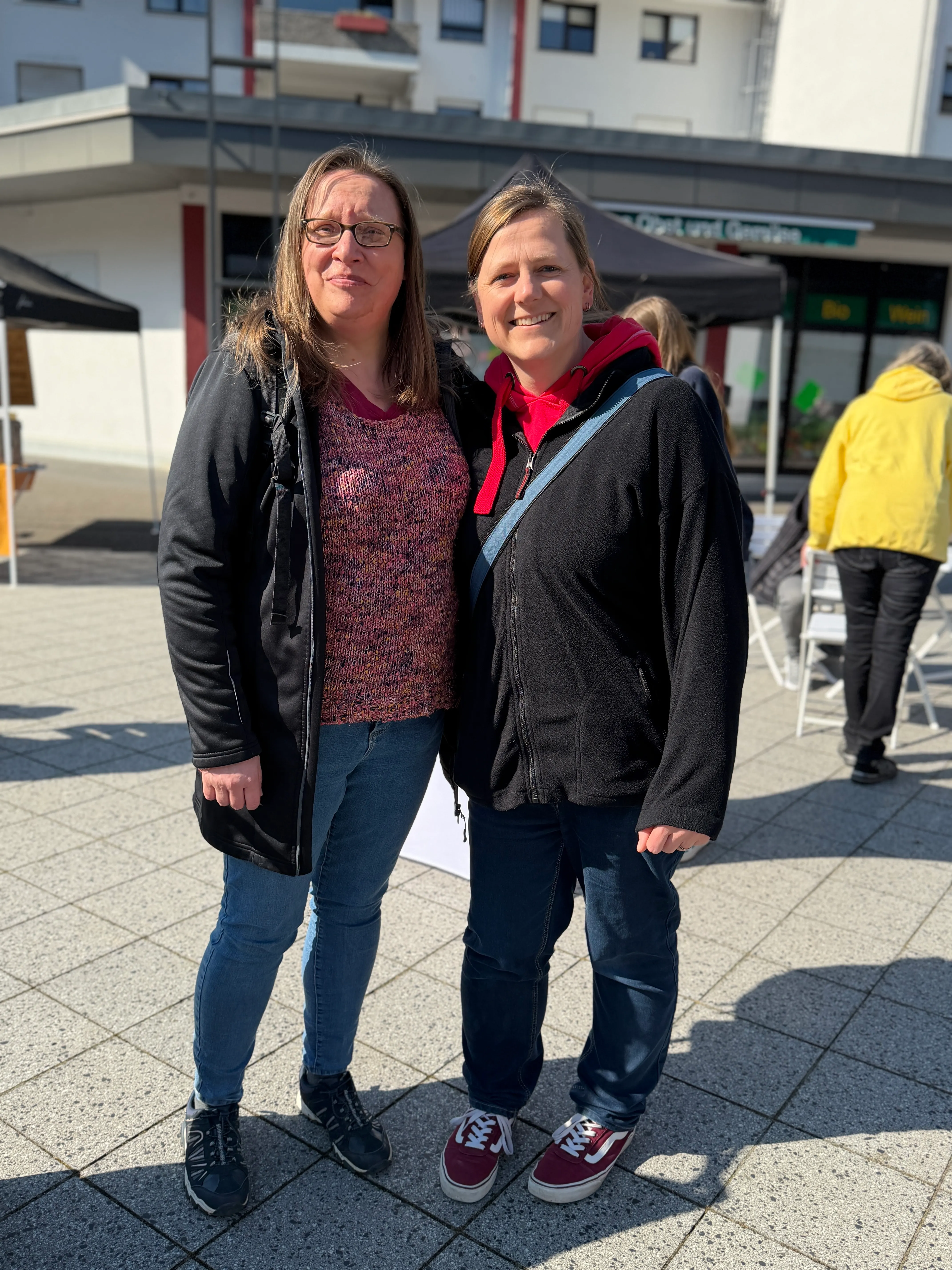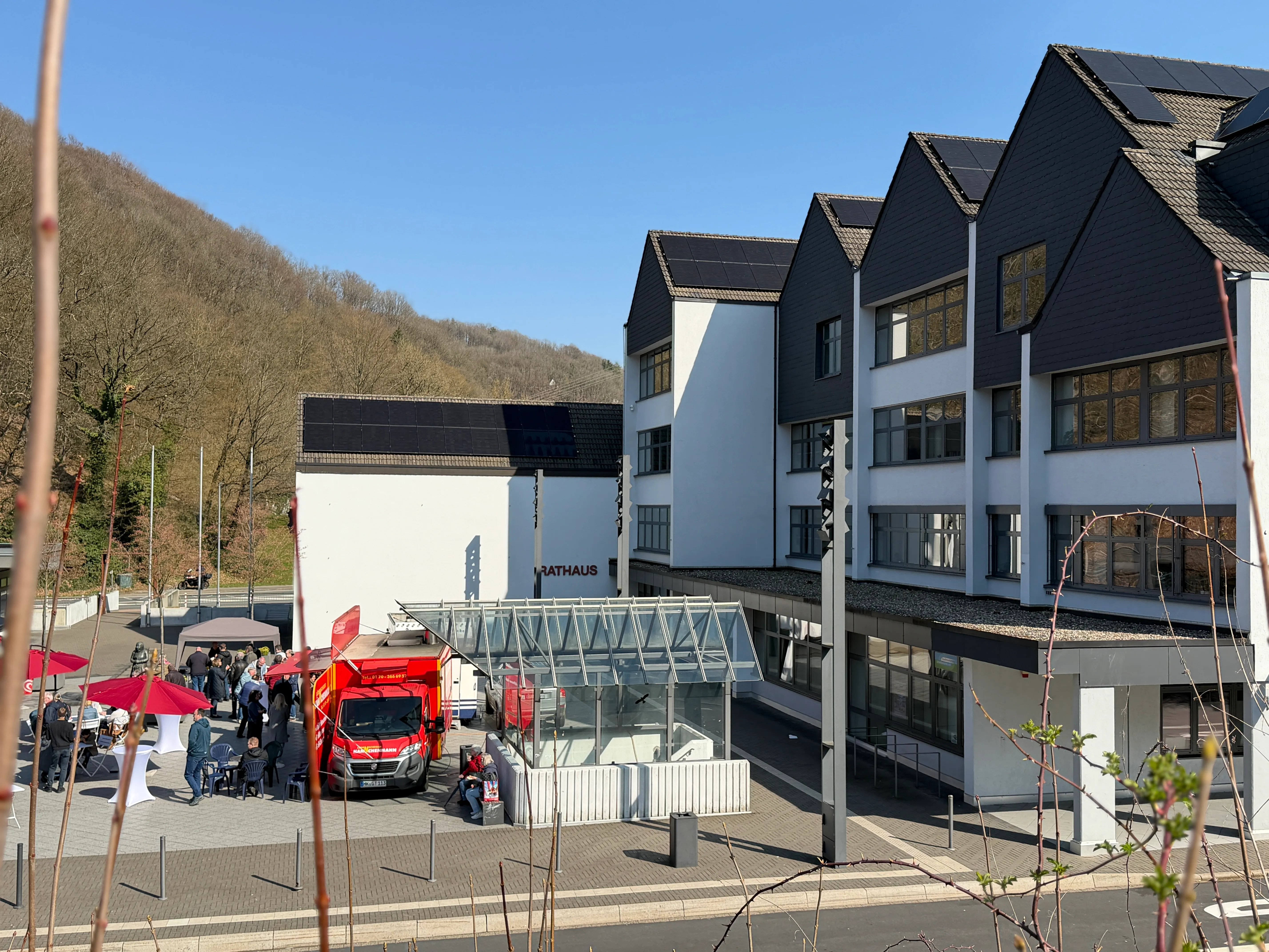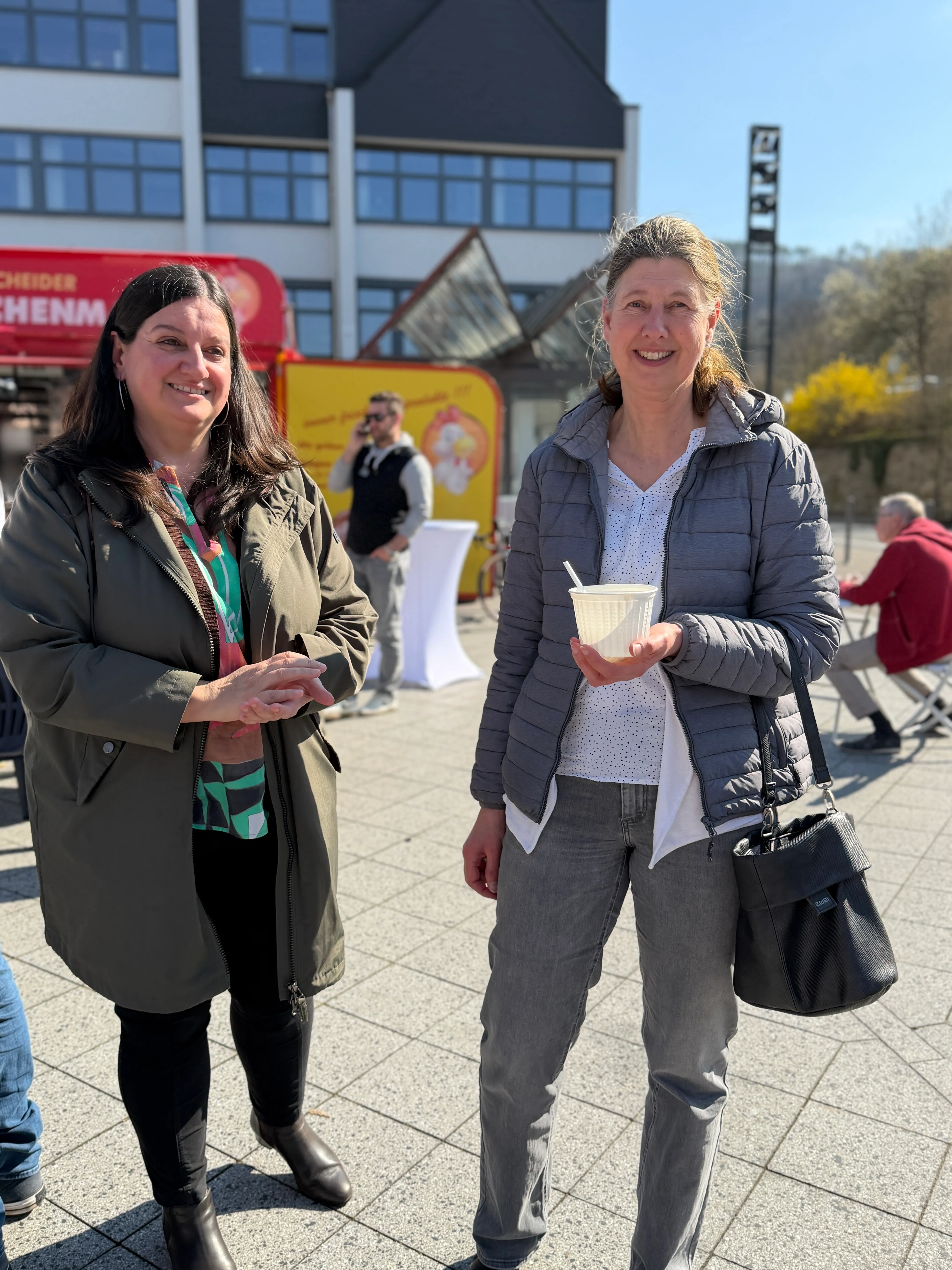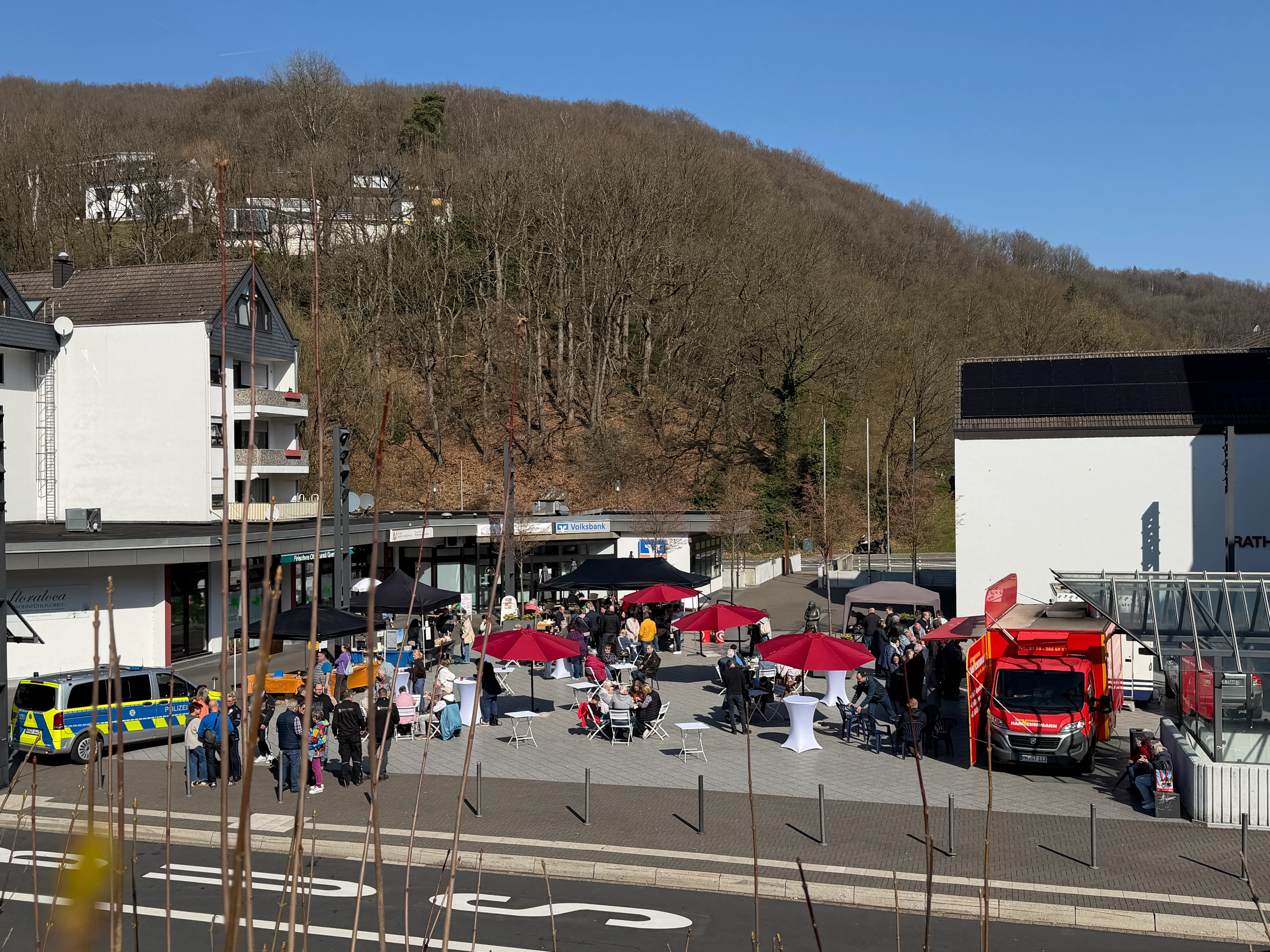 Unter den Gästen auf dem Rathausplatz waren auch zahlreiche Unternehmer aus der Umgebung - unter ihnen Claudia Bremicker vom Schalksmühler Sanitärbetrieb Bremicker. "Um ein Zeichen zu setzen und sowohl die Aktion, aber speziell auch die Händler selbst, zu unterstützen, haben wir heute das gesamte Team zum Mittagessen hierher eingeladen", erklärt sie. "Wir sind ein örtliches Unternehmen, zahlen hier unsere Gewerbesteuer - und freuen uns, wenn das Geld im Ort bleibt."
