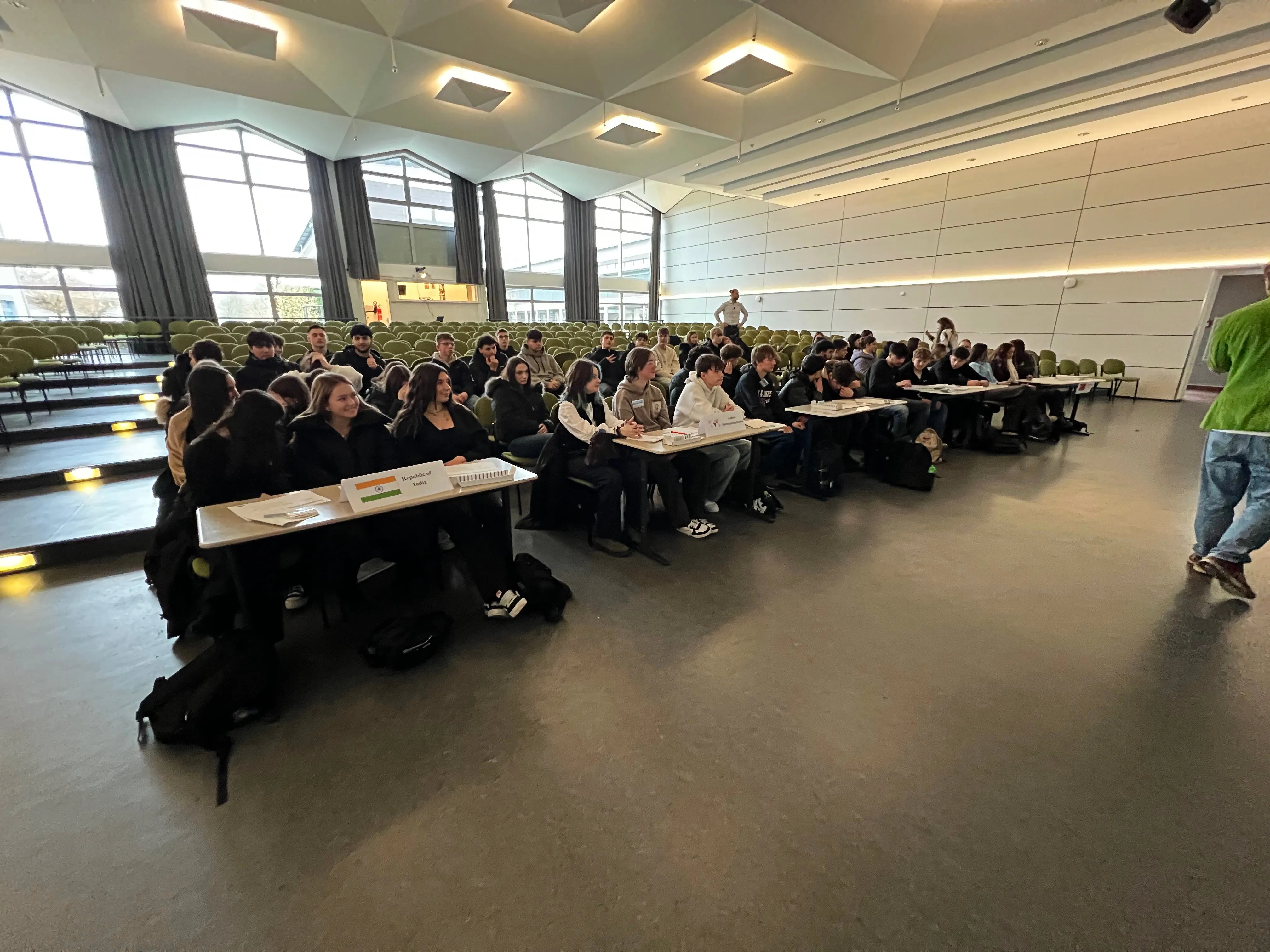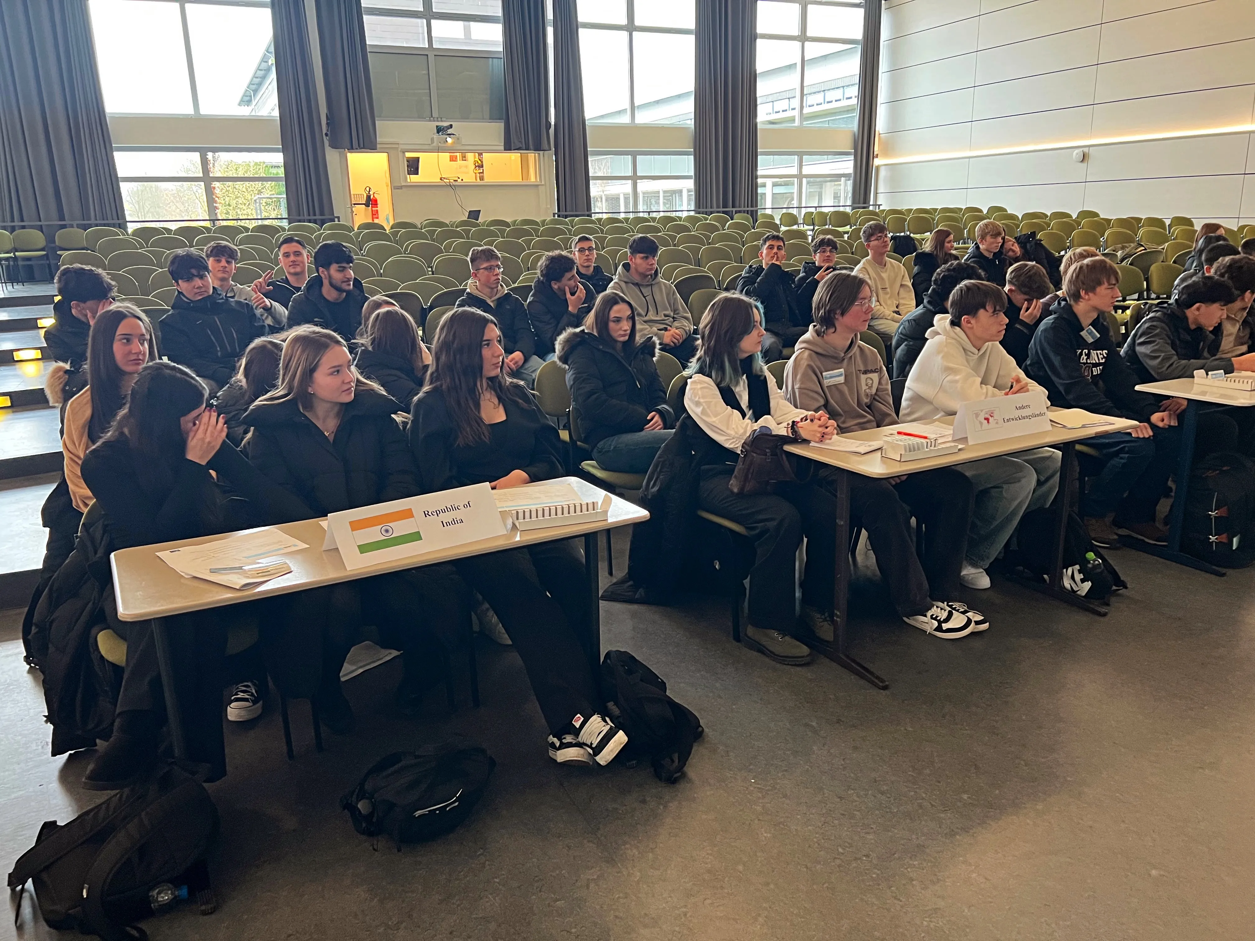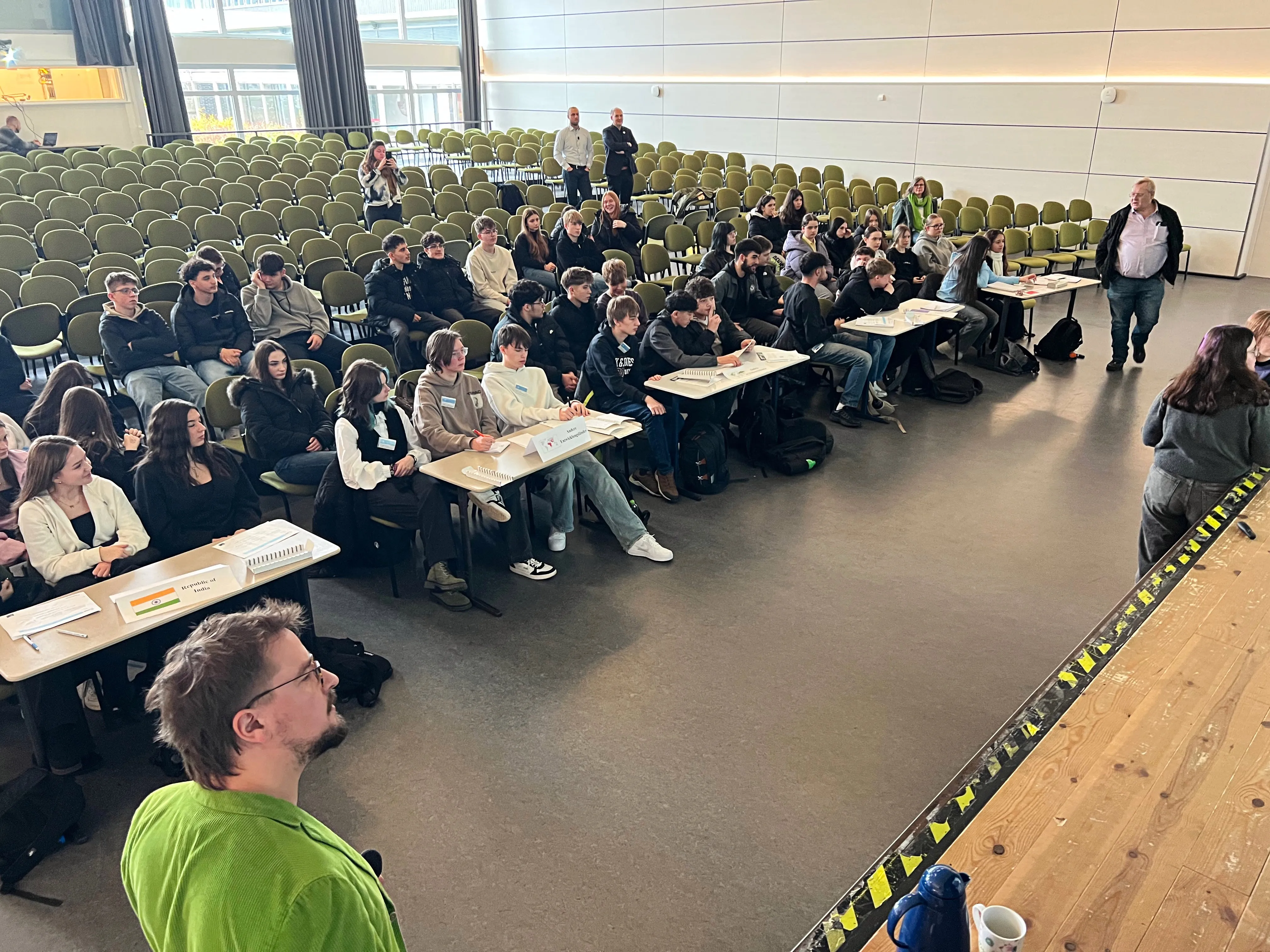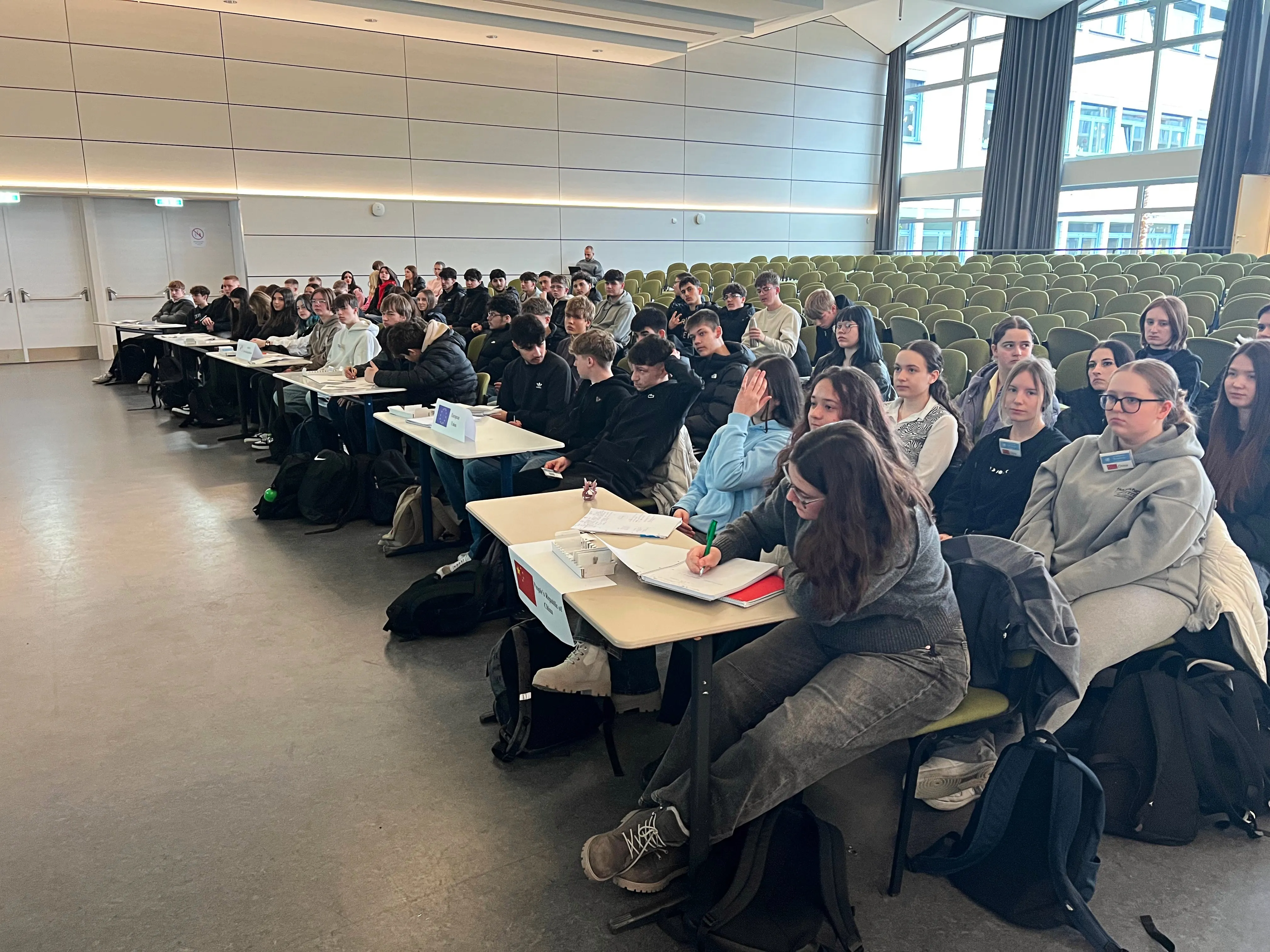 Für einen halben Tag verwandelte sich die Geschwister-Scholl-Realschule in einen Schauplatz internationaler Verhandlungen: Rund 90 Schülerinnen und Schüler der 10. Klassen nahmen an einer Klimakonferenz-Simulation in der Aula teil, bei der eine echte UN-Klimakonferenz nachgestellt wurde. Wie in der Realität mussten die Teilnehmer in Rollen verschiedener Länder durch ihr Verhandlungsgeschick und ihre Entscheidungen versuchen, die Erhöhung der globalen Durchschnittstemperatur auf unter 1,5 Grad zu begrenzen – eine anspruchsvolle Aufgabe, die auch emotional viel abverlangte.