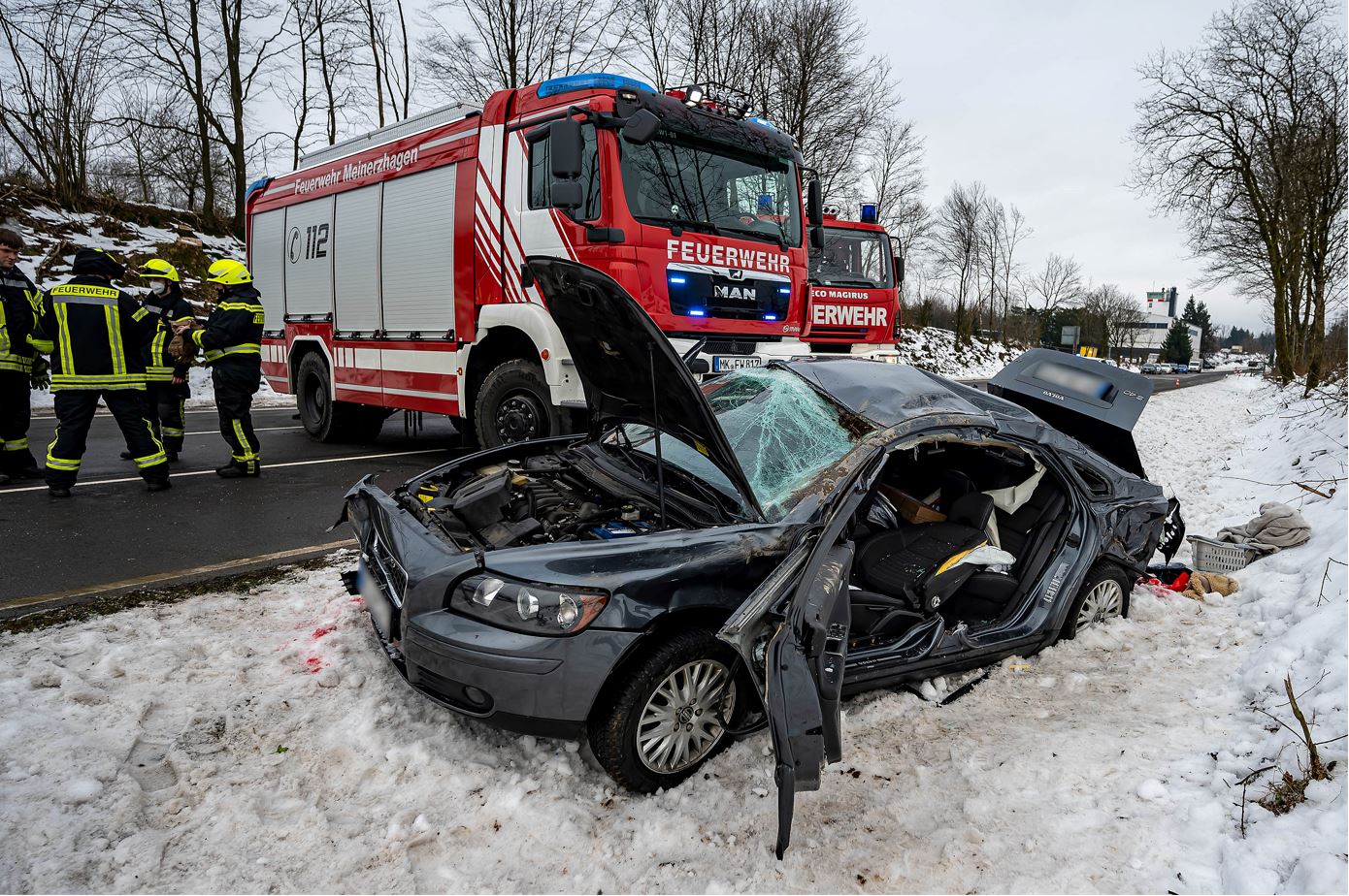 Damit hatten die 15 Kräfte des Löschzug 1 alle Hände voll zu tun, denn aufgrund der Verletzungsmuster entschieden sie sich für die „patientenschonende Rettung“. Dabei wird mit schwerem Gerät soviel demontiert, dass Rettungskräfte die Verunfallten möglichst behutsam aus ihrer Notlage befreien können. In diesem Fall wurden auf der Fahrerseite Türen und die B-Säule herausgetrennt. Auf Blech wird dabei keine Rücksicht genommen, in den meisten Fällen haben die Autos vorher bereits irreparable Totalschäden erlitten. Das gilt auch für den diesmal betroffenen Volvo S40.