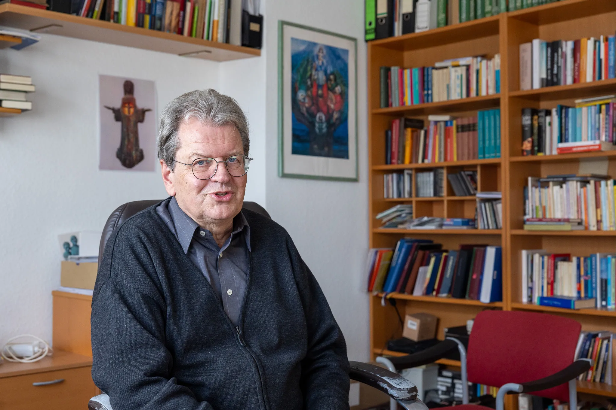 Die Gemeinde verändert sich — Jahr für Jahr verlässt sie eine Zahl von etwa 100 Menschen durch Austritte, Wegzug oder Tod. „Die Mitglieder nehmen zwar ab, aber ich bin für immer mehr zuständig“, sagt er. „Früher war ich für 2750 Menschen verantwortlich, jetzt für 3000, bald für 4000. weil es immer weniger Menschen gibt, die sich für den Pfarrberuf entscheiden. Ich glaube, der Wunsch nach Sterbehilfe wird größer werden – durch Kostendruck, familiären Bruch und das Gefühl, zur Last zu fallen.“