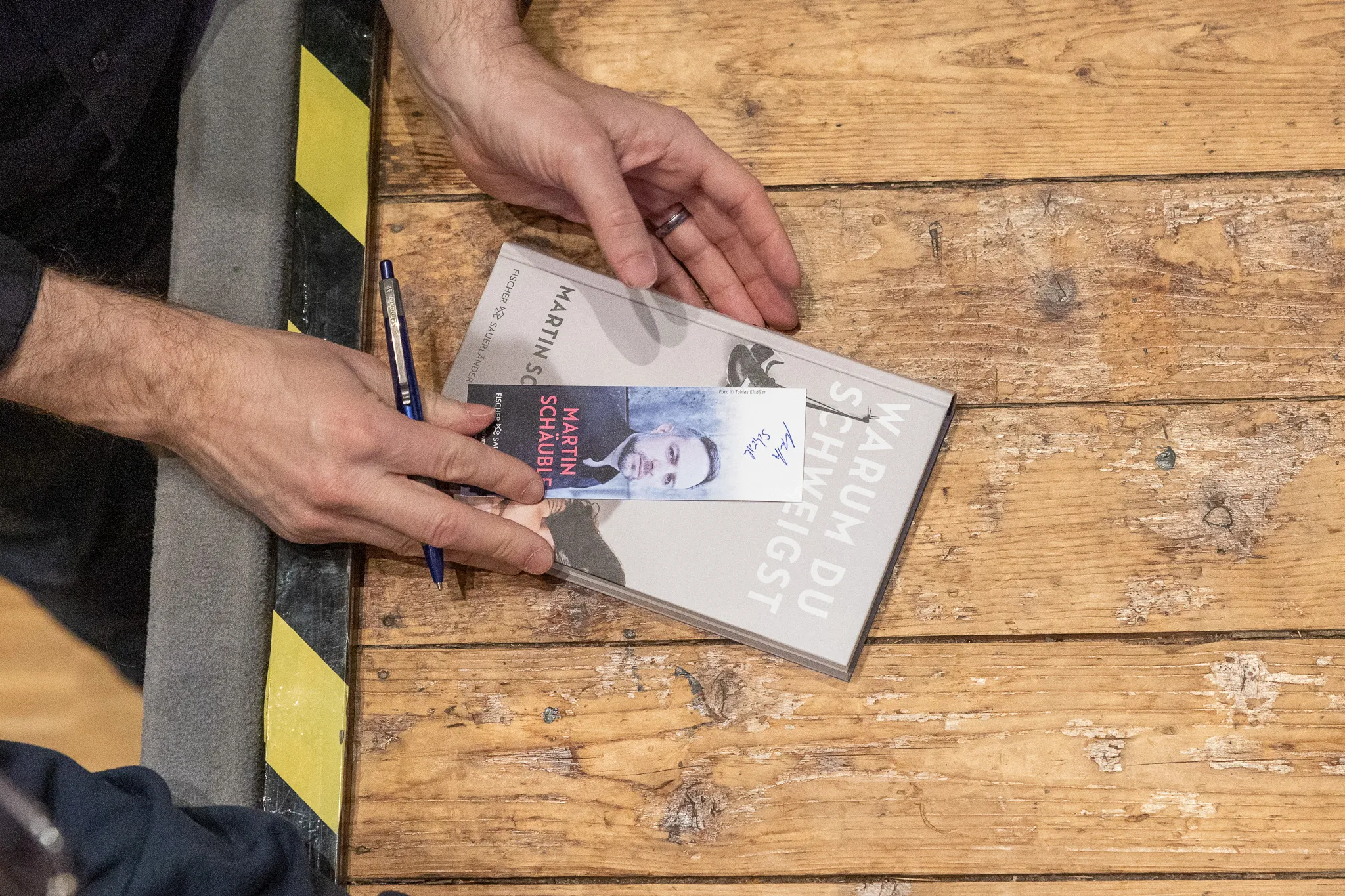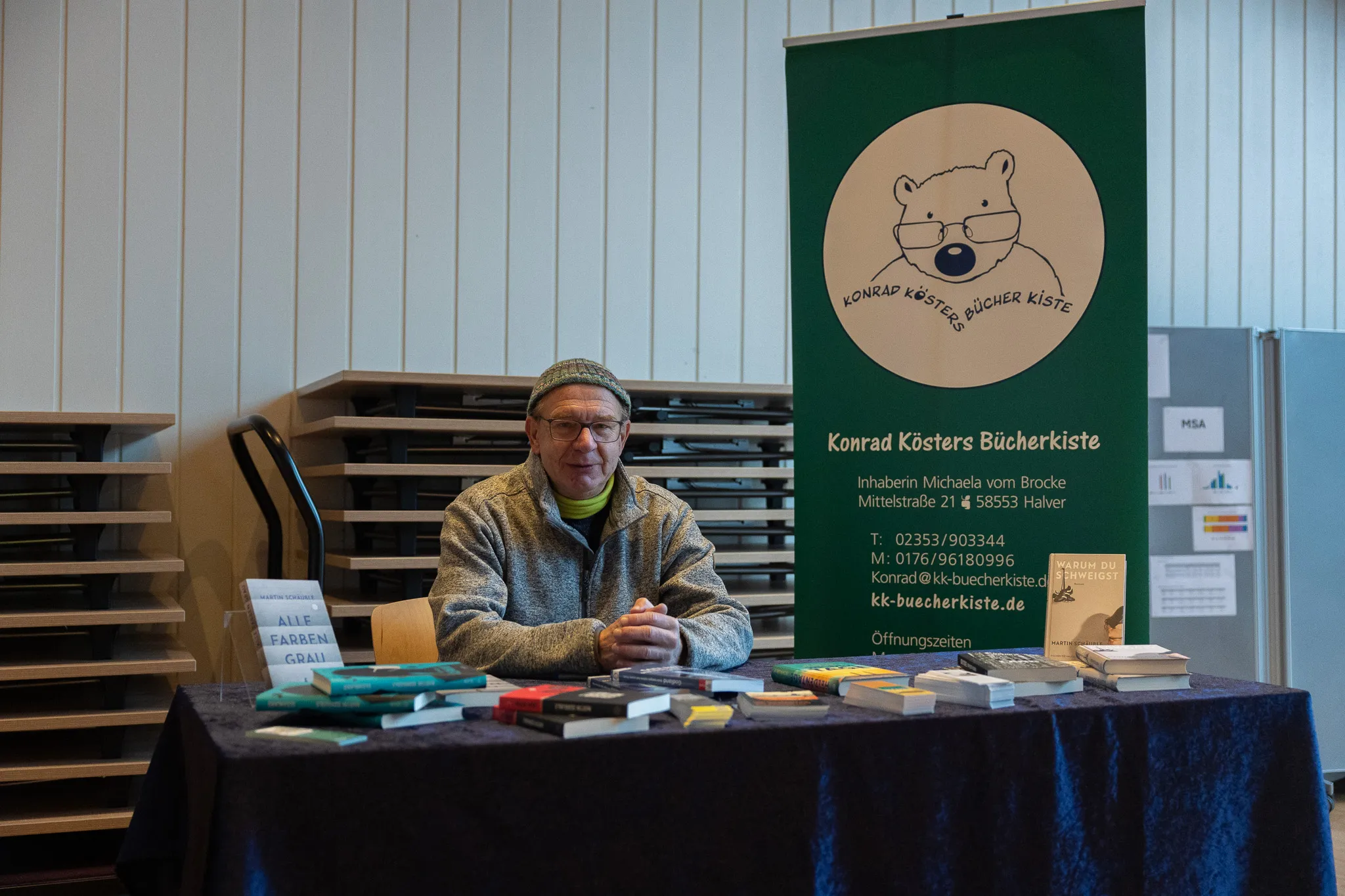Ganz zum Schluss konnten die Schüler am Stand von Konrad Kösters Bücherkiste am hinteren Ende der Aula das Buch erwerben und sofort signieren lassen. Schulleiter Reiner Klausing versprach: "Wer jetzt kein Geld dabei hat, kann sich bei mir einen Kredit geben lassen. Hinterlasst einfach euren Namen und bezahlt das Buch die Tage bei mir." Ganz ohne Kostenaufwand konnten sich alle Besucher ein Lesezeichen mitnehmen.