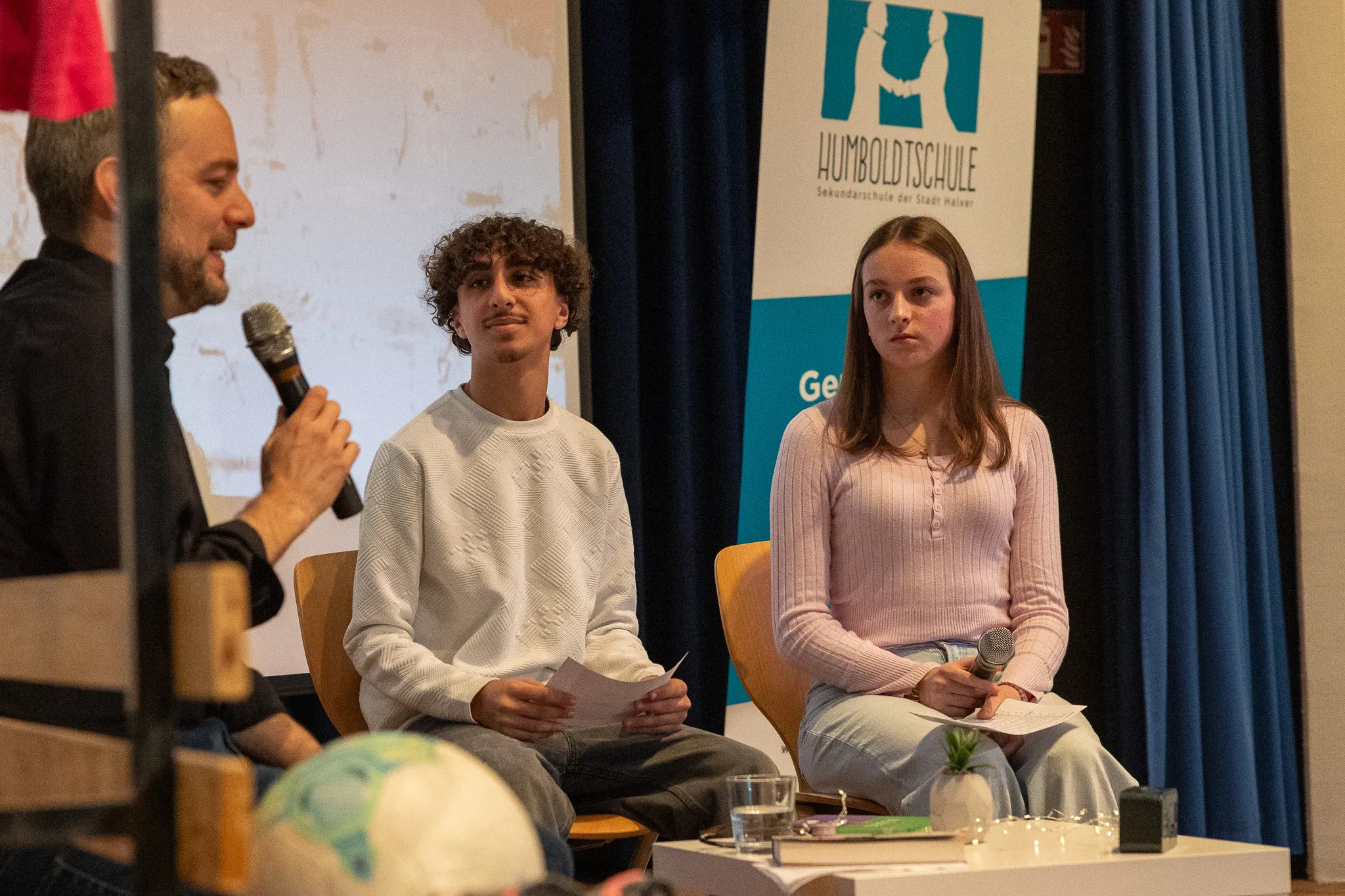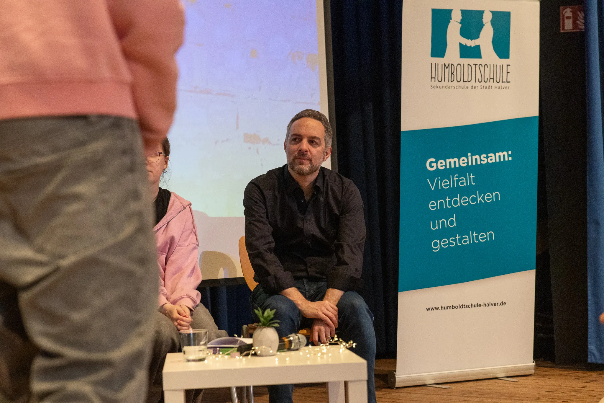 Organisiert hatte den Besuch die Book-Tok-Lerngruppe der Humboldtschule. Neben der eigentlichen Lesung hatten die Schüler die Möglichkeit, Fragen zum Thema sexualisierte Gewalt zu stellen und den Autor besser kennenzulernen. Die engagierten Schüler organisierten dafür eine Fragerunde und interviewten Schäuble auf der Bühne.
