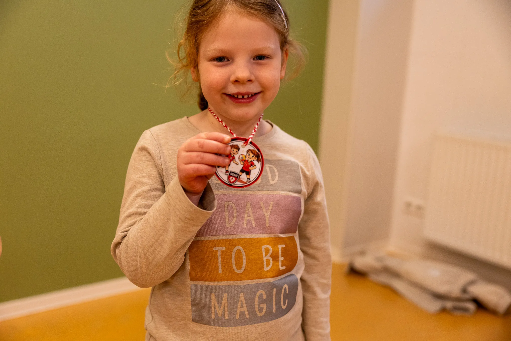 Im Gegenzug erhielten auch die Kinder ein Erinnerungsstück: Alle kleinen Sportler bekamen eine Medaille als Andenken an die gemeinsame Zeit.
