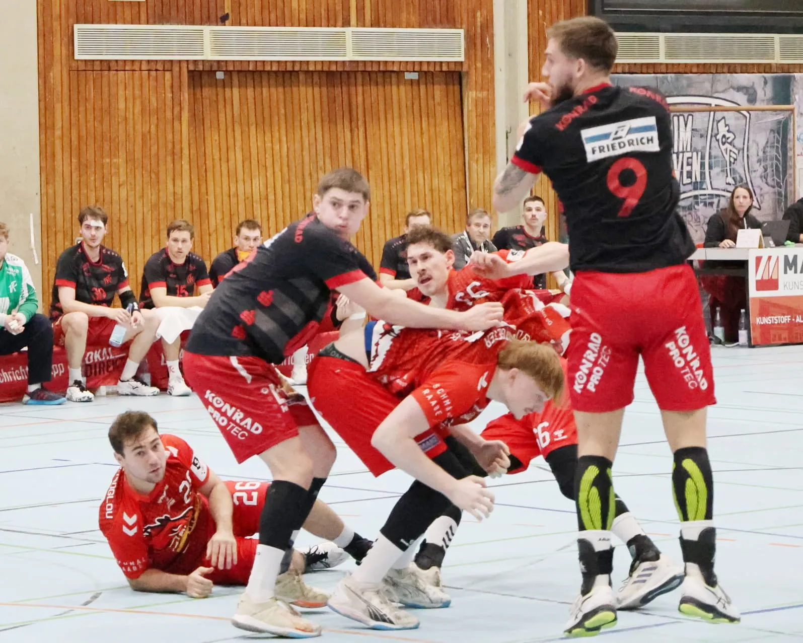 Das erste Heimspiel in 2026 beging die Faßbender-Sieben in Abwesenheit von Julian Thomas (Schulterprobleme) und Philipp Jaeger (Faserriss) für die dingend benötigten Punkte wie die Feuerwehr - das frühe 0:1 sollte die einzige Führung der Gäste aus Kirchzell bleiben. Nachdem Felix Jaeger per Doppelschlag gedreht hatte (2.), lief das Spiel quasi nur in Richtung des TVK-Kastens. Die SGSH war frischer im Kopf und profitierte sicherlich ein Stück weit von der unterdurchschnittlichen Performance der Gäste, die vor allem offensiv einiges vermissen ließen. Auf der anderen Seite nahm Julian Athanassoglou (4 Treffer im ersten Durchgang) seine Form aus der Vorwoche mit; auch Fynn Voss (6) und Felix Jaeger (7) wussten zu überzeugen.