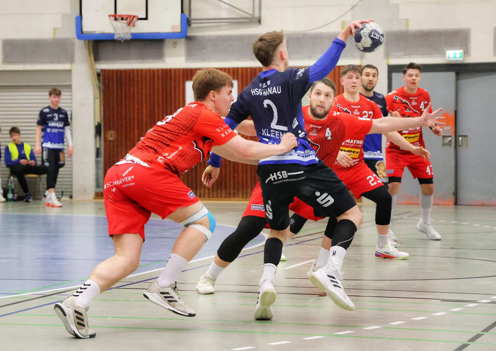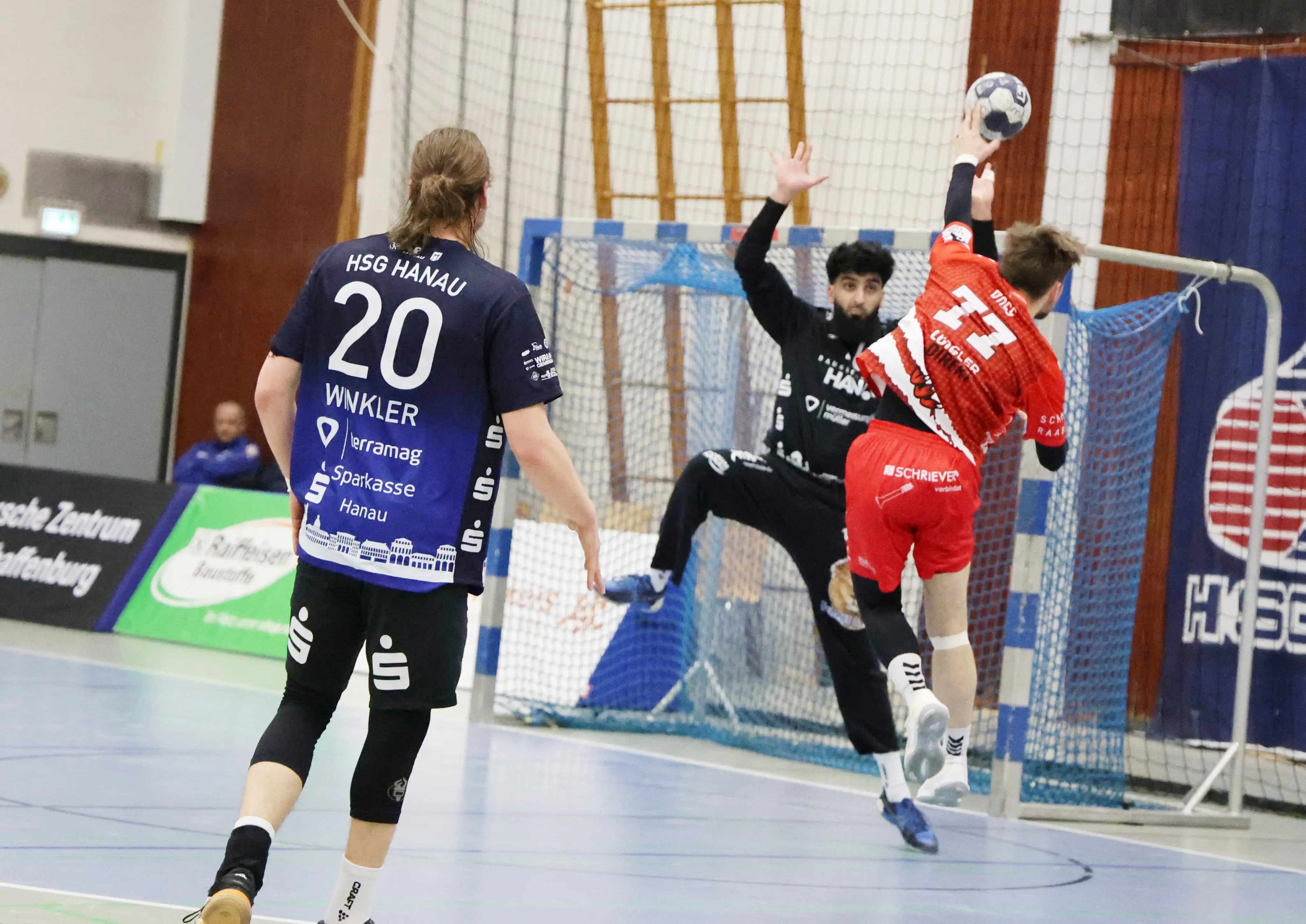Die Partie in der Main-Kinzig-Halle begann temporeich und ausgeglichen — die beiden personell gescholtenen Teams hatten die Visiere unten, die SGSH erwischte einen guten Start beim Tabellensechsten. Der Hauptgrund dafür lag im sehr gut aufgelegten Philipp Jaeger, der viele Angriffe trug. Die Gastgeber ihrerseits blieben davon relativ unbeeindruckt und drehten das Spiel zu ihren Gunsten (6:4, 8.).