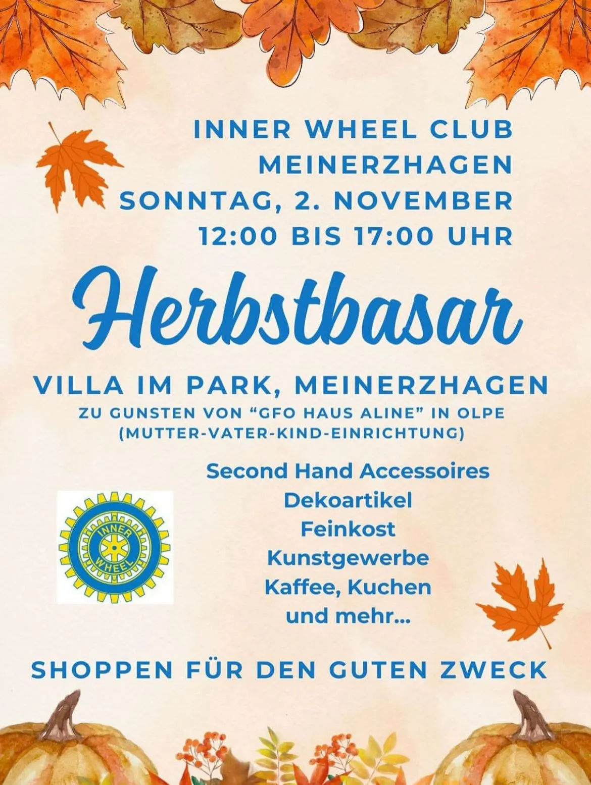 Zum "Shoppen für den guten Zweck" lädt der Inner Wheel Club Meinerzhagen am Sonntag, 2. November, ein. In der Villa im Park können Gäste des Herbstbasars durch Second Hand Accessoires, Dekoartikel, Feinkost und Kunstgewerbe schnuppern. Zusammengestellt wurde laut Ankündigung eine Auswahl aus Taschen, Schals, Tüchern und Schmuck.