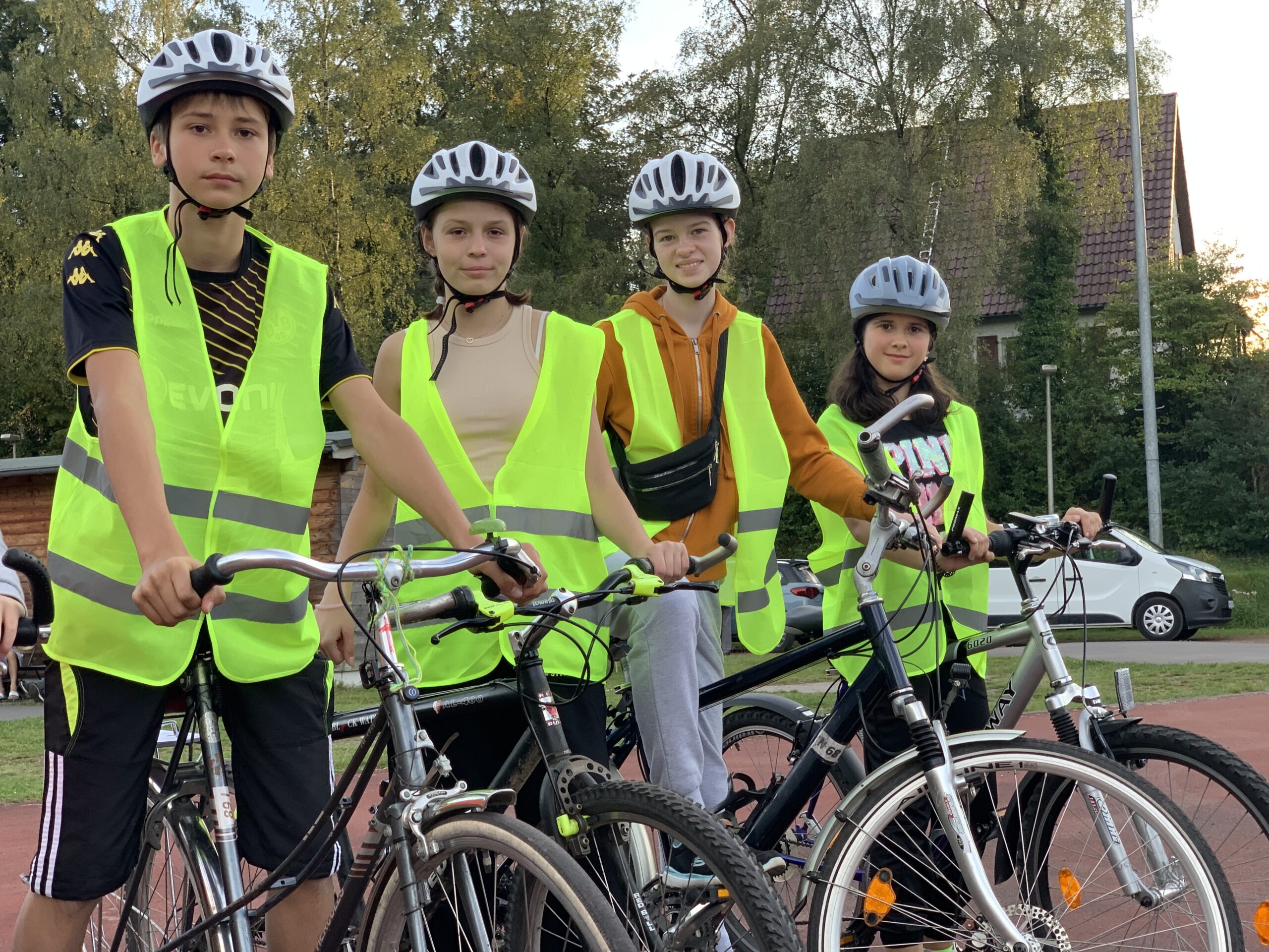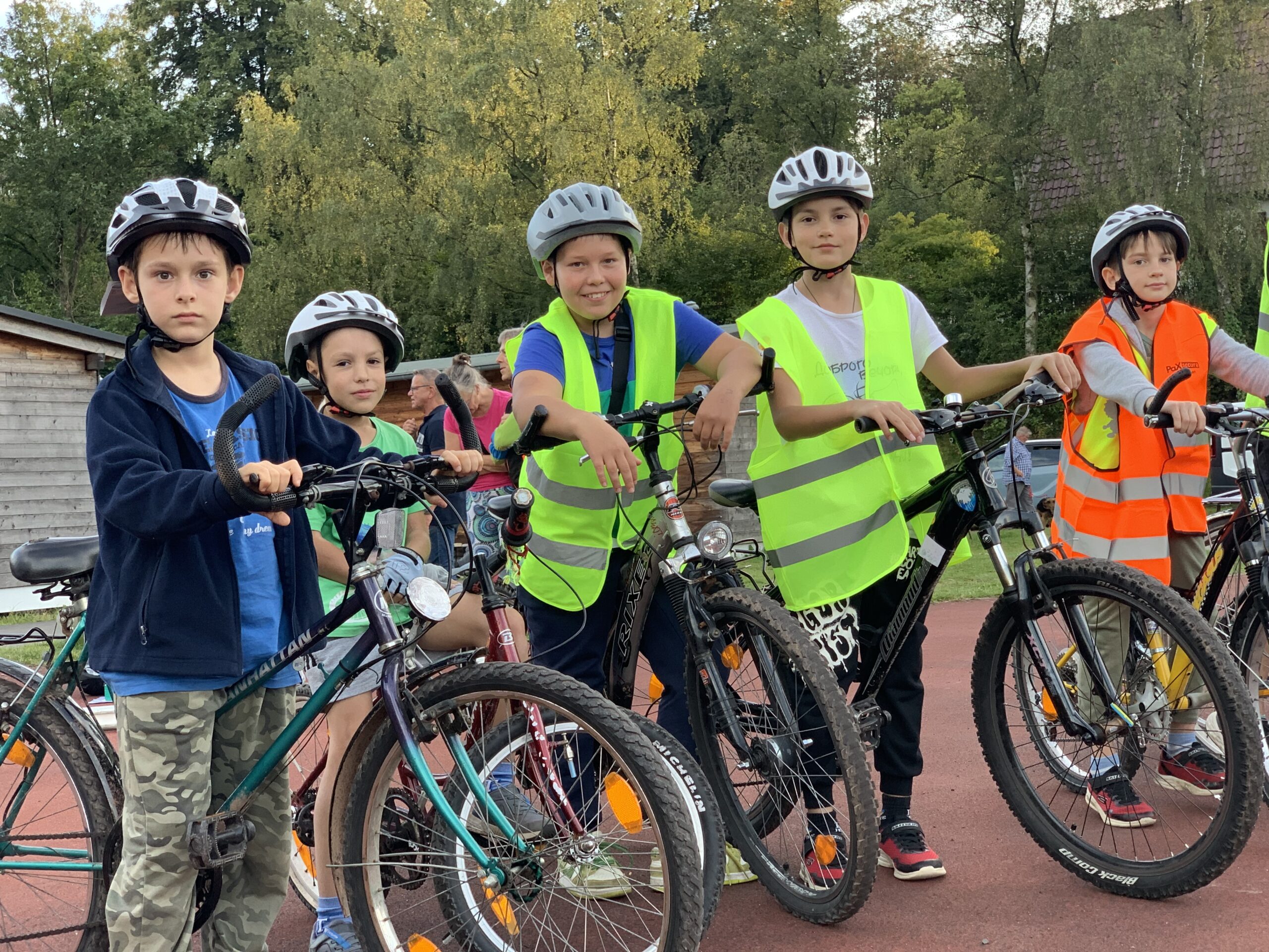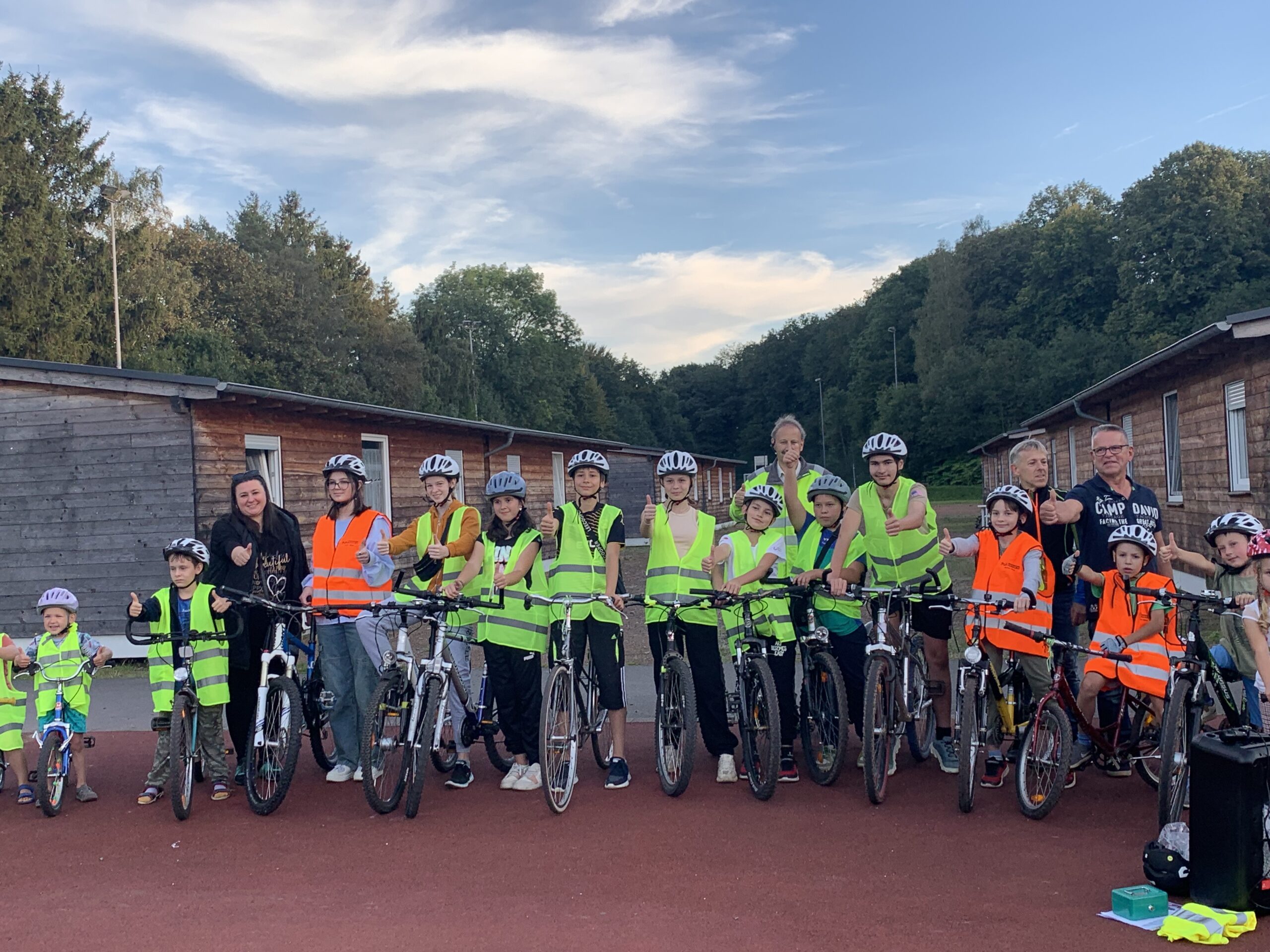 Ausschlaggebend für das Treffen war ein Fahrradunfall, der sich jüngst ereignet hatte – daher mobilisierte Uwe Rittinghaus die Ukrainer am Mittwochabend, 27. September, um ihnen Sicherheitsmaßnahmen sowie den korrekten Umgang mit Helm und Weste näherzubringen. Yana Savko, Deutsch-Lehrerin für Ukrainer, half beim Dolmetschen.