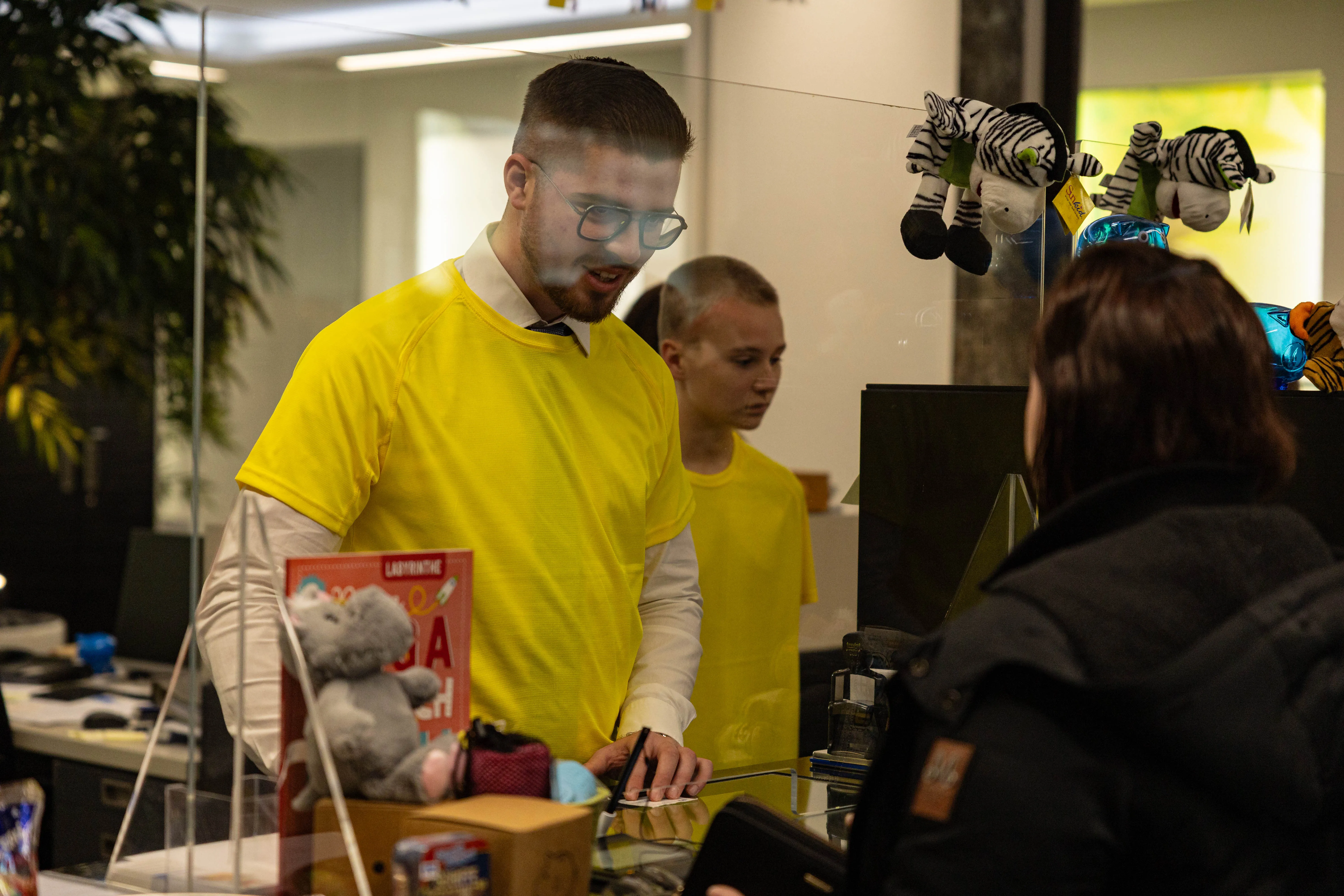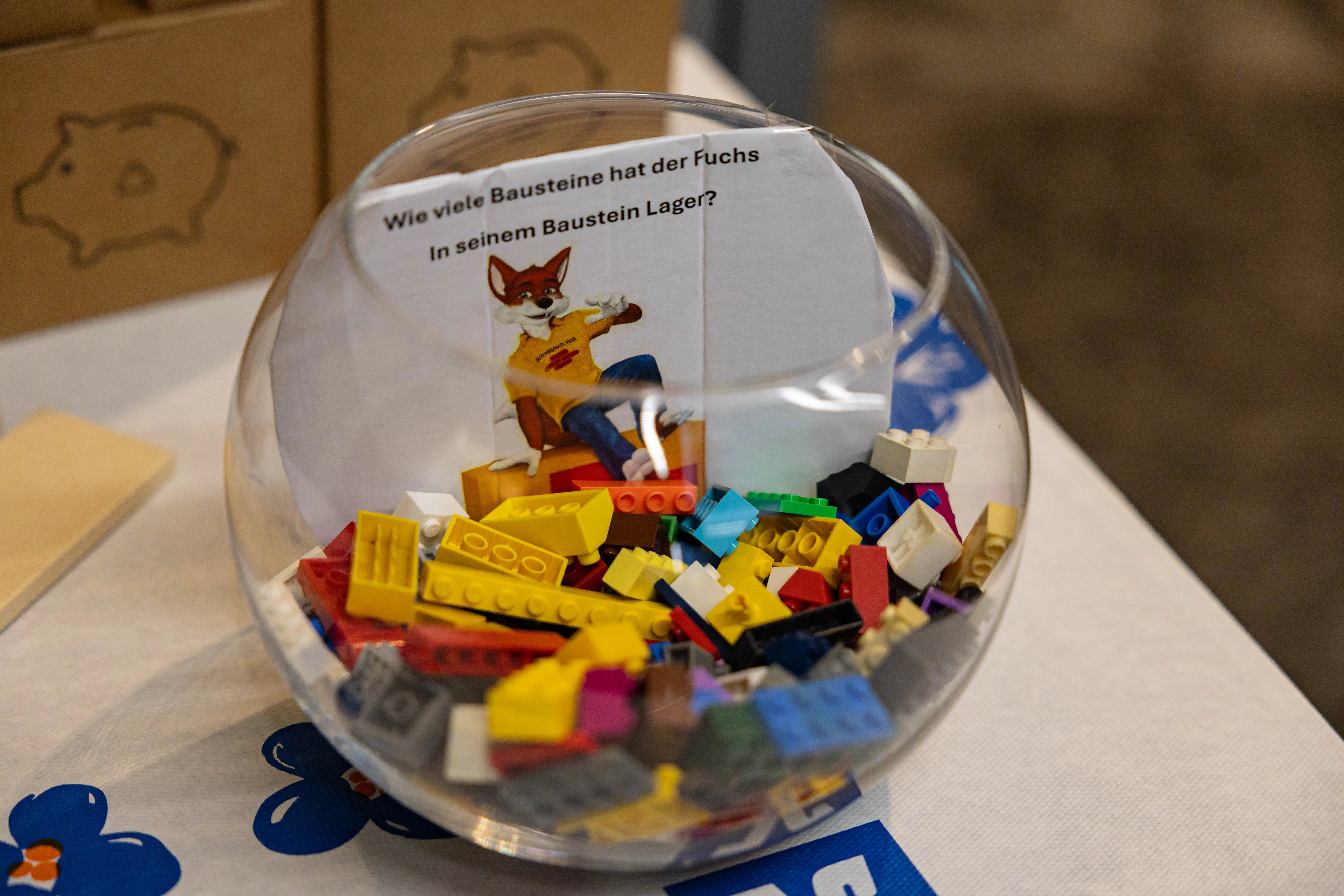 Daniela Nilovic ist Auszubildende bei der Volksbank Kierspe. Sie hat die Veranstaltung gemeinsam mit anderen Azubis organisiert und erklärte: "Wir wollen das Bausparen in der Vordergrund stellen." Aus diesem Grund war die Volksbankfiliale an der Friedrich-Ebert-Straße in jenem satten Gelb gehalten, das der Fuchs als Maskottchen der hauseigenen Bausparkasse auf seinem Shirt trägt. Er stand als lebensgroßer Aufsteller in der Filiale und war auch in den zahlreichen Girlanden wiederzufinden. Zudem hatte der schlaue Fuchs ein Rätsel für die Kinder im Gepäck: "Wie viele Steine hat der Fuchs in seinem Bausparsteinelager?" Insgesamt gibt es sechs Gutscheine im Wert von je 50 Euro, zwei in Rönsahl und vier in der Hauptstelle: Das ist mit etwas Glück der Preis für die Kinder, die die richtige Anzahl an Legosteinen in einem Glas schätzen.