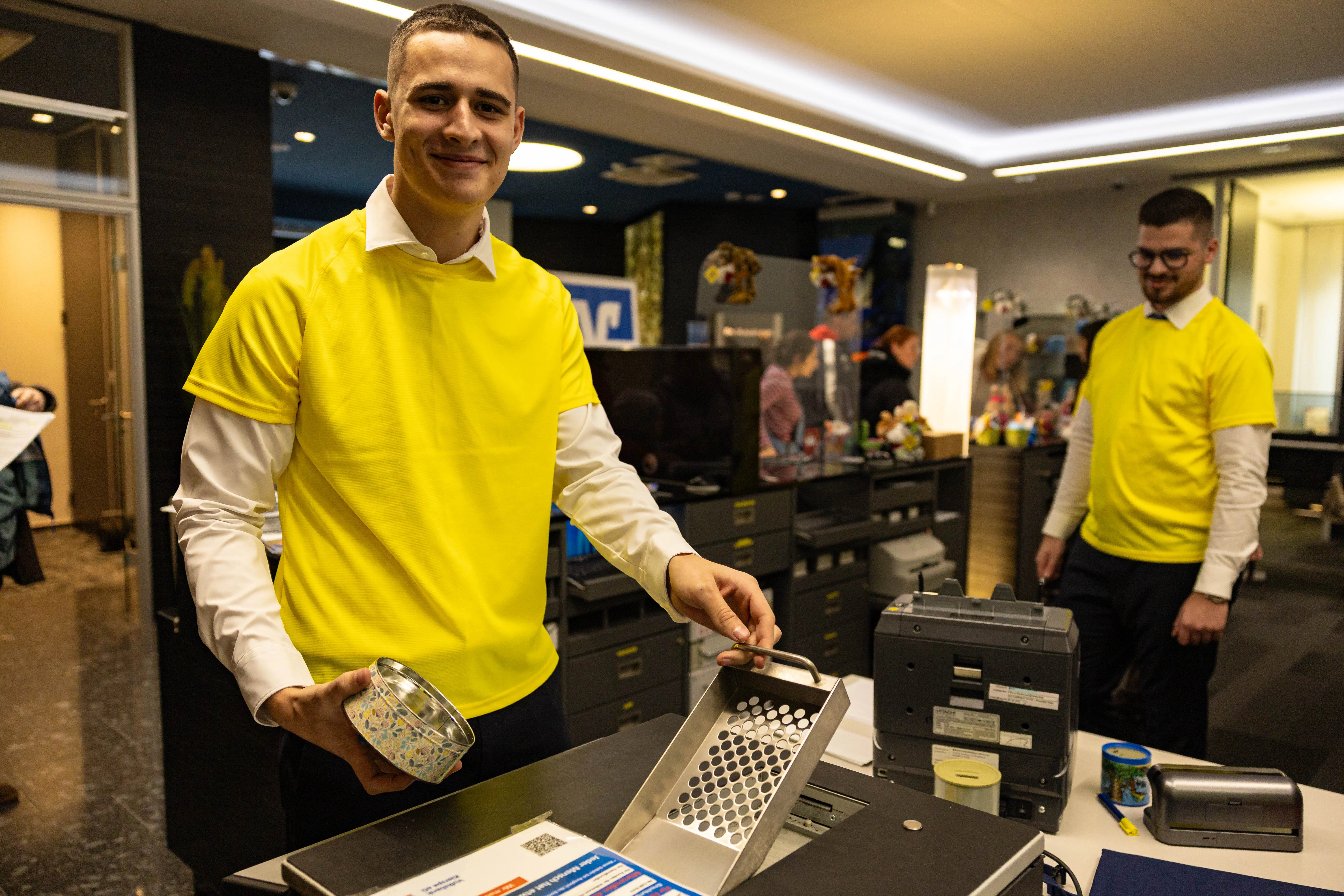 Genau wie bei der Volksbank gab es auch bei der Sparkasse für jede Einzahlung ein kleines Geschenk. Mit rund 1800 Einzahlungen rechnete Sonja Berges für die beiden Standorte über beide Tage.