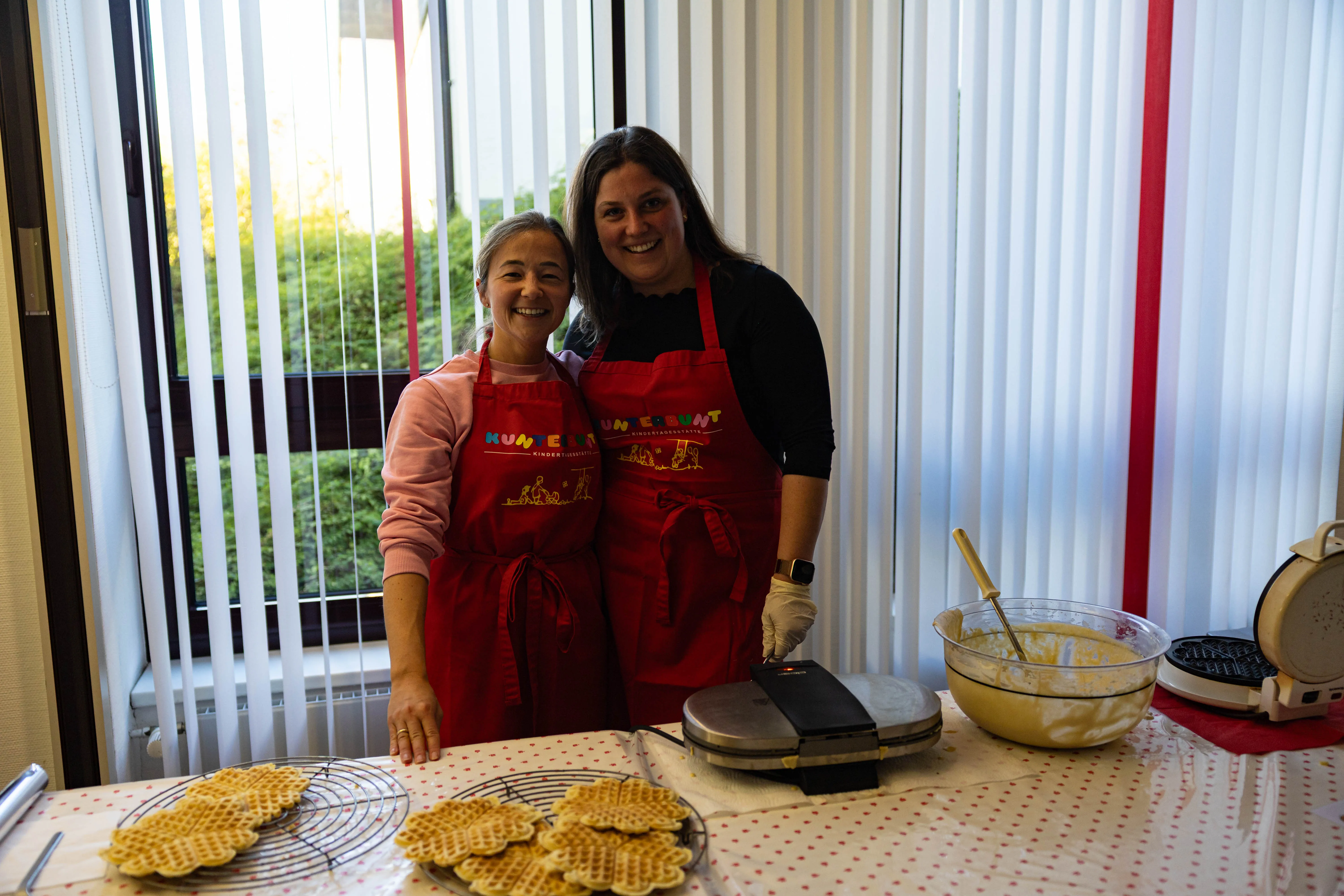 Bei beiden Banken - auch das unterscheidet sich nicht - gab es leckere Waffeln. Während in der Volksbank die Kindertagesstätte Abenteuerland am Waffeleisen stand, war es in der Sparkasse die Kita Kunterbunt.