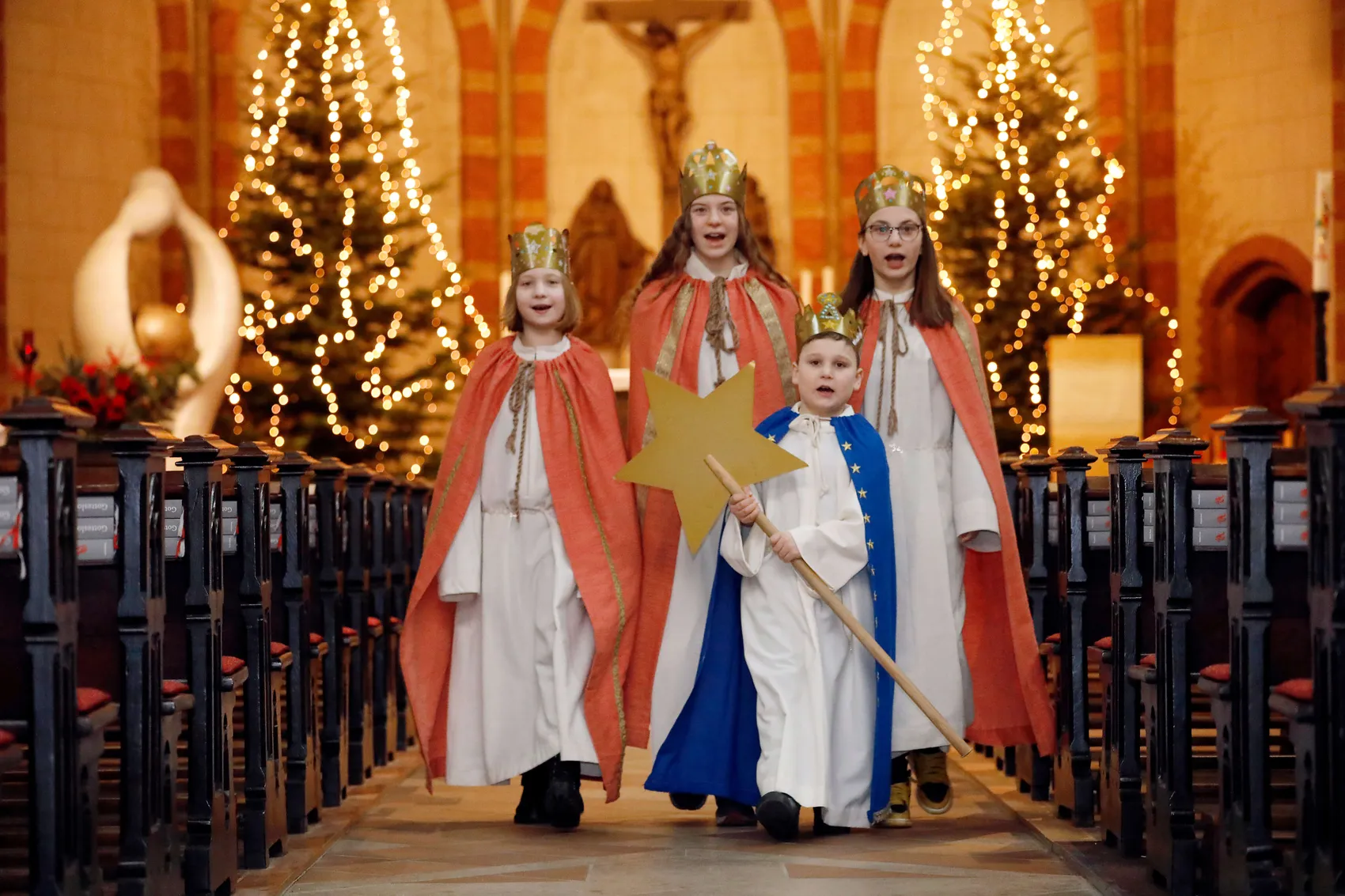 Sie lachen und singen in ihren bunten Gewändern fröhliche Lieder von Weihnachten — doch das soll nicht über die wichtige Botschaft hinwegtäuschen, die vier Sternsinger aus Lüdenscheid am kommenden Dienstag in Berlin dem Bundeskanzler überbringen.