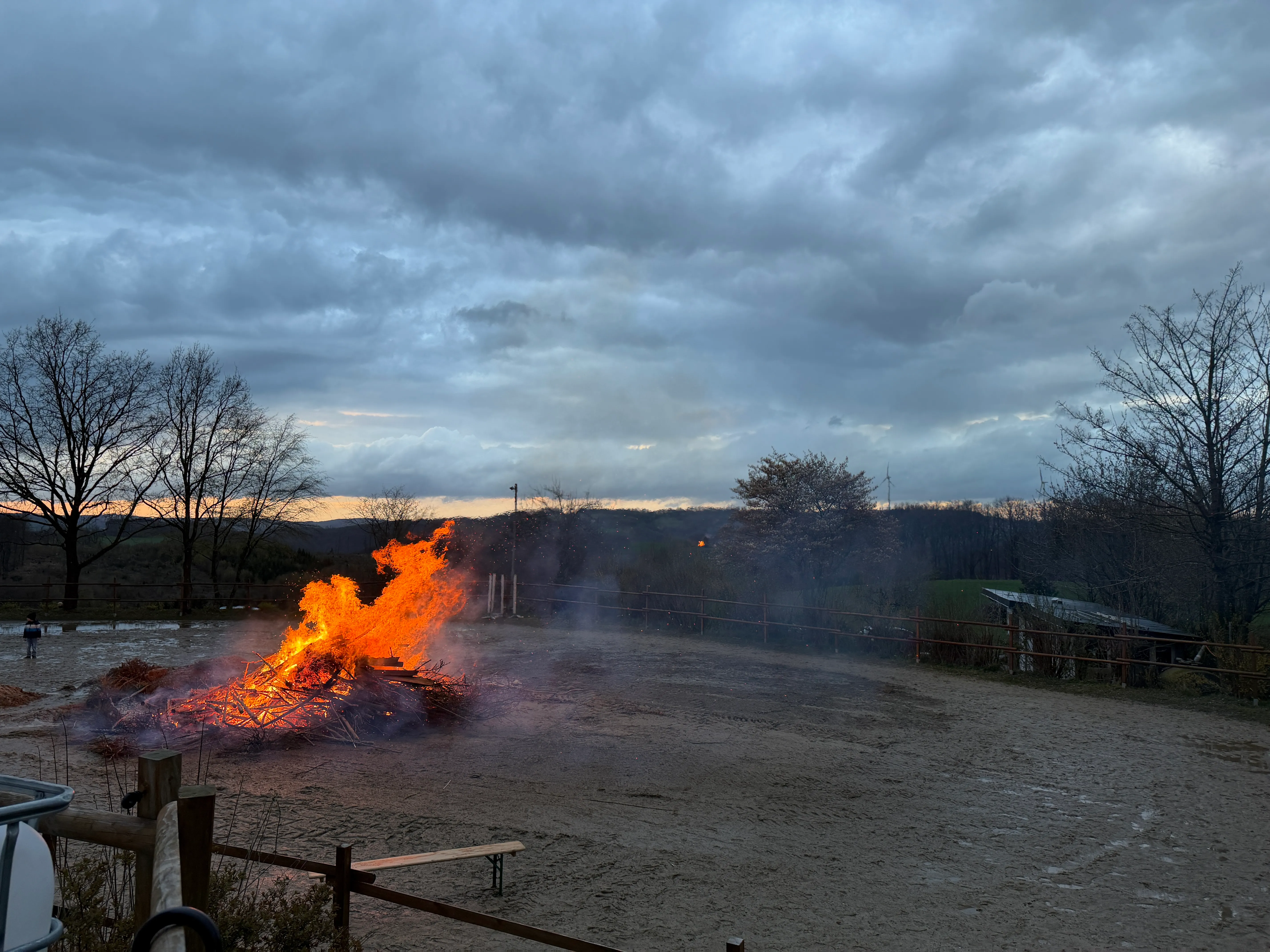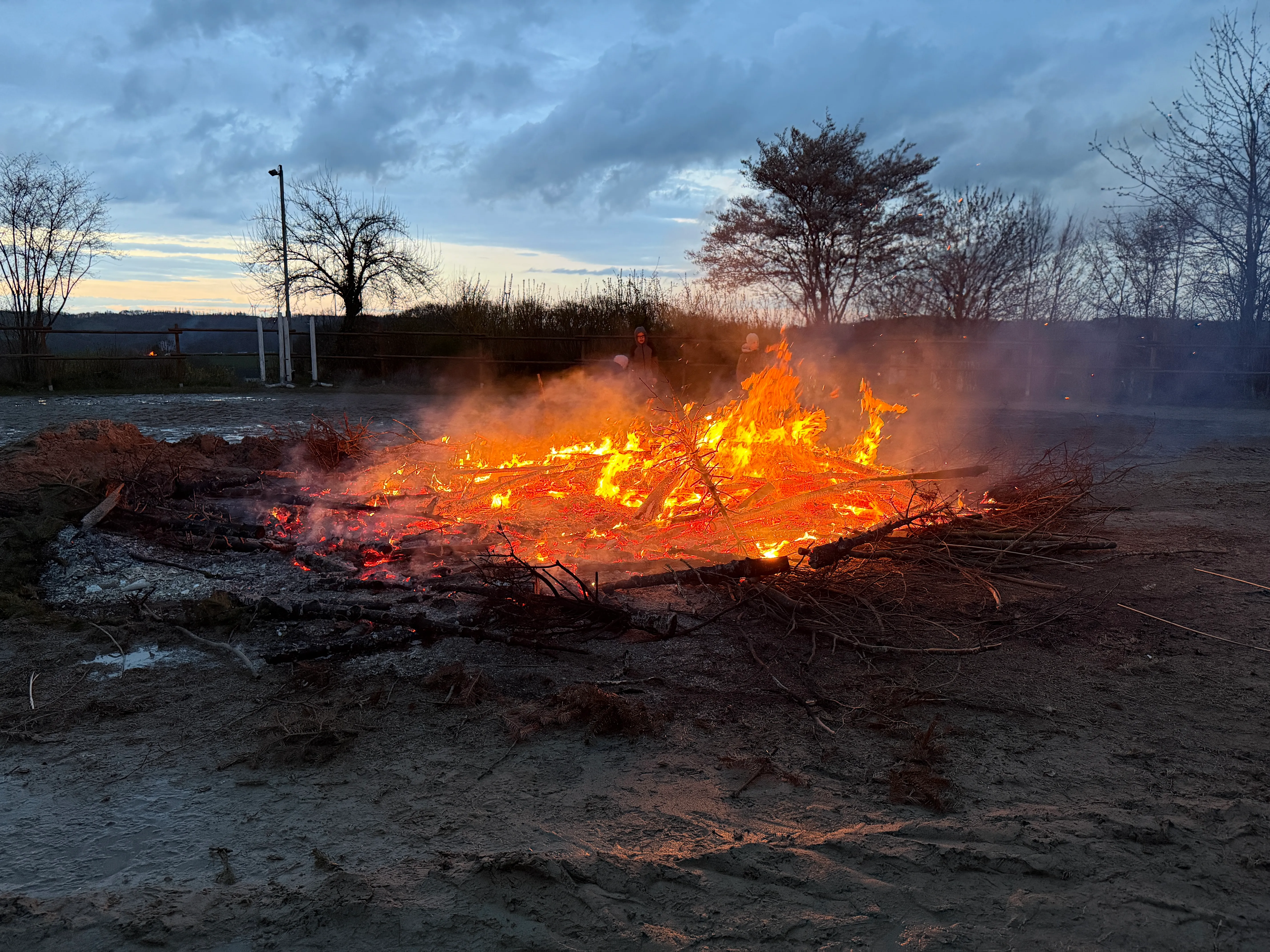 Das Osterfeuer wurde auf dem Reitplatz entzündet. Trotz der niedrigen Temperaturen versammelten sich dort zahlreiche Besucher und nahmen auf den bereitgestellten Bänken Platz.