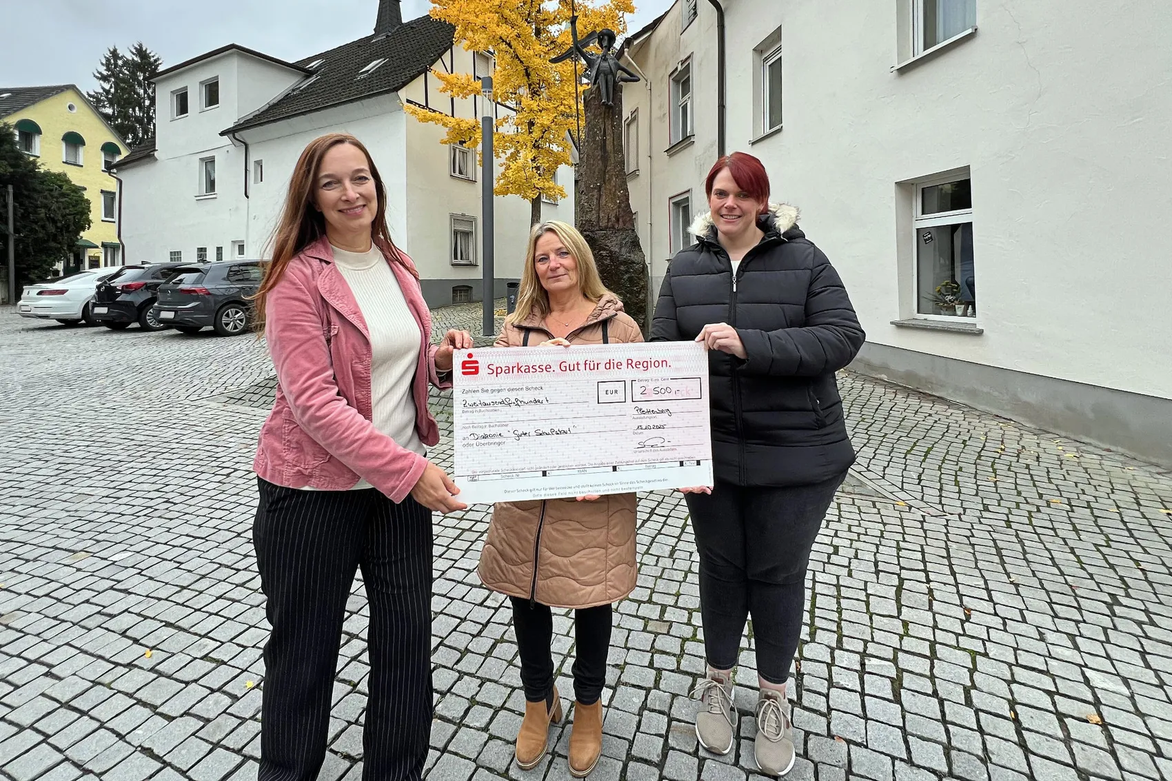 Eine Spende von 2500 Euro überreichten Sylvia Eick von der Plettenberger KulTour und Sabrina Stracke, Sängerin der Band Servants Quarters, ans Projekt „Guter Schulstart“. Das Spendengeld kam beim kleinen PleWo-Stadtfest zusammen.