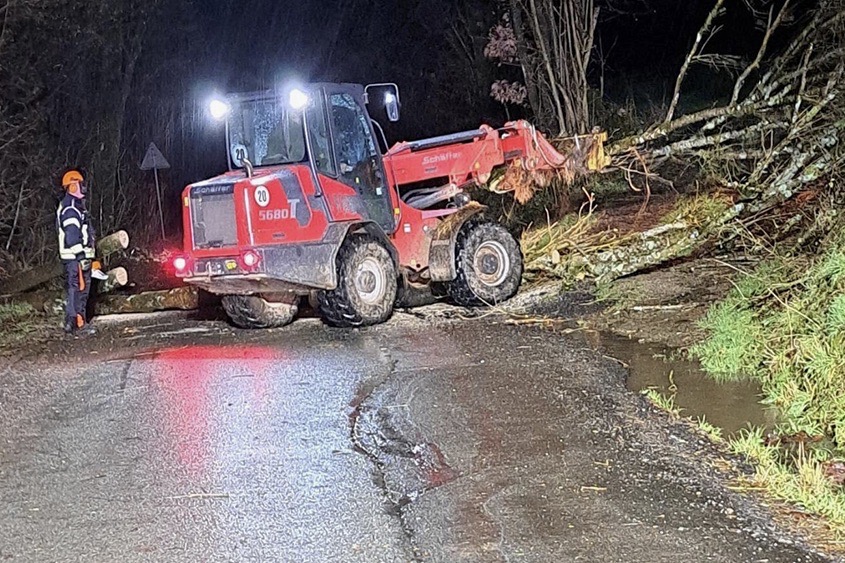 Am Donnerstag war die Freiwillige Feuerwehr über den Tag verteilt bei mehreren Einsätzen damit beschäftigt, umgestürzte Bäume und andere Gegenstände von Straßen zu beseitigen. So mussten die Wehrleute beispielsweise an der Glörstraße und der Prioreier Straße sowie im Bereich Bühren mit Motorkettensägen für freie Fahrt auf den Straßen sorgen. In Boßel unterstützte ein heimischer Landwirt die Feuerwehr dabei mit seinem Radlader.