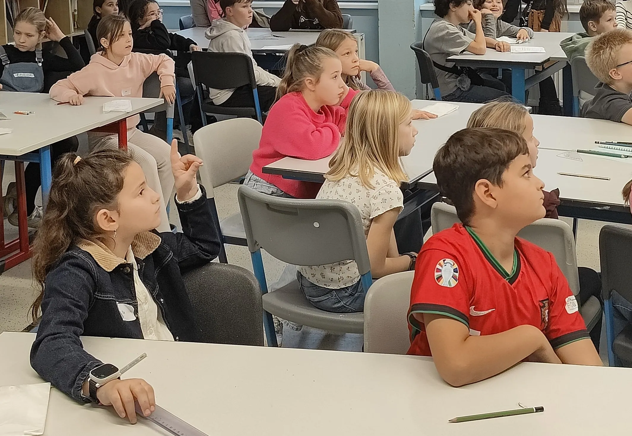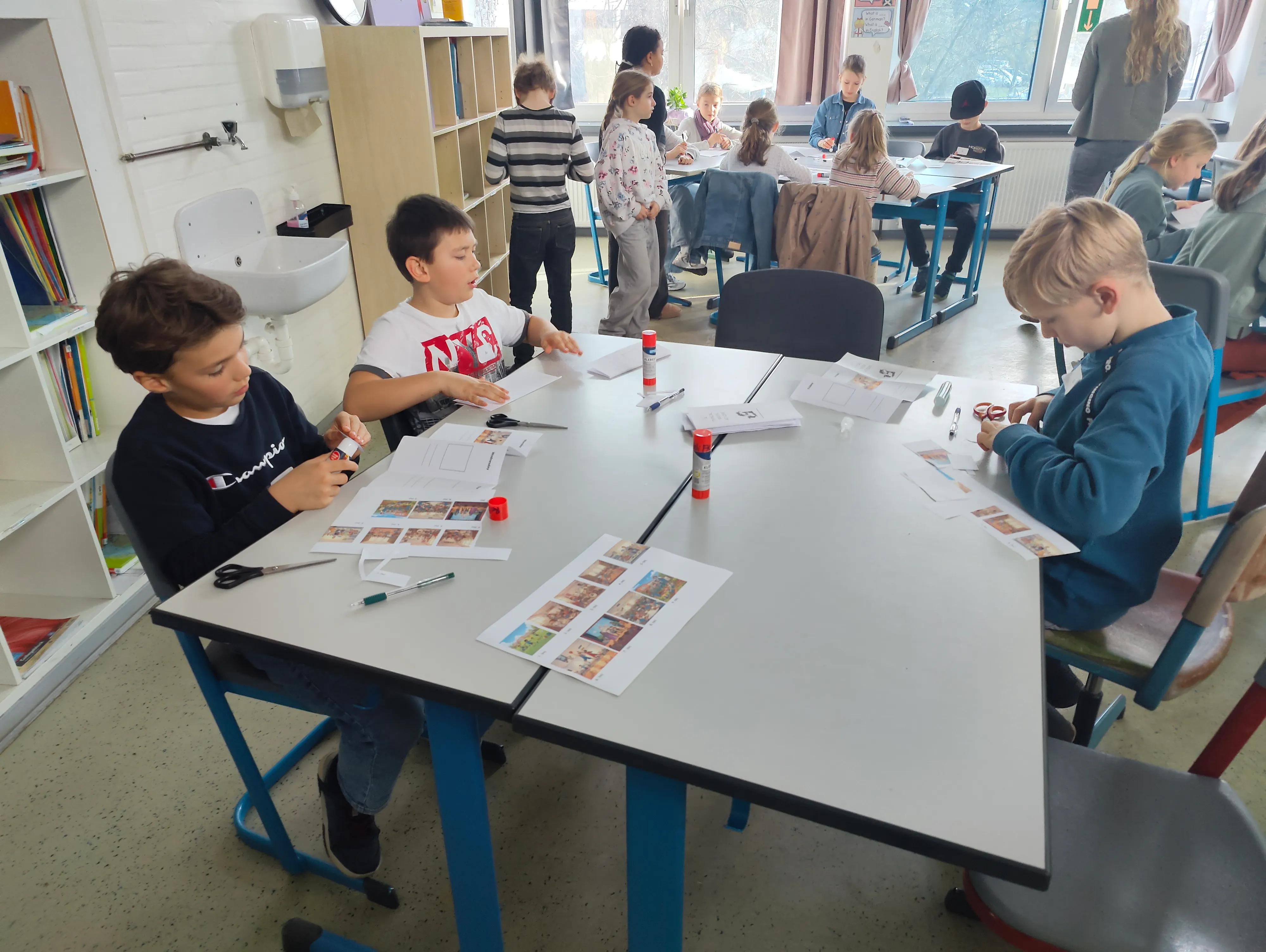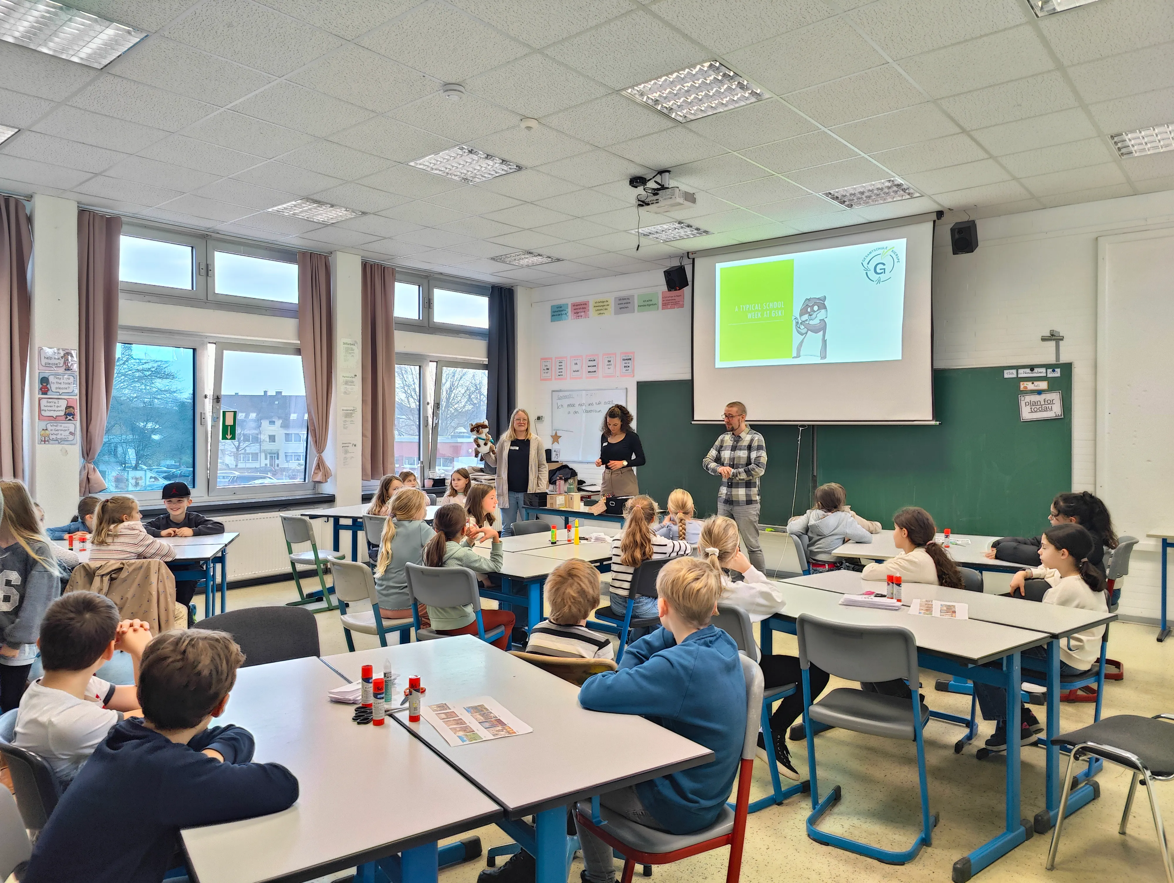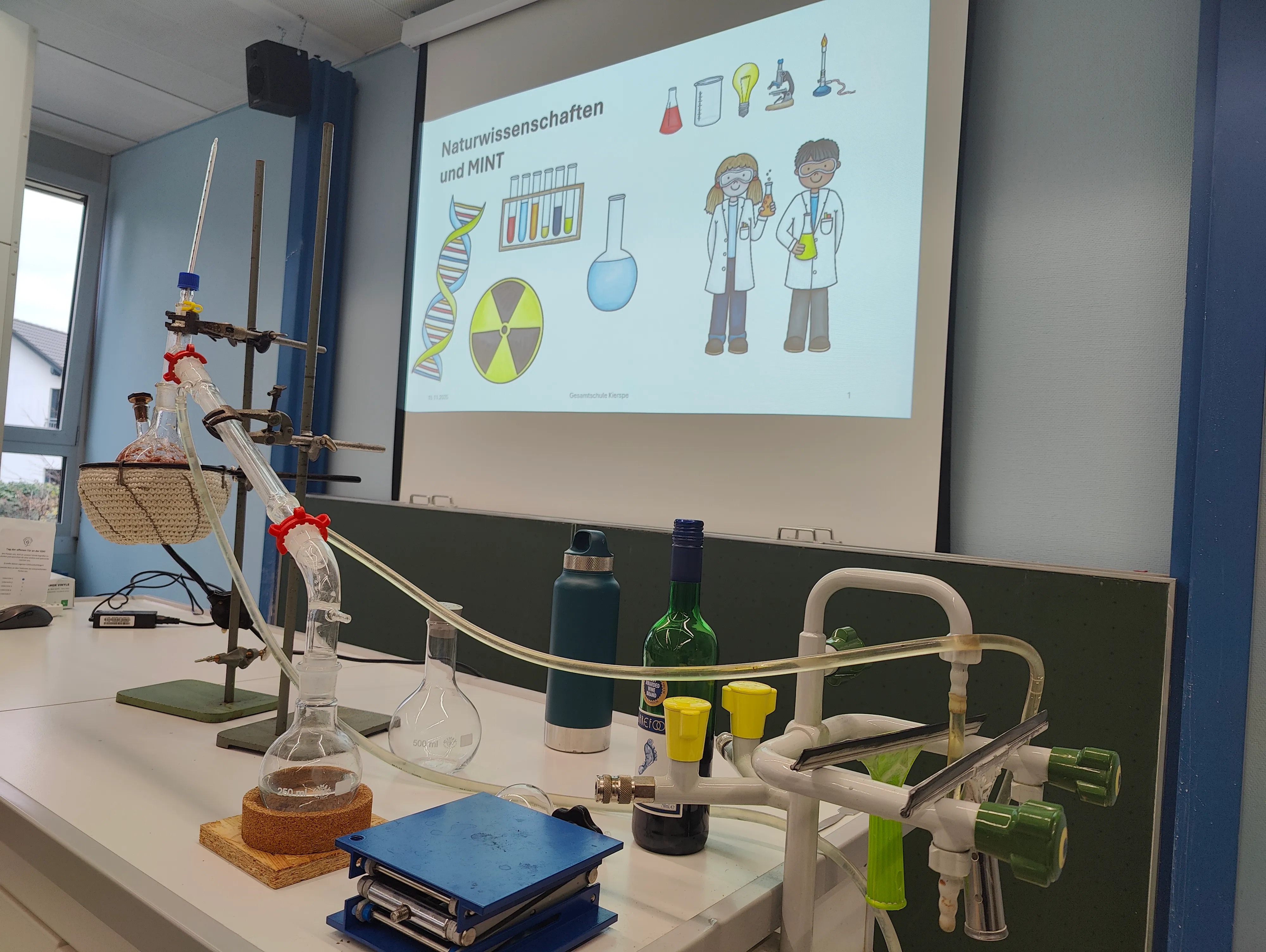 Im Anschluss gab es einen Rundgang für Eltern und Kinder durch die Schule, bei dem die Räumlichkeiten vorgestellt wurden. Hier bekamen die Eltern viele Informationen über den Unterricht und konnten Rückfragen stellen, während die Kinder sich mit kleinen, fachspezifischen Aufgaben beschäftigten. Je nachdem, welcher Unterrichtsraum gerade angeschaut wurde, wurden also im Mathe-Raum Rechenaufgaben bearbeitet, im DG-Kurs (Darstellen und Gestalten) ein Schatten-Standbild gestaltet oder im Physikraum kleine Experimente durchgeführt.
