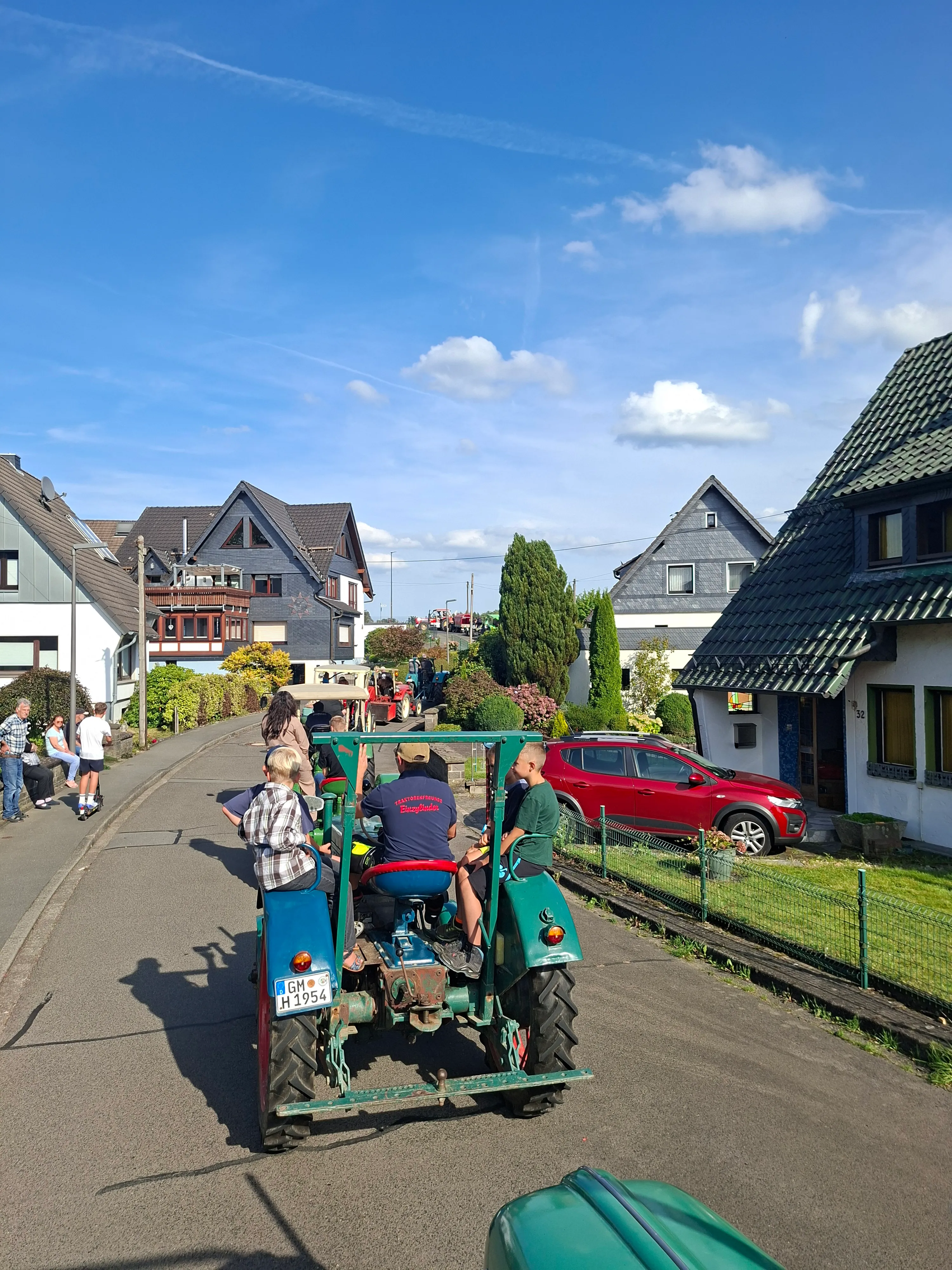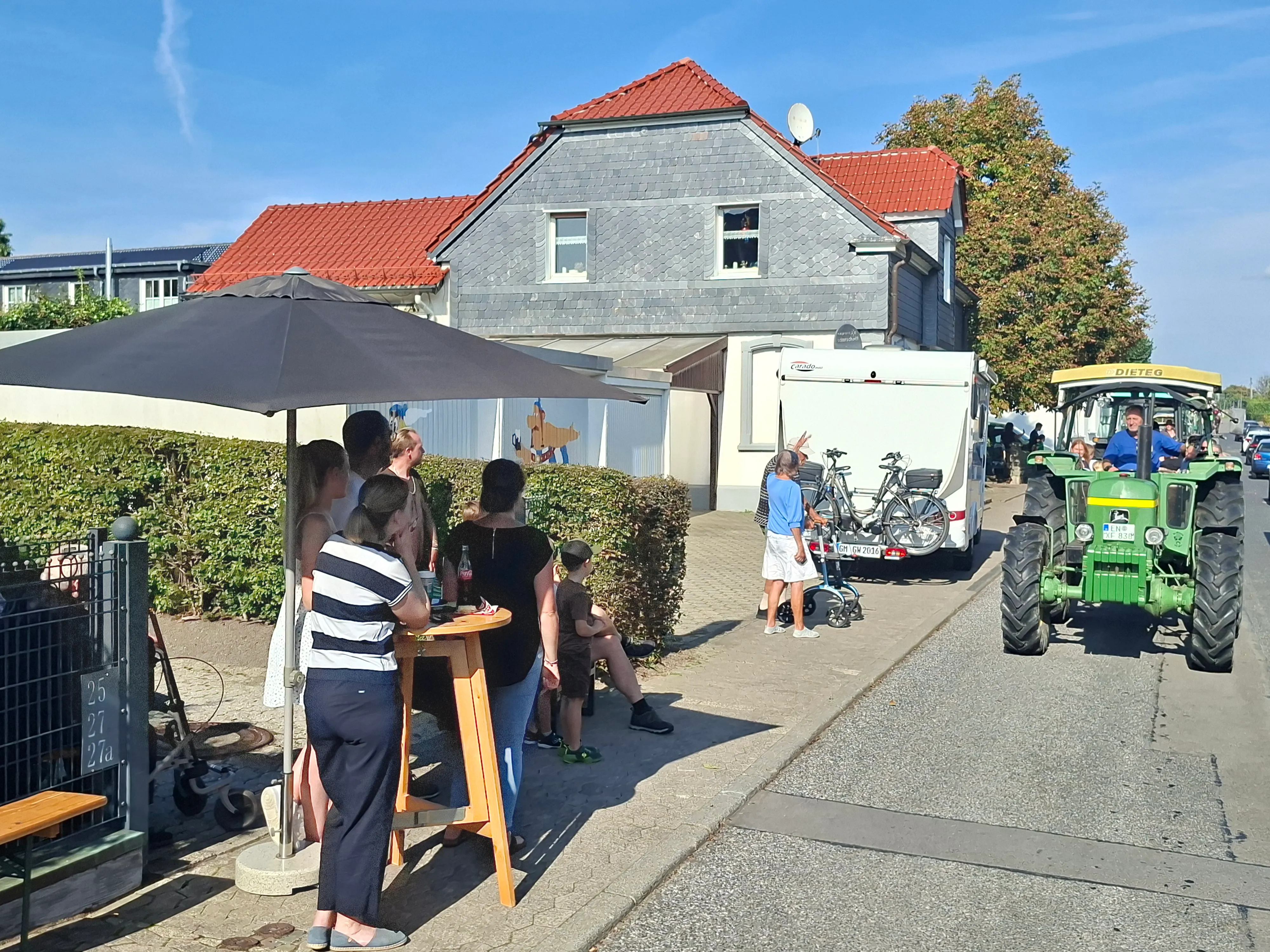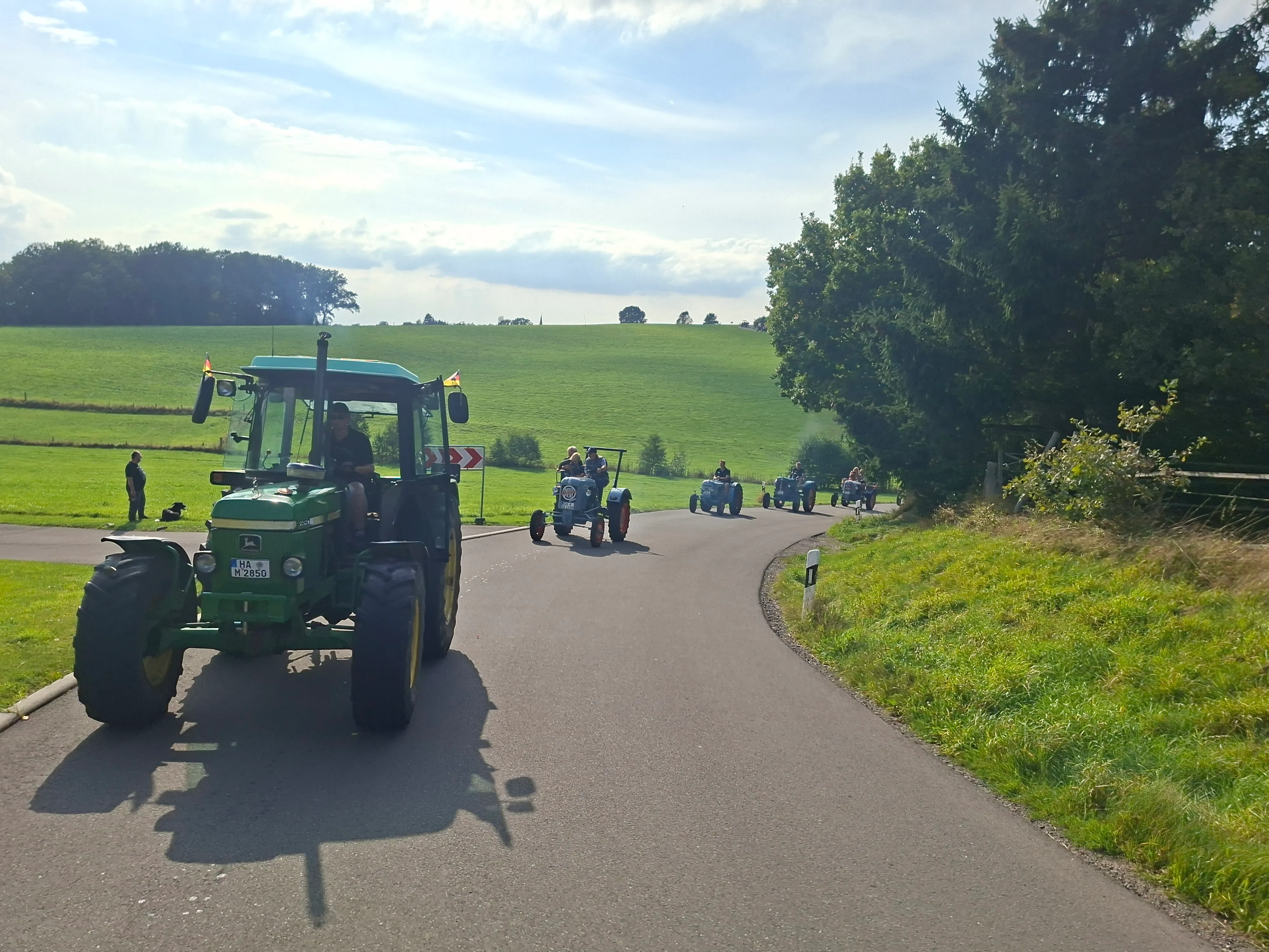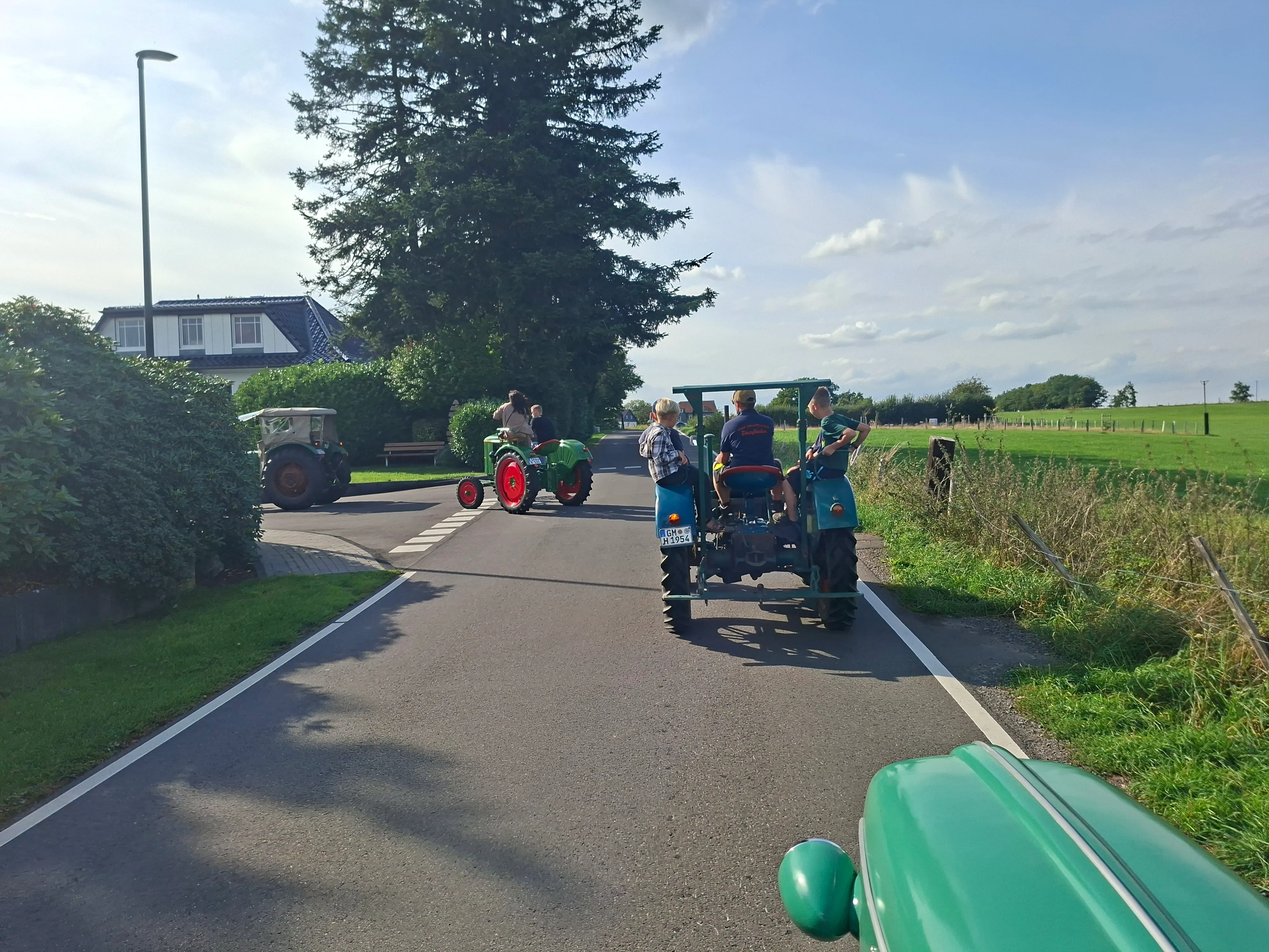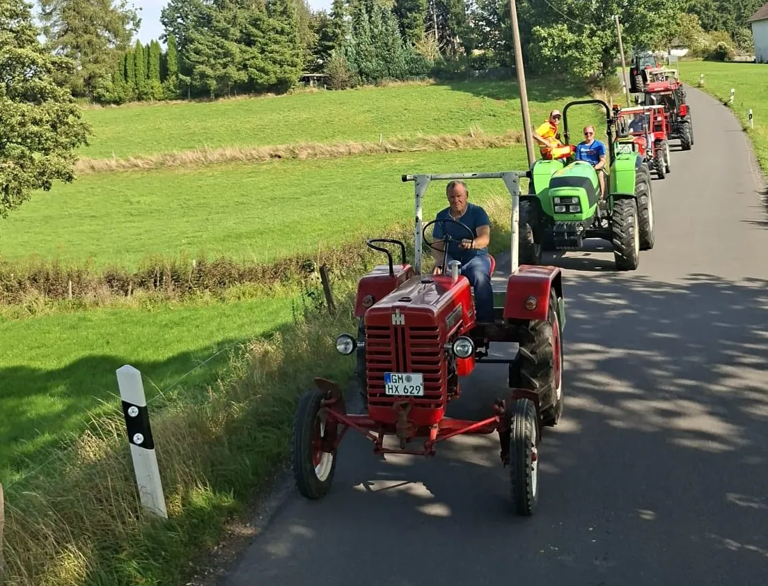 Damit die schön restaurierten Schlepper auch von möglichst vielen Menschen gesehen werden, organisierten die Traktorfreunde-Einzylinder für Samstagnachmittag eine rund 45 Minuten dauernde Rundfahrt durch Kreuzberg. Die Bewohner hatten es sich zum Teil in ihren Vorgärten bequem gemacht und bei einem Picknick auf den Corso gewartet. Viel Applaus belohnte die Trecker-Enthusiasten für die Arbeit, die sie in ihre Gefährte gesteckt haben. Besucher des Festplatzes, die das Erlebnis einer Treckerfahrt erleben wollten, fanden bei den Treckerfreunden auch eine Gelegenheit zur Mitfahrt auf den Beifahrersitzen oder im extra organisierten Planwagen-Anhänger.