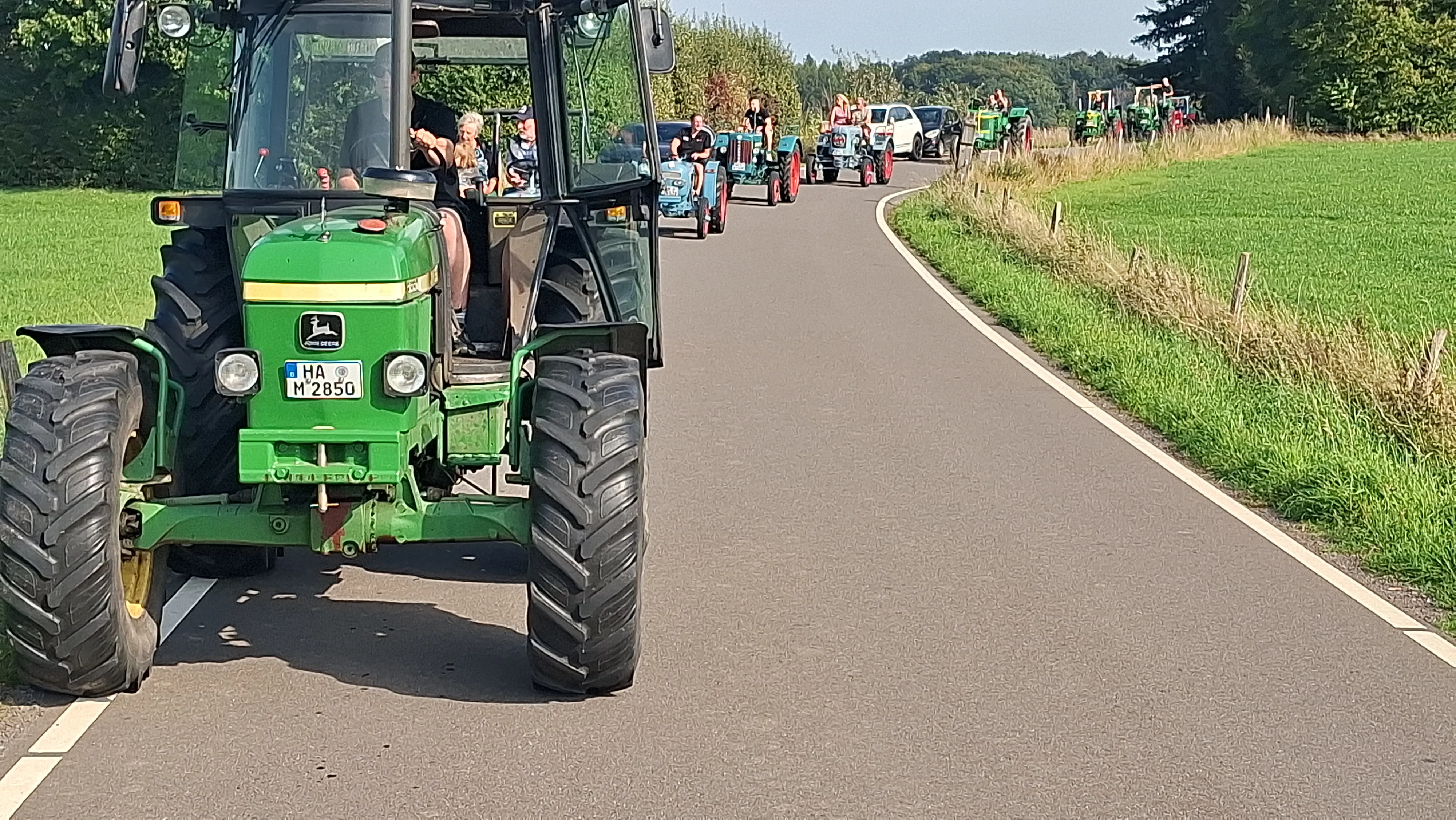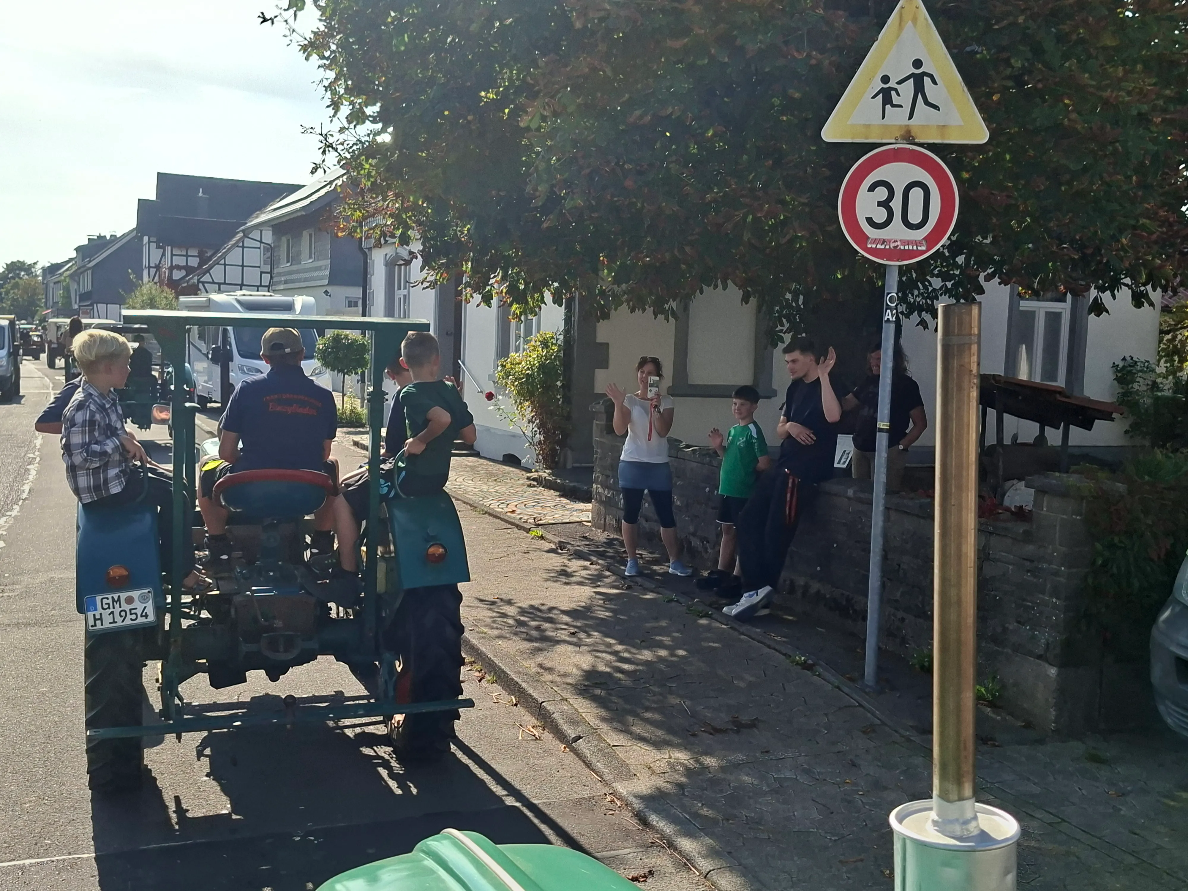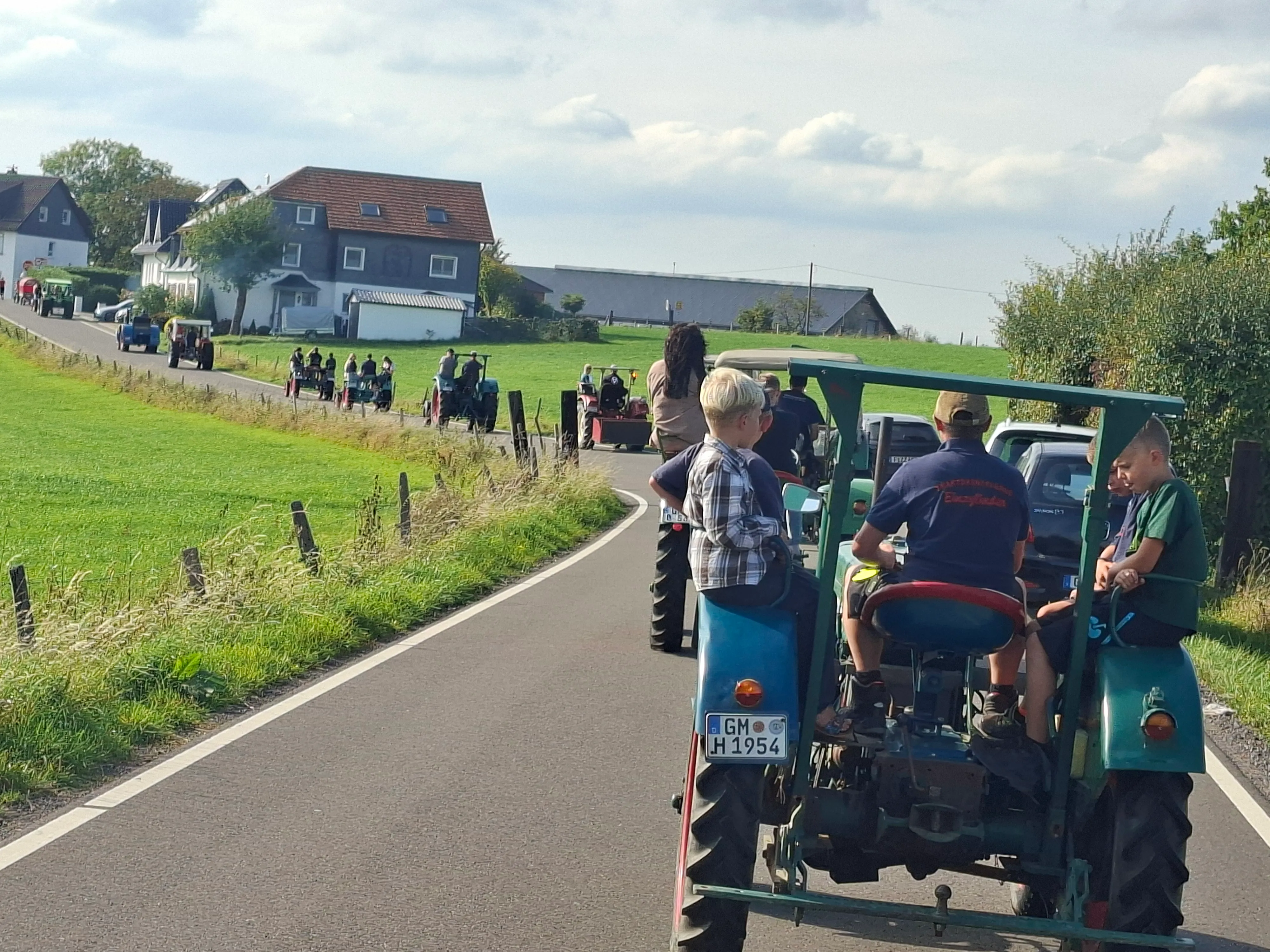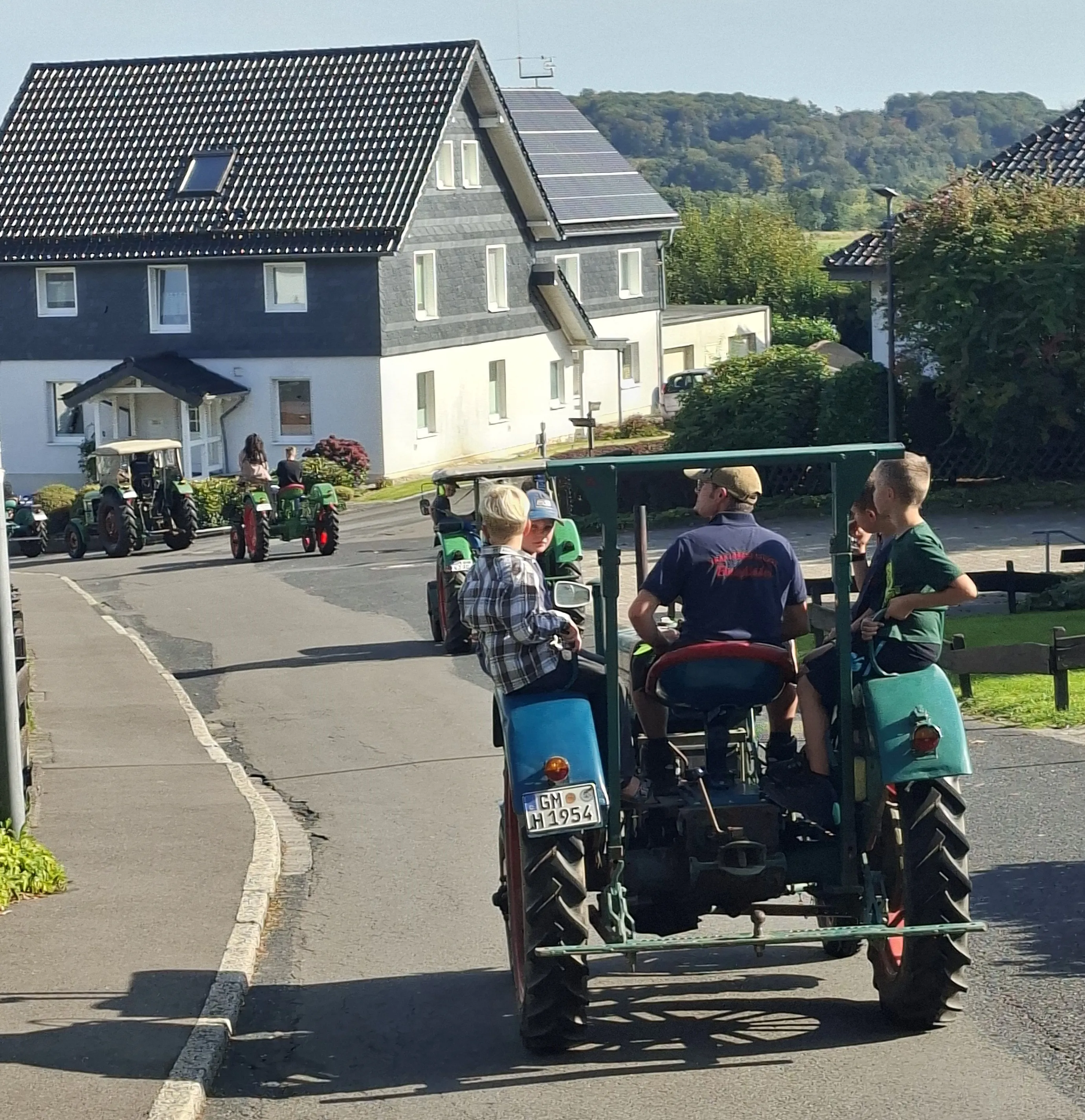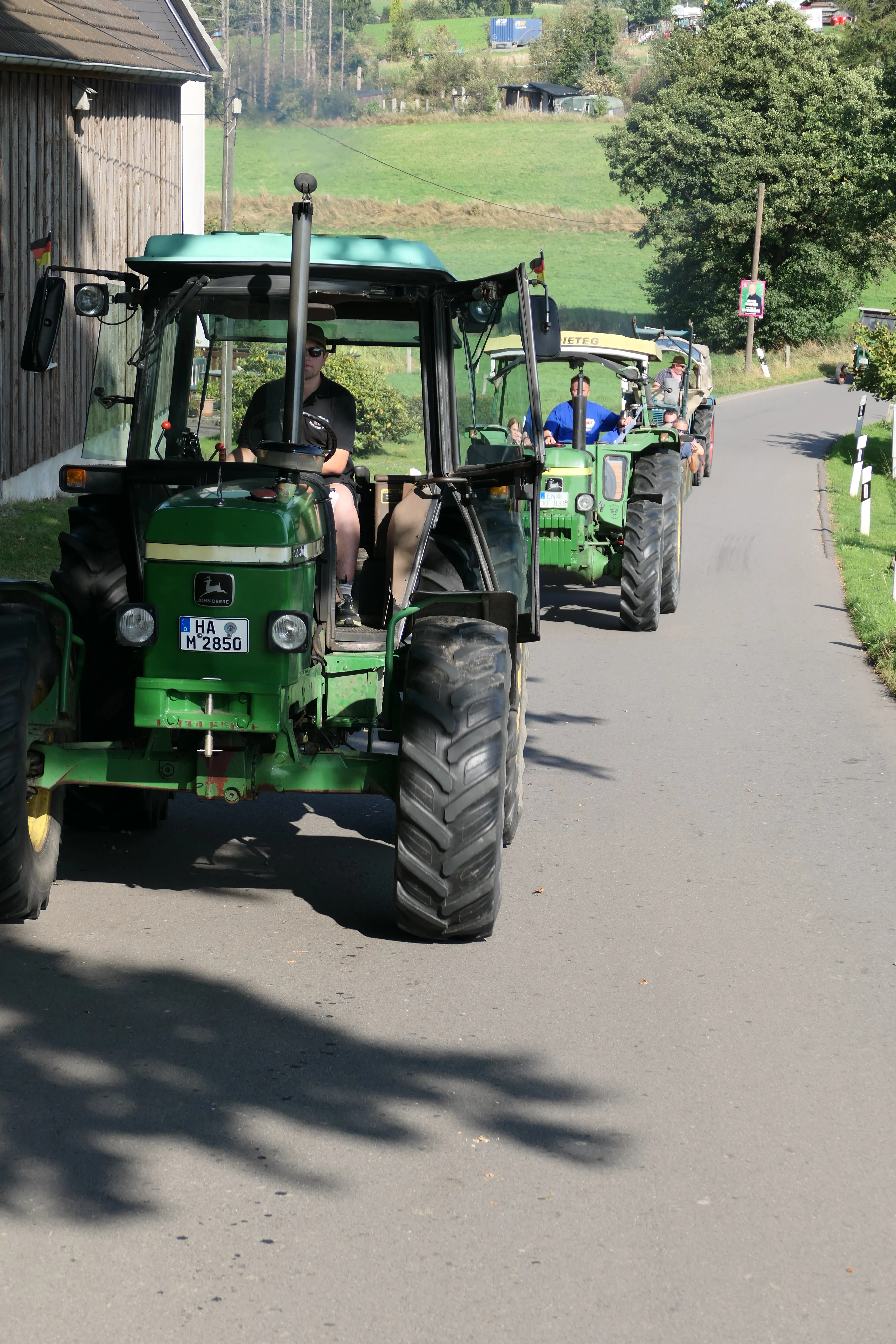 Damit die schön restaurierten Schlepper auch von möglichst vielen Menschen gesehen werden, organisierten die Traktorfreunde-Einzylinder für Samstagnachmittag eine rund 45 Minuten dauernde Rundfahrt durch Kreuzberg. Die Bewohner hatten es sich zum Teil in ihren Vorgärten bequem gemacht und bei einem Picknick auf den Corso gewartet. Viel Applaus belohnte die Trecker-Enthusiasten für die Arbeit, die sie in ihre Gefährte gesteckt haben. Besucher des Festplatzes, die das Erlebnis einer Treckerfahrt erleben wollten, fanden bei den Treckerfreunden auch eine Gelegenheit zur Mitfahrt auf den Beifahrersitzen oder im extra organisierten Planwagen-Anhänger.