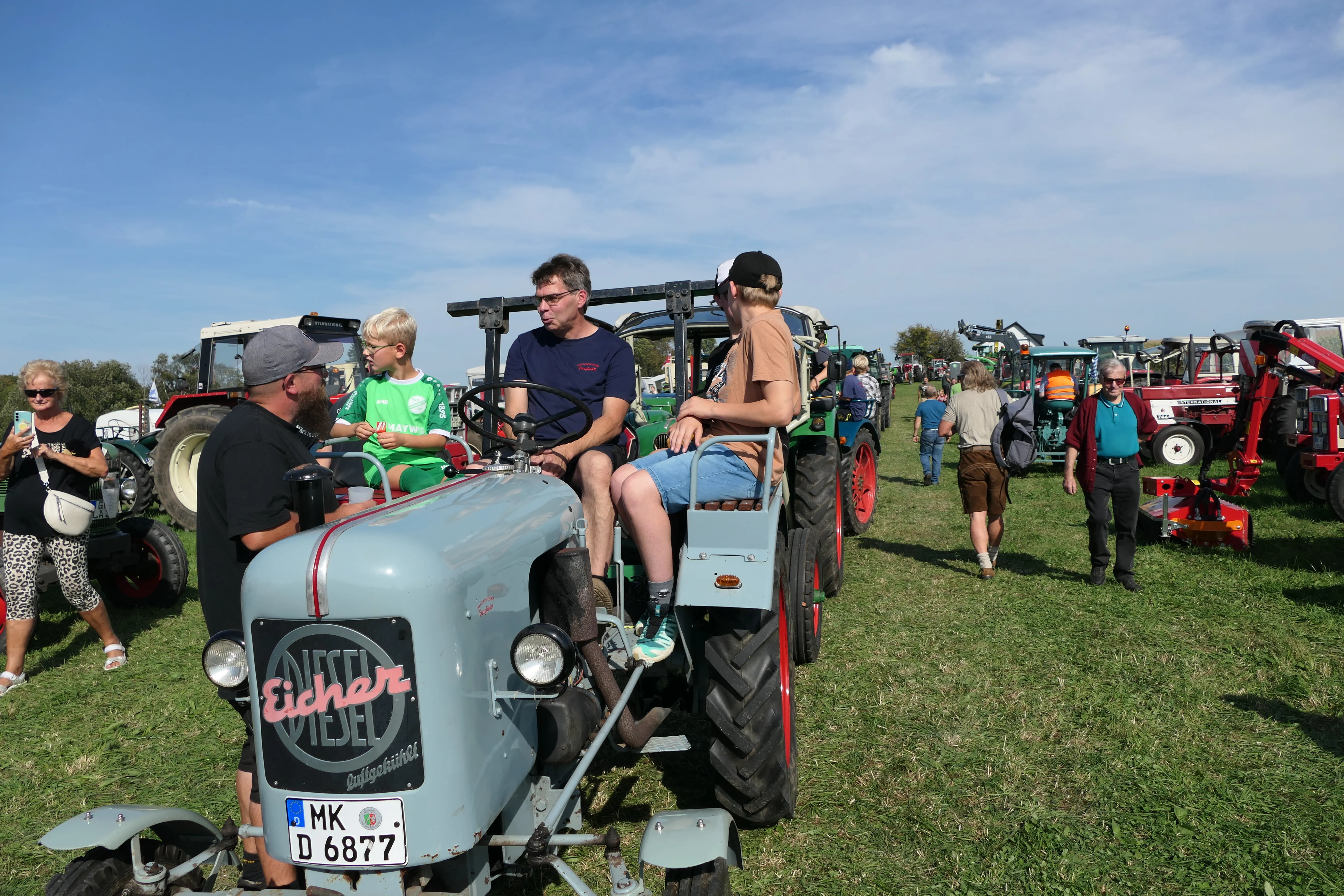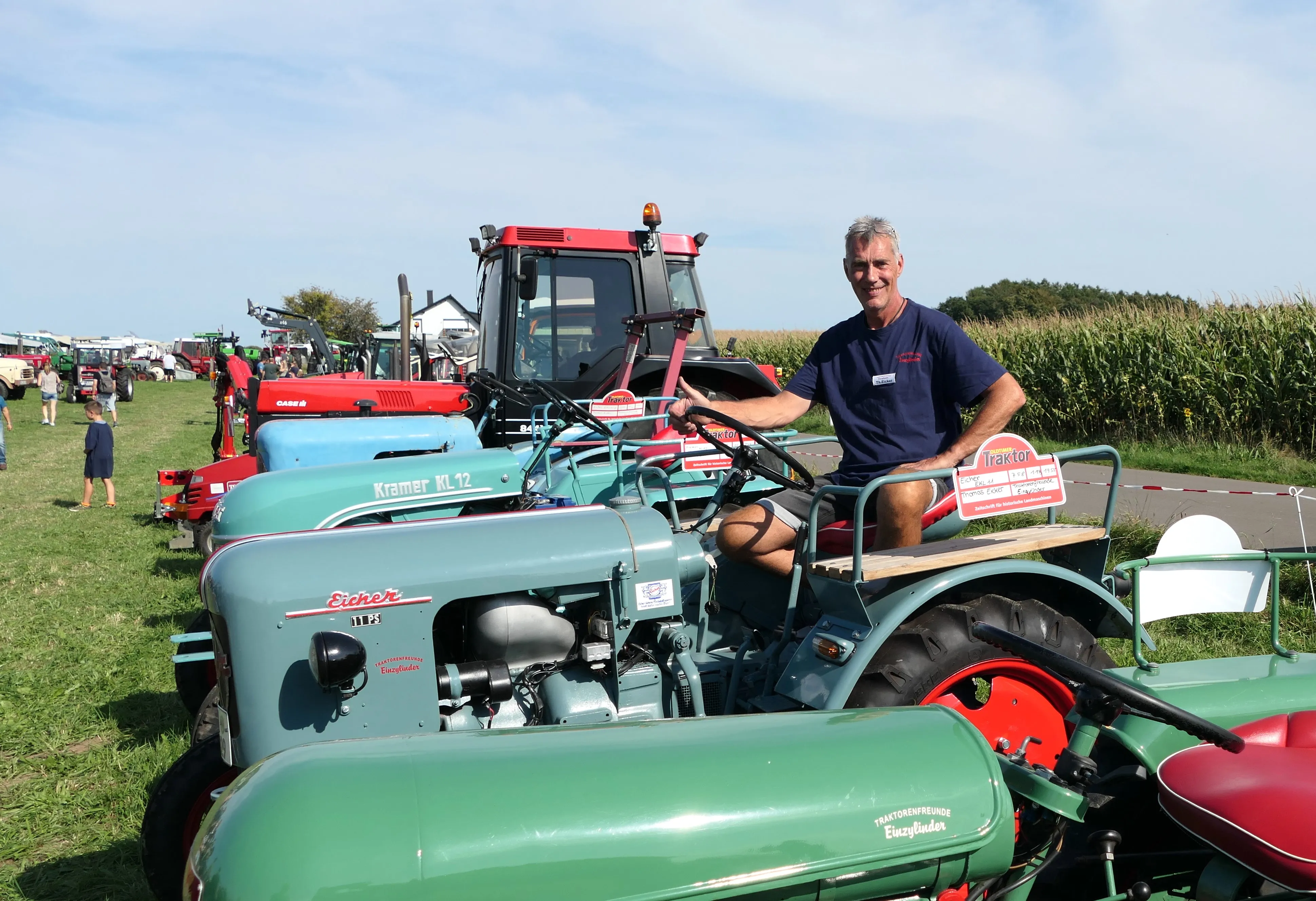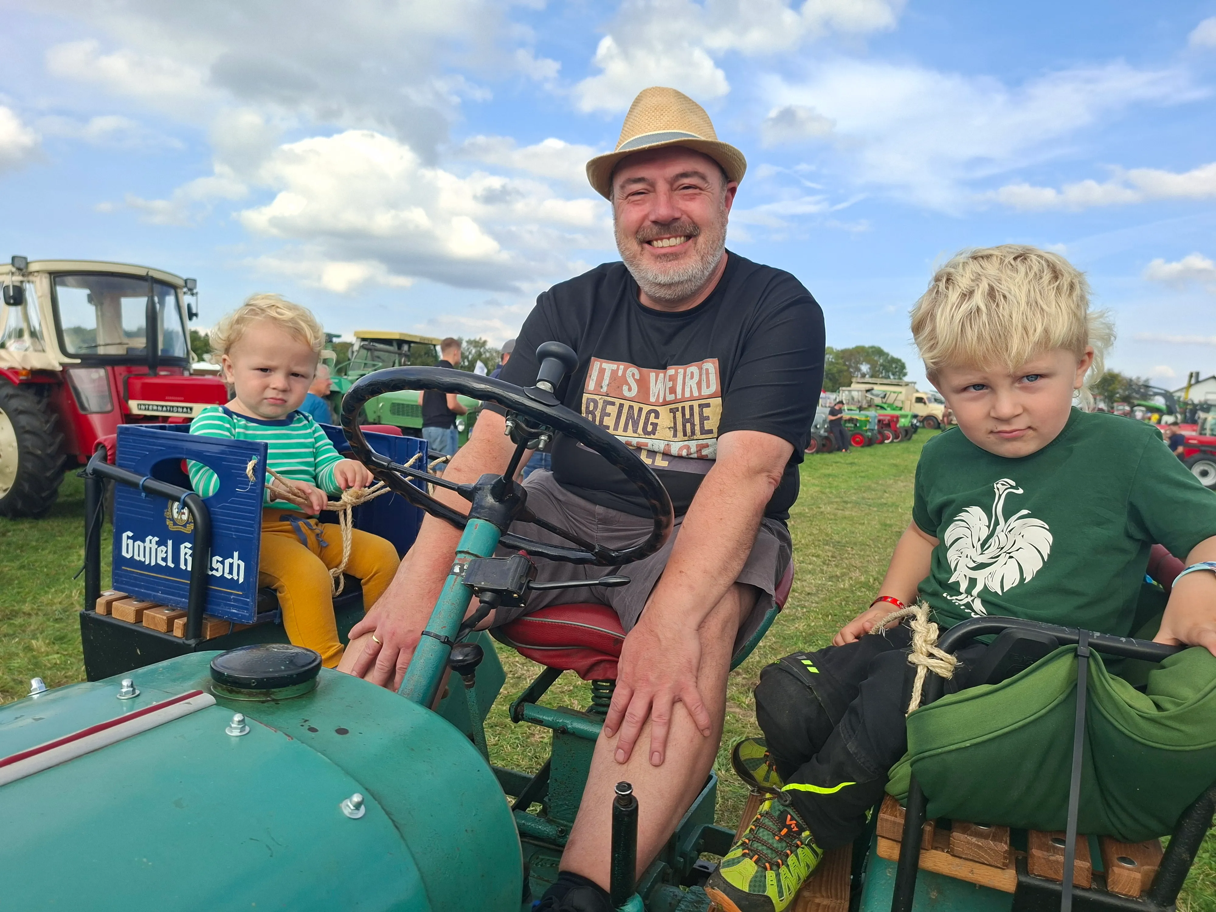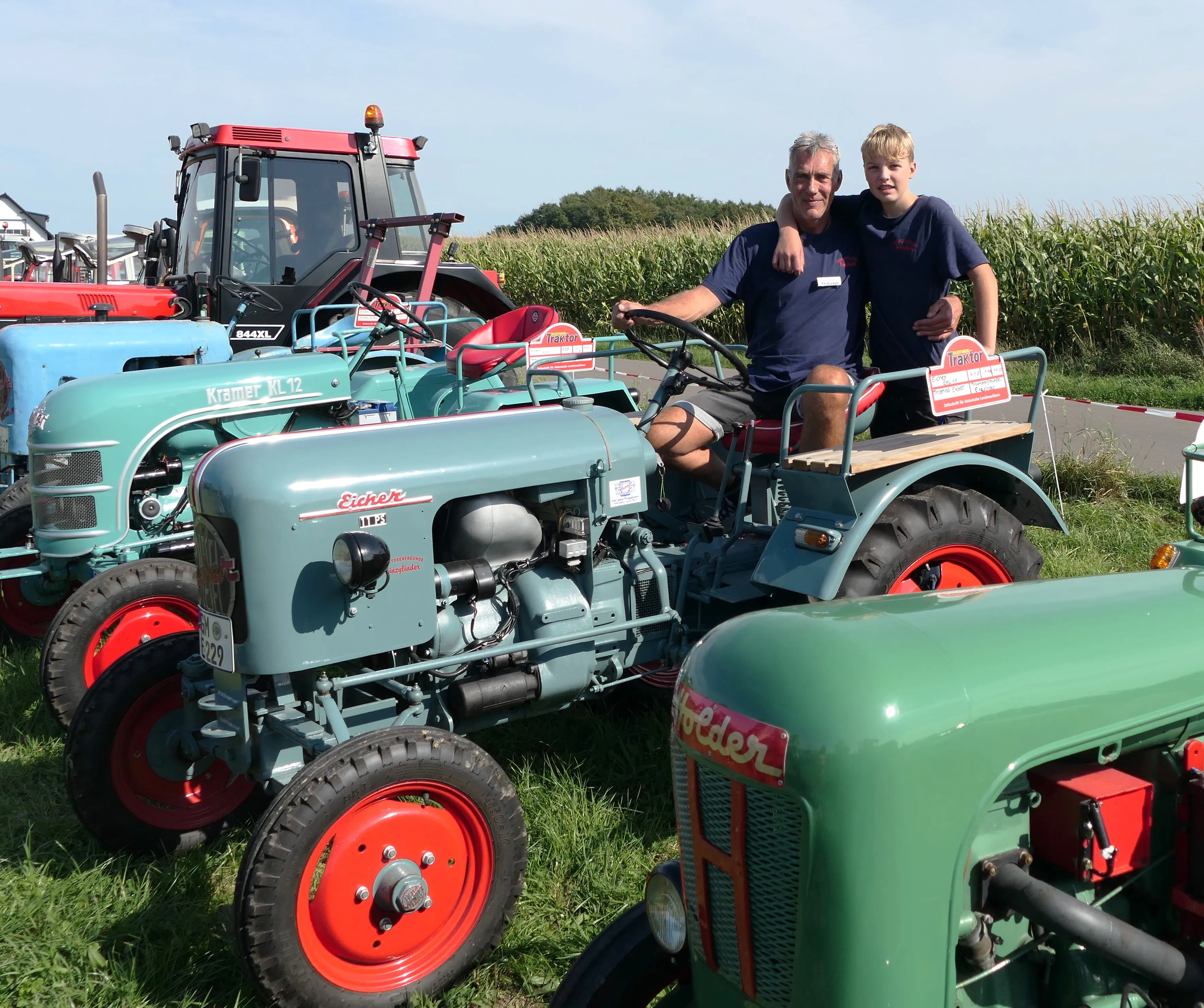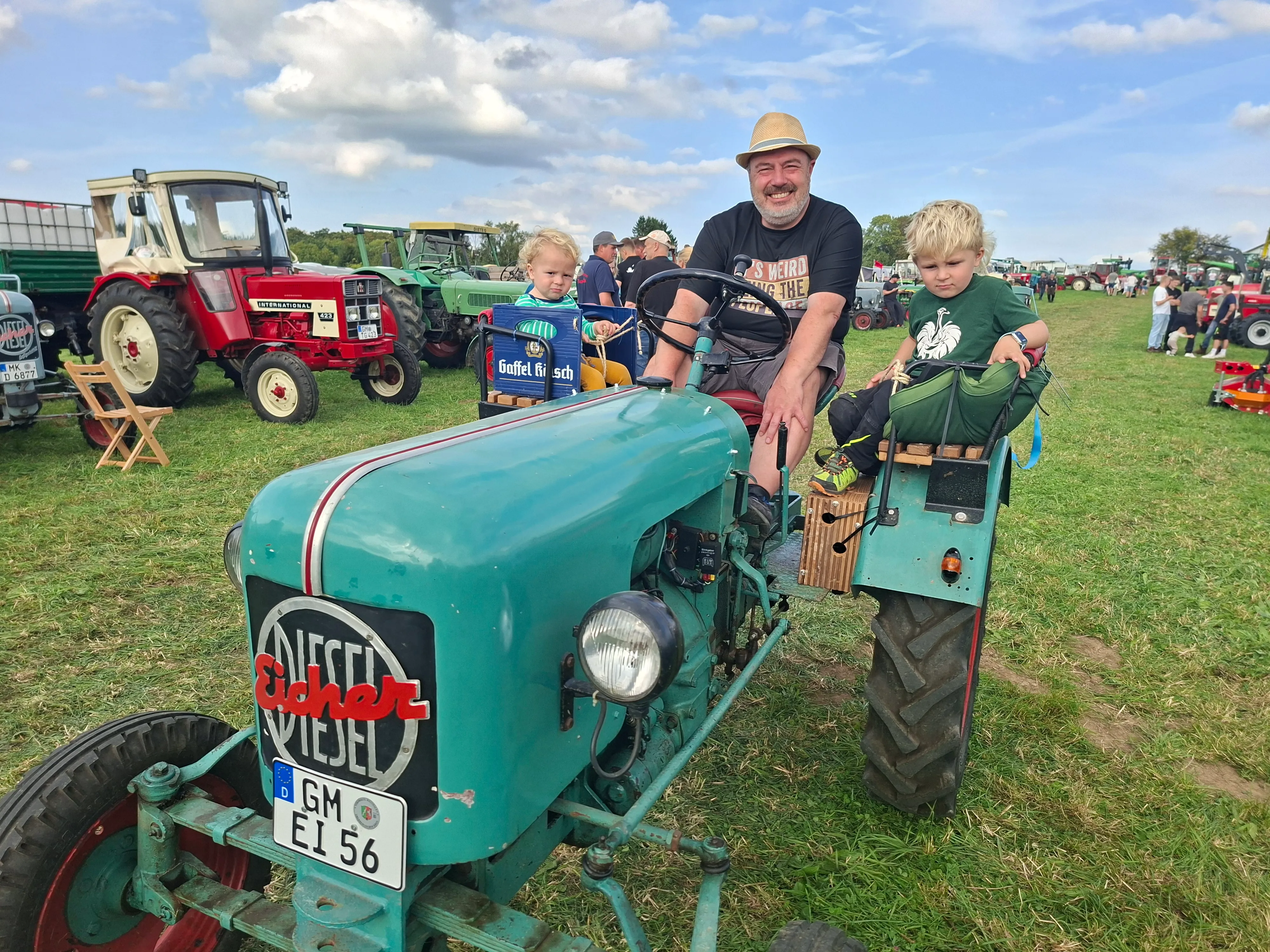 Warum die meist mehrere Jahrzehnte alten Landmaschinen für ihn so eine Faszination ausmachen, beschreibt Thomas Eicker so: "Die alten Schlepper haben alle schon ein Arbeitsleben hinter sich", sagt er. "Sie haben sich ihren Ruhestand verdient." Und dass sie jetzt, nach ihrer Restauration, im Sonntagskleid daherkommen, ist für ihn das Tüpfelchen auf dem i. "Es ist doch schön, dass jetzt nicht nur wir, sondern auch unsere Kinder und Enkel noch etwas davon haben. Unsere Kinder sind mit unserem Hobby aufgewachsen. Die haben alle mit fünf Jahren Fahren gelernt und sind als Unterstützung auch bei jedem Treffen dabei."