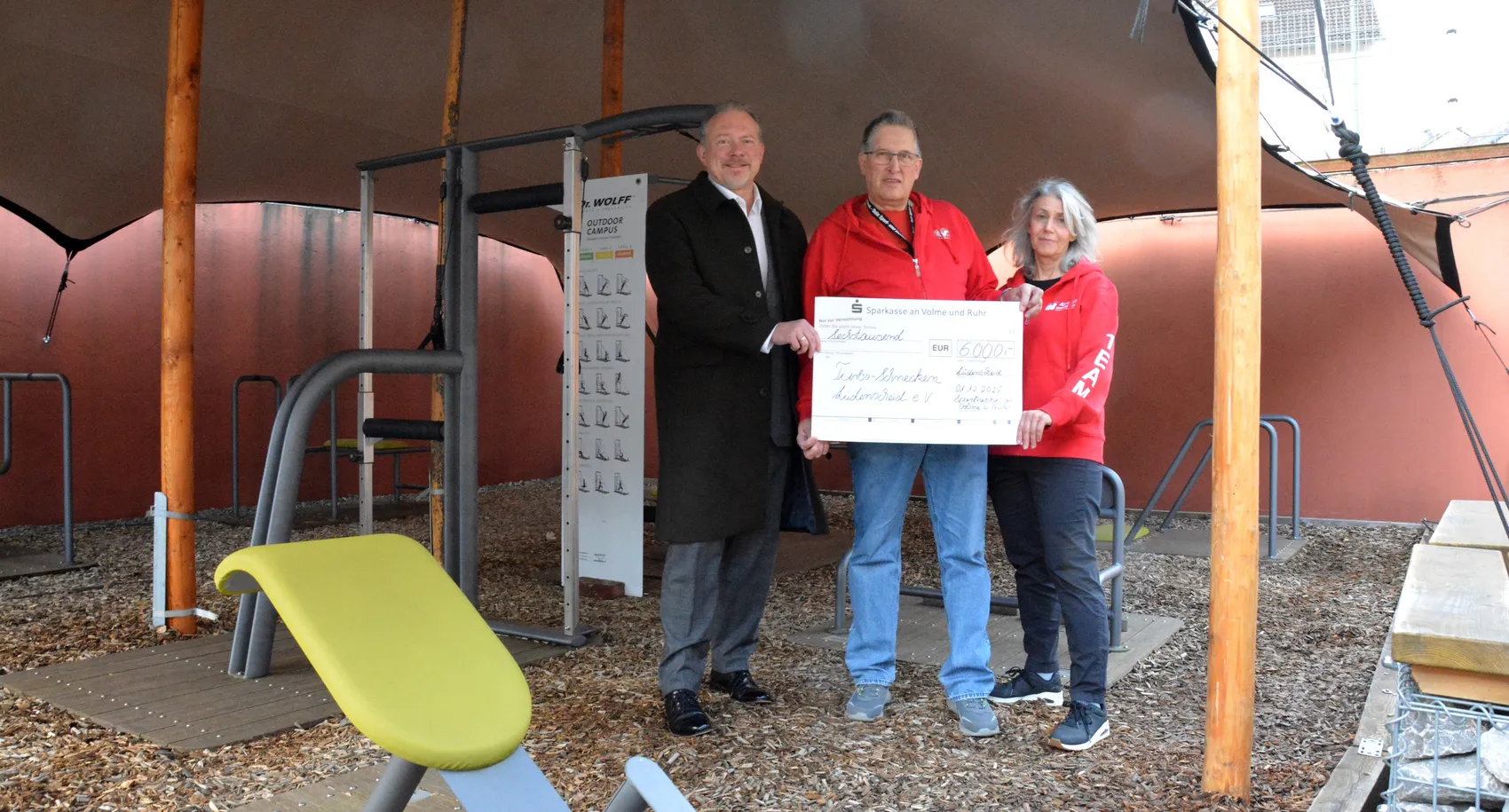 „Ich freue mich, dass wir so einen Beitrag zur Gesundheitsförderung leisten können“, sagte Markus Hacke vom Vorstand der Sparkasse an Volme und Ruhr. Wenige Minuten später überreichte er einen symbolischen Spendenscheck über 6000 Euro.