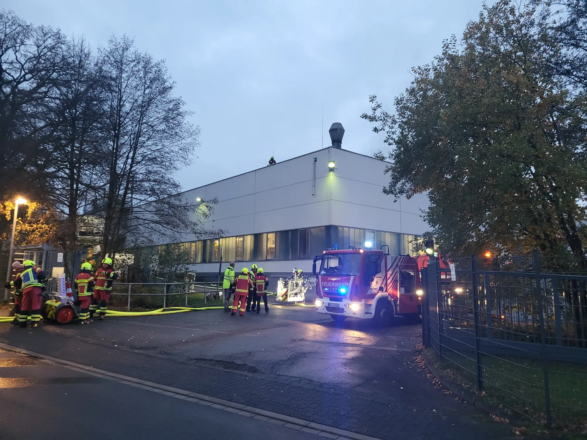 Bei dem Fahrzeugzulieferer, in der Helle 7, ist eine Absauganlage in Brand geraten. Dieser hat auf das Flachdach übergegriffen.
