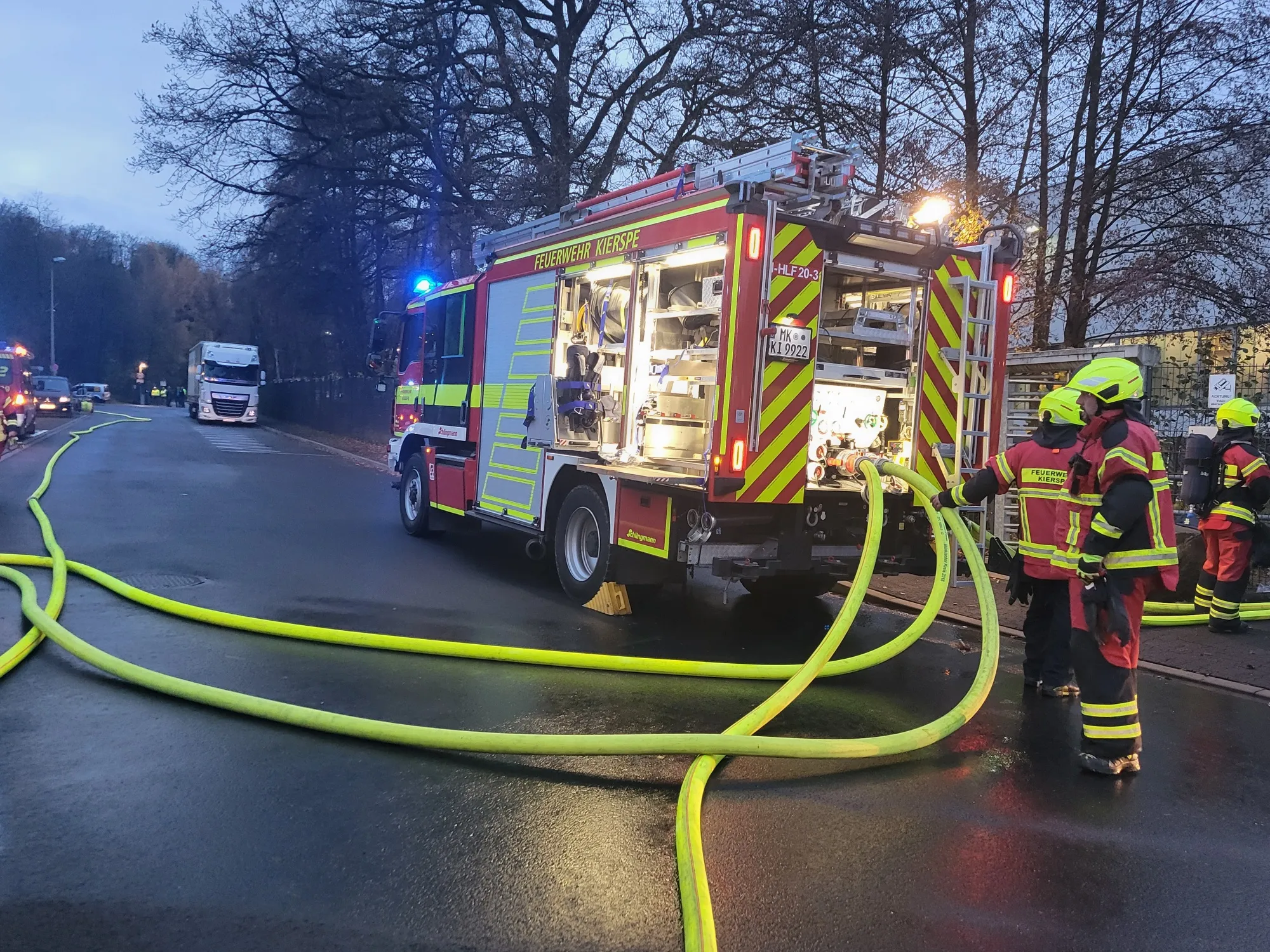 Es waren zirka 50 Einsatzkräfte von Feuerwehr, Rettungsdienst und DRK Kierspe im Einsatz. Verletzt wurde bei dem Einsatz niemand.