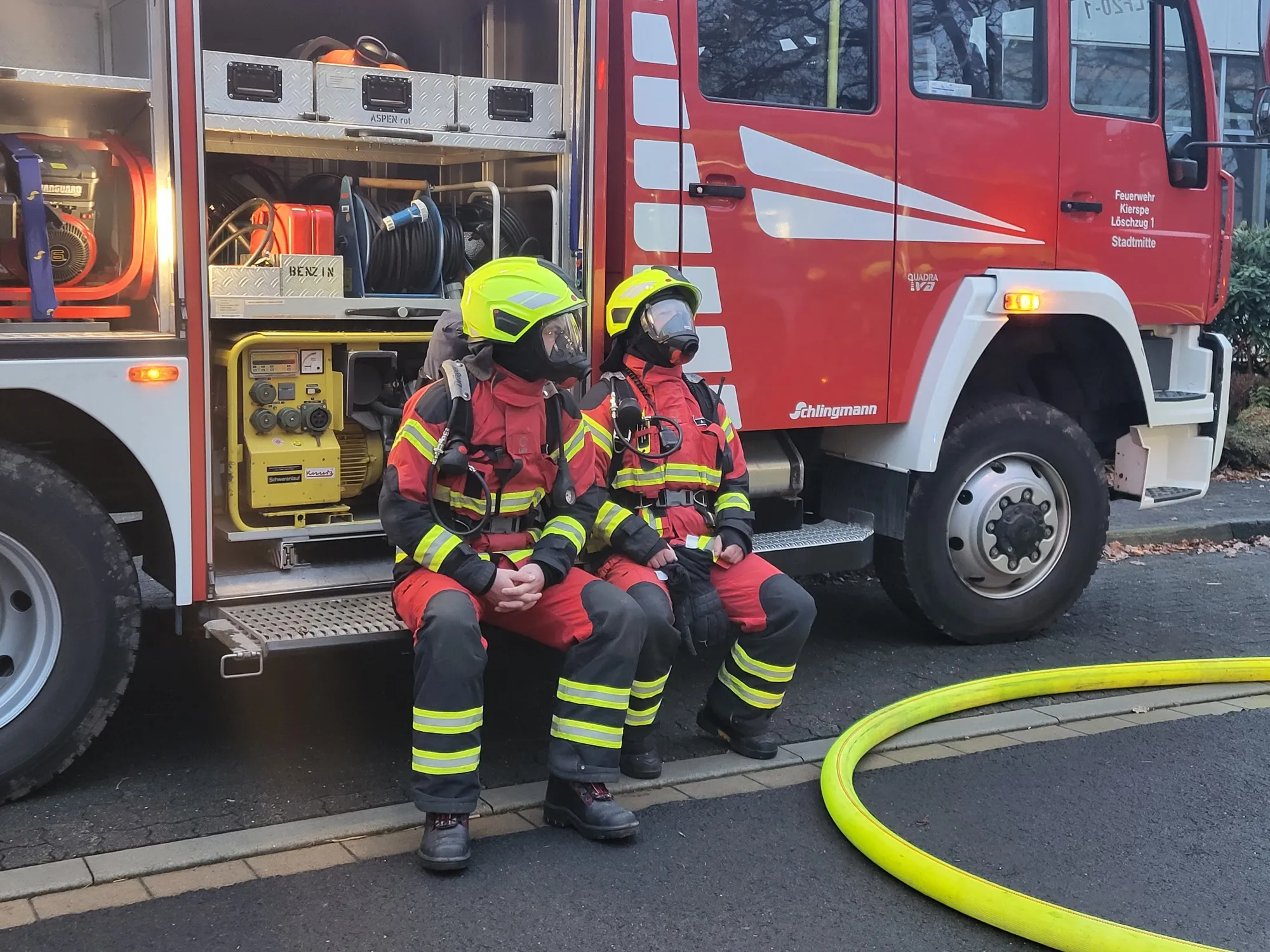 Nach Beendigung des Einsatzes konnte die Feuerwehr Kierspe vermelden, dass insgesamt drei Trupps unter Atemschutz gegen das Feuer vorgegangen sind. Ein Trupp bekämpfte das Feuer von Innen, ein weiterer vom Dach und der dritte von der Drehleiter.