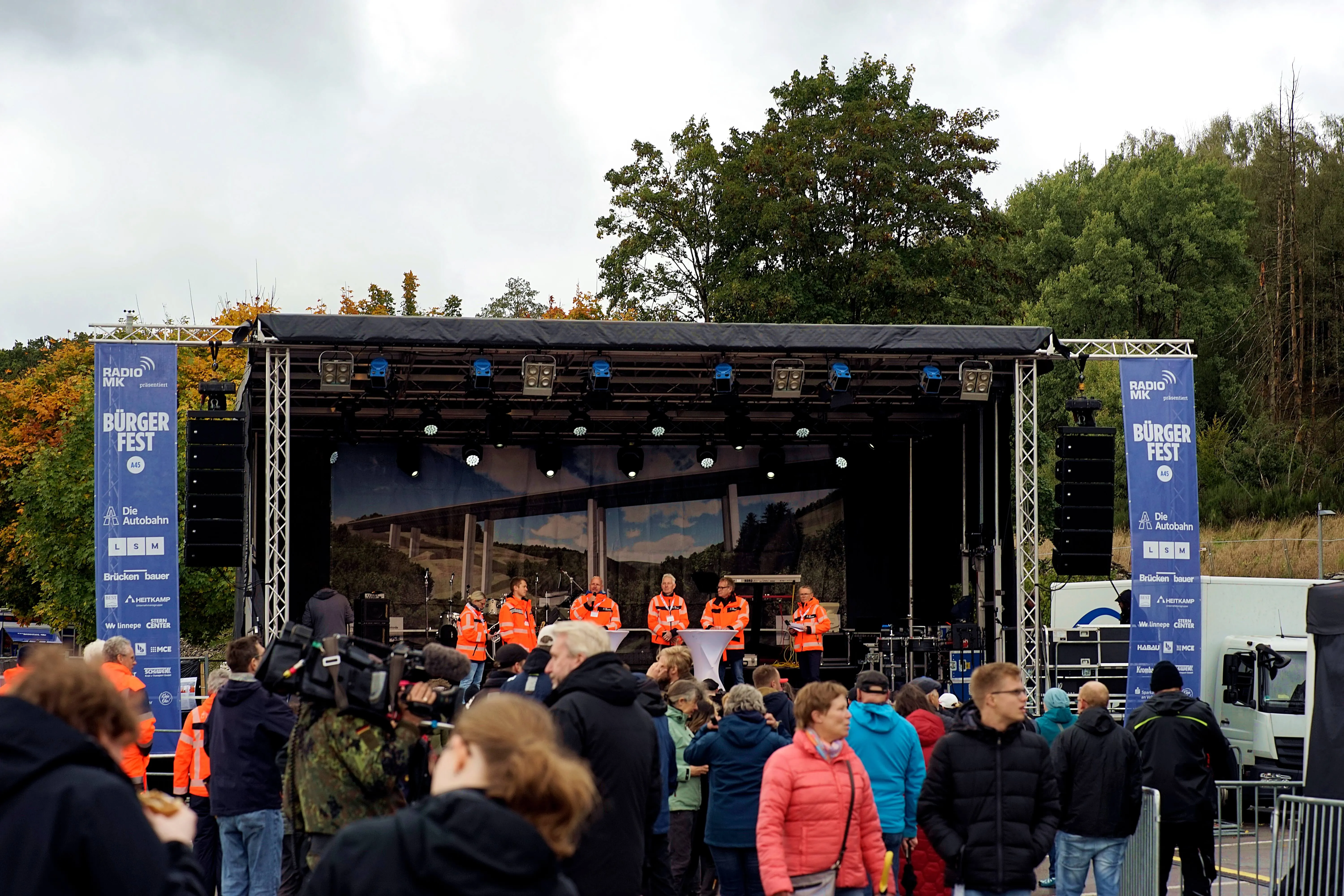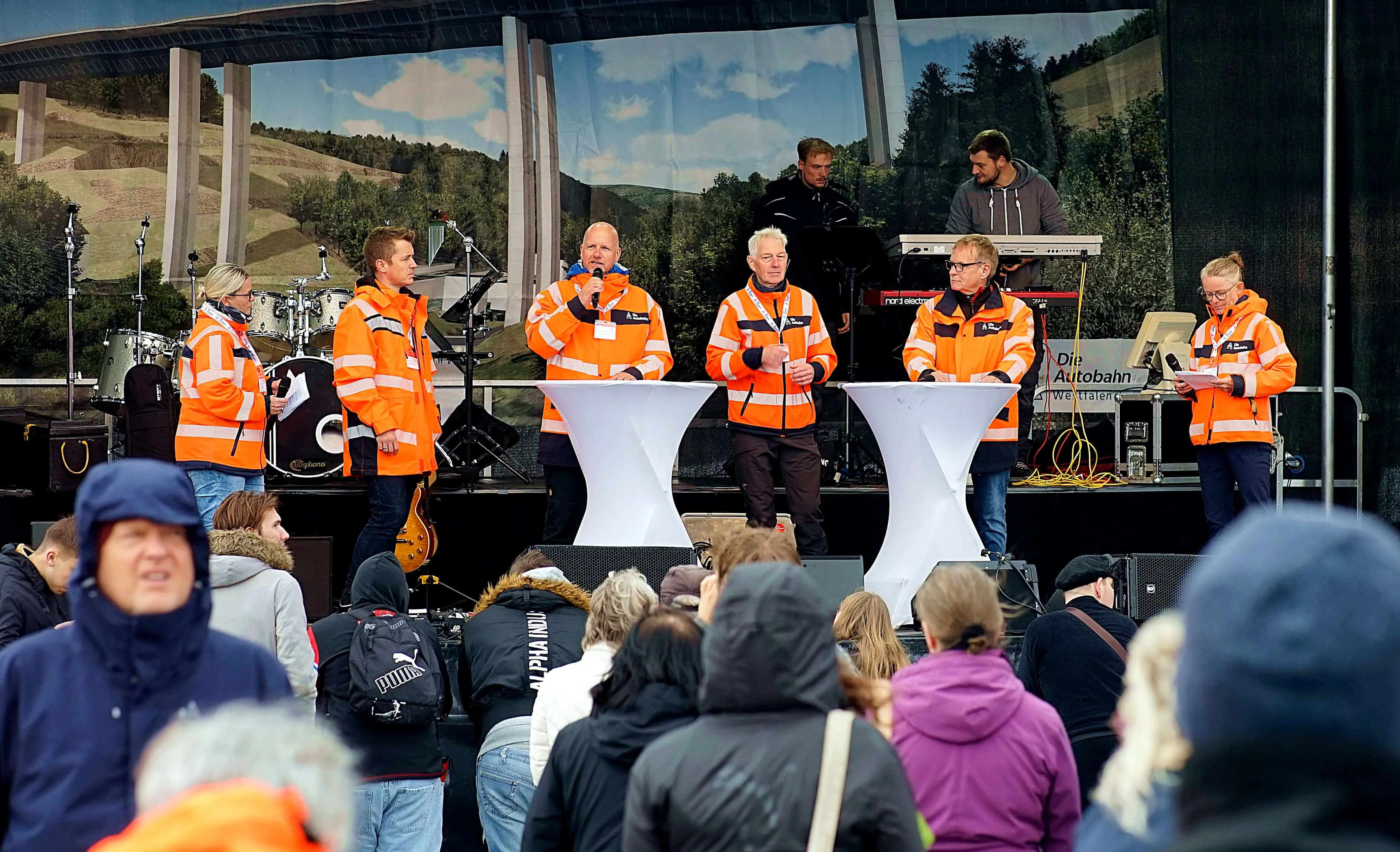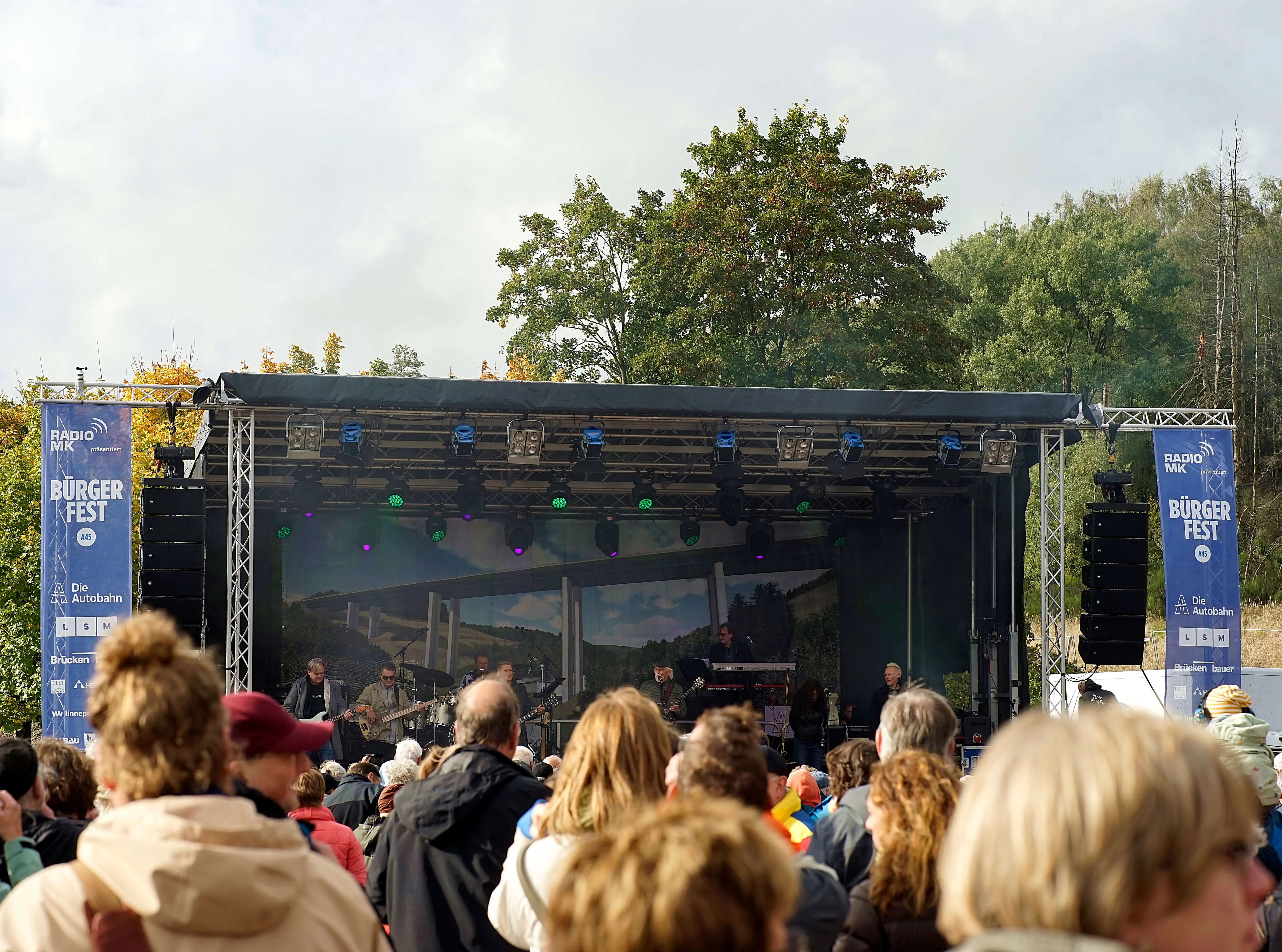 „Heute wird ein herrlicher Tag“ sangen Maidi Langenbartels und Co vom Chorverband im Märkischen Kreis – zum erhofften Rudelsingen kam es auf dem A45-Rastplatz Hunscheid allerdings nicht. Zu spärlich war das Publikum vor der Bühne und angesichts des Wetters am Vormittag dachte so mancher an Realsatire. Aber: Wer ausharrte, erlebte zwei unterschiedliche Halbzeiten des A45-Bürgerfestes.