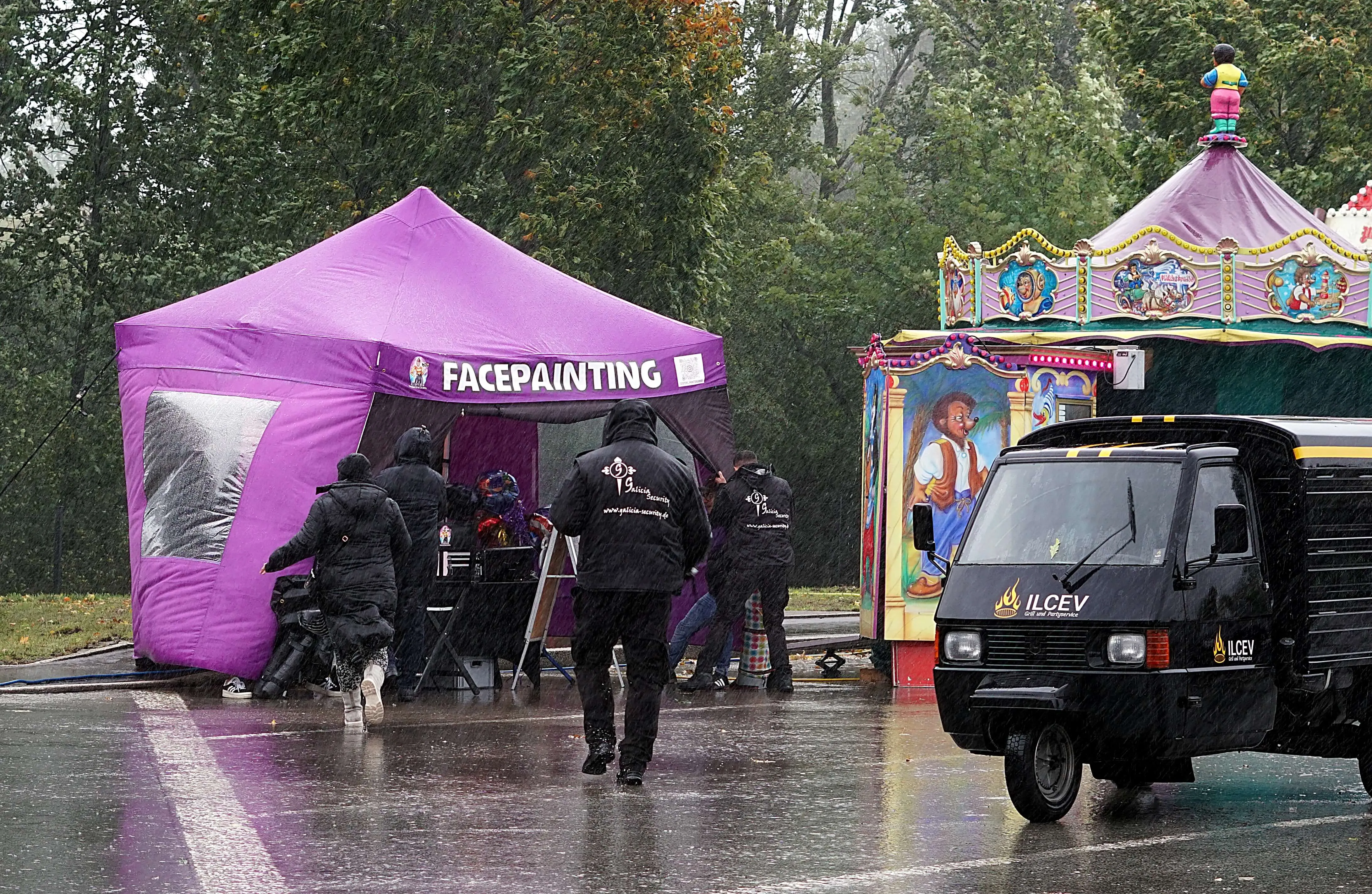 Am Vormittag: Regenschirme überall, MVG-Mitarbeiter verteilen orangene Regencapes, überschaubare Passagierzahlen in den 29 kostenlosen Shuttle-Bussen und ab und an heftige Windböen.