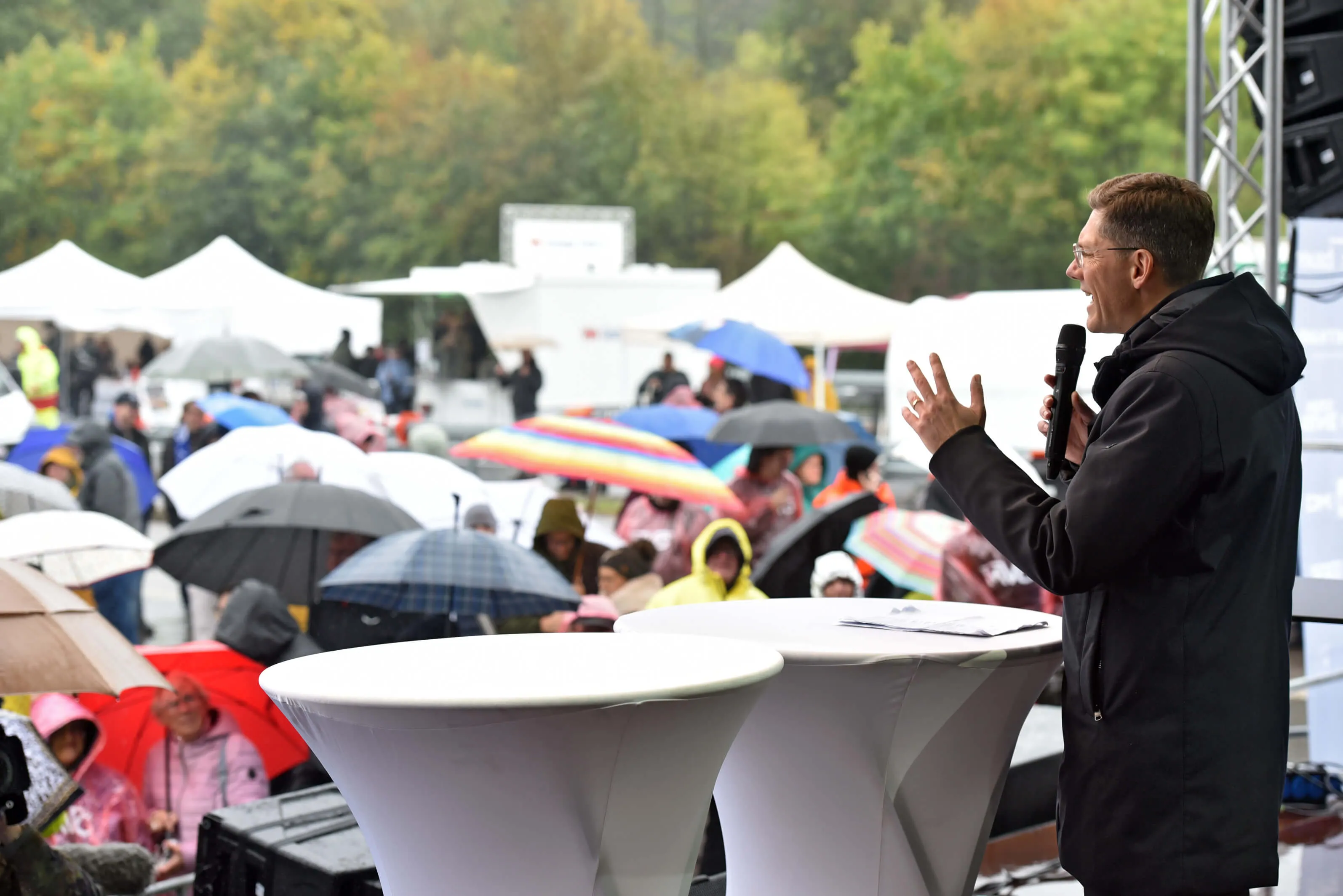 Ab Mittag: Die Wolken lockern auf, die Sonne kommt durch, die Mienen der Standbetreiber auf der Futter- und Infomeile hellen sich ebenfalls auf, die Shuttle-Busse füllen sich und beim Auftritt von Zoff strahlte ab 15 Uhr sogar die Sonne. So wurde die Brückenparty ein Fest für viele. Auch wenn die Marke von 10.000 Besucherinnen und Besuchern, die im Vorfeld genannt worden war, nicht erreicht wurde.