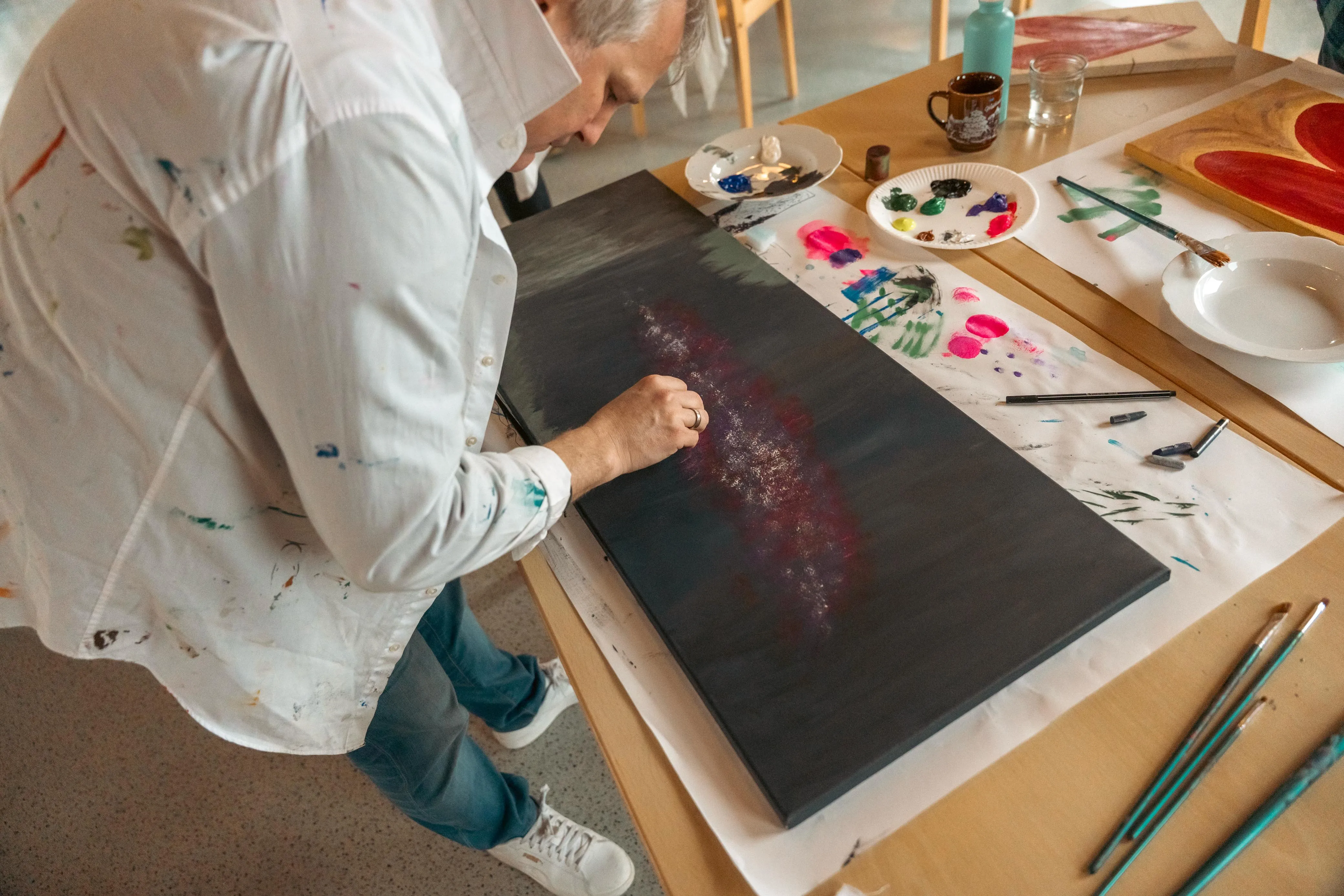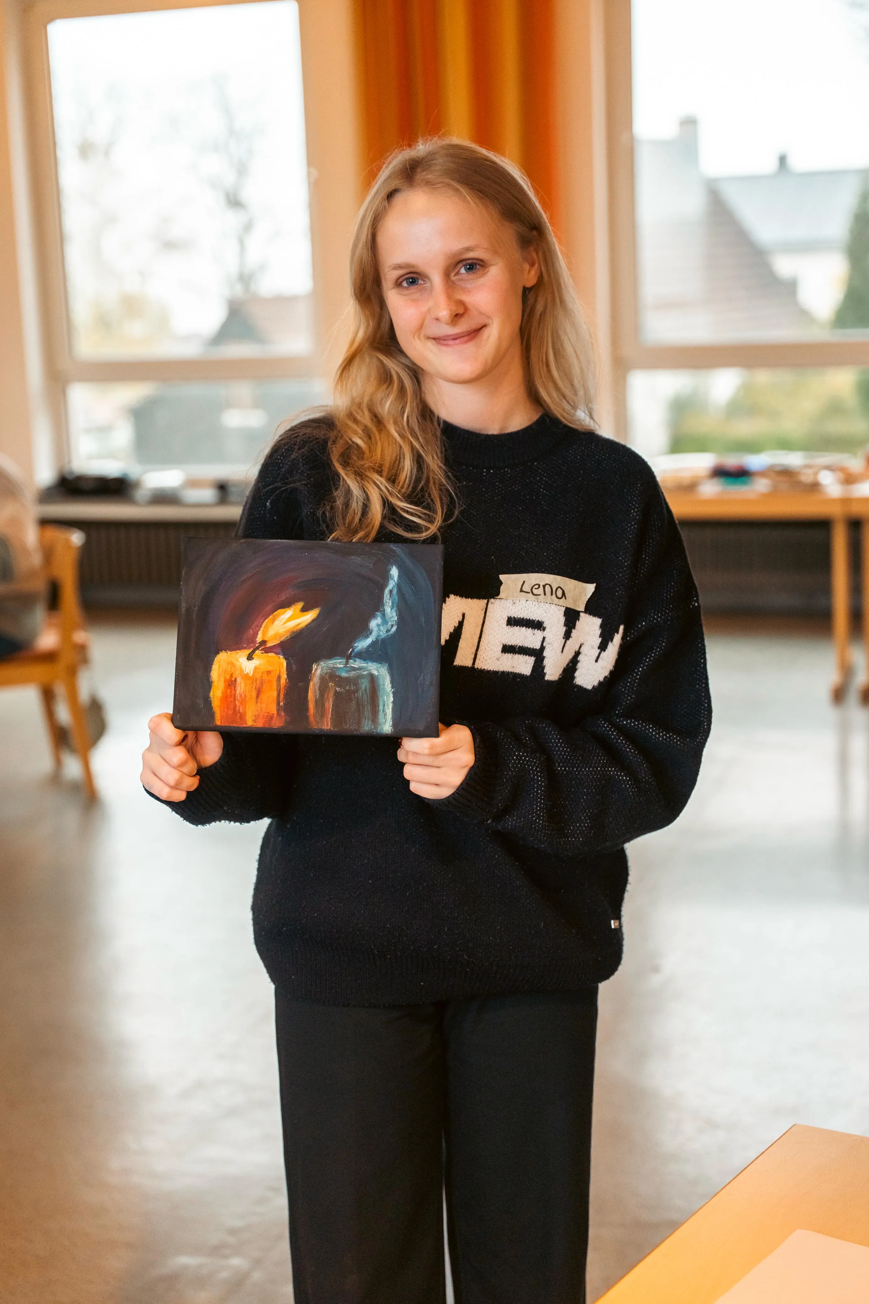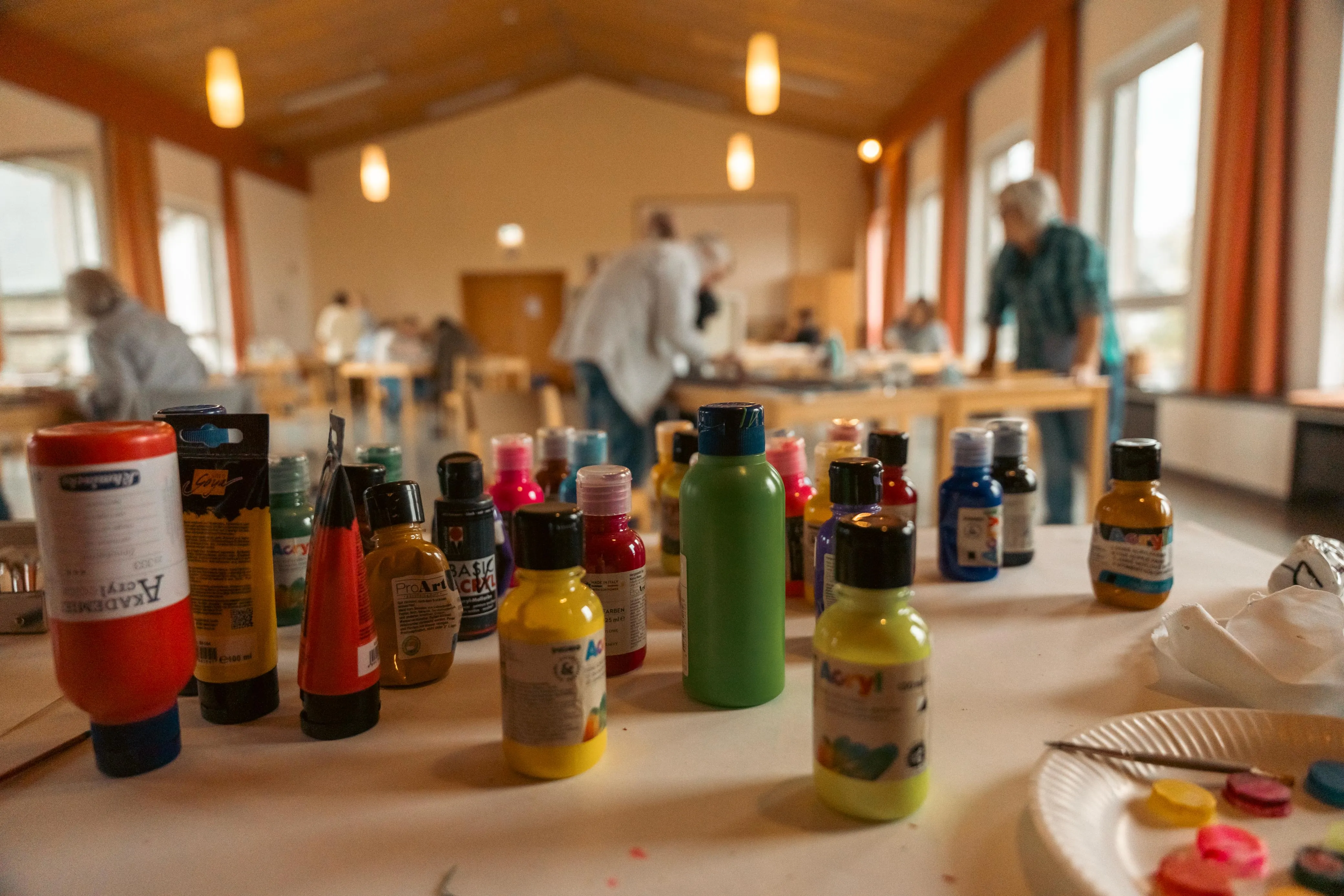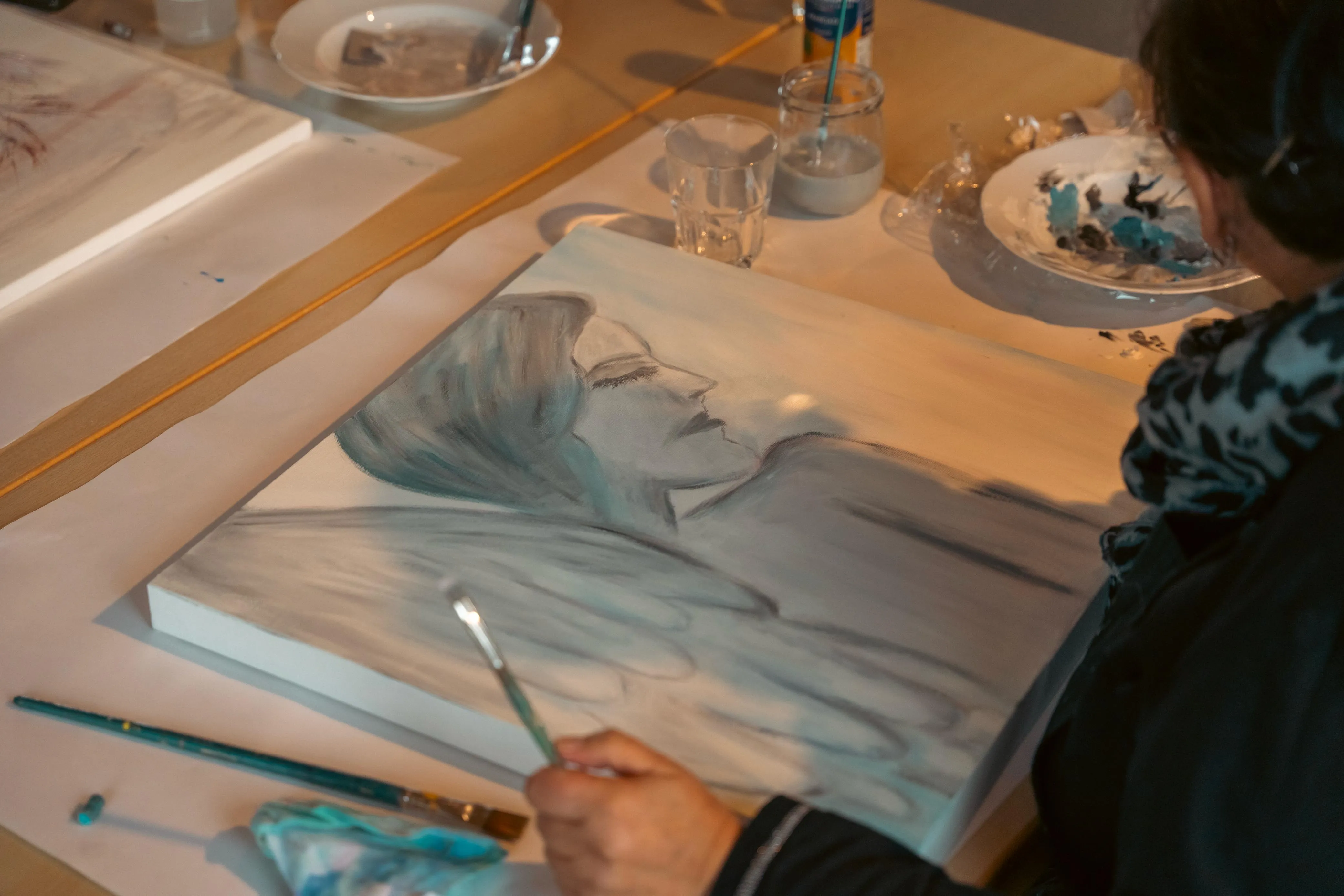 Gudi Mausbach-Dahl stand den Malern beratend zur Seite. Die Halveranerin gab zudem zahlreiche Tipps. Zum Beispiel sei es manchmal hilfreich, das Gemälde aus einer größeren Entfernung zu betrachten oder auch verschiedene Maltechniken zu verwenden, wie klassisch den Pinsel oder aber auch mal mit einem Schwamm die Farbe aufzutragen.
