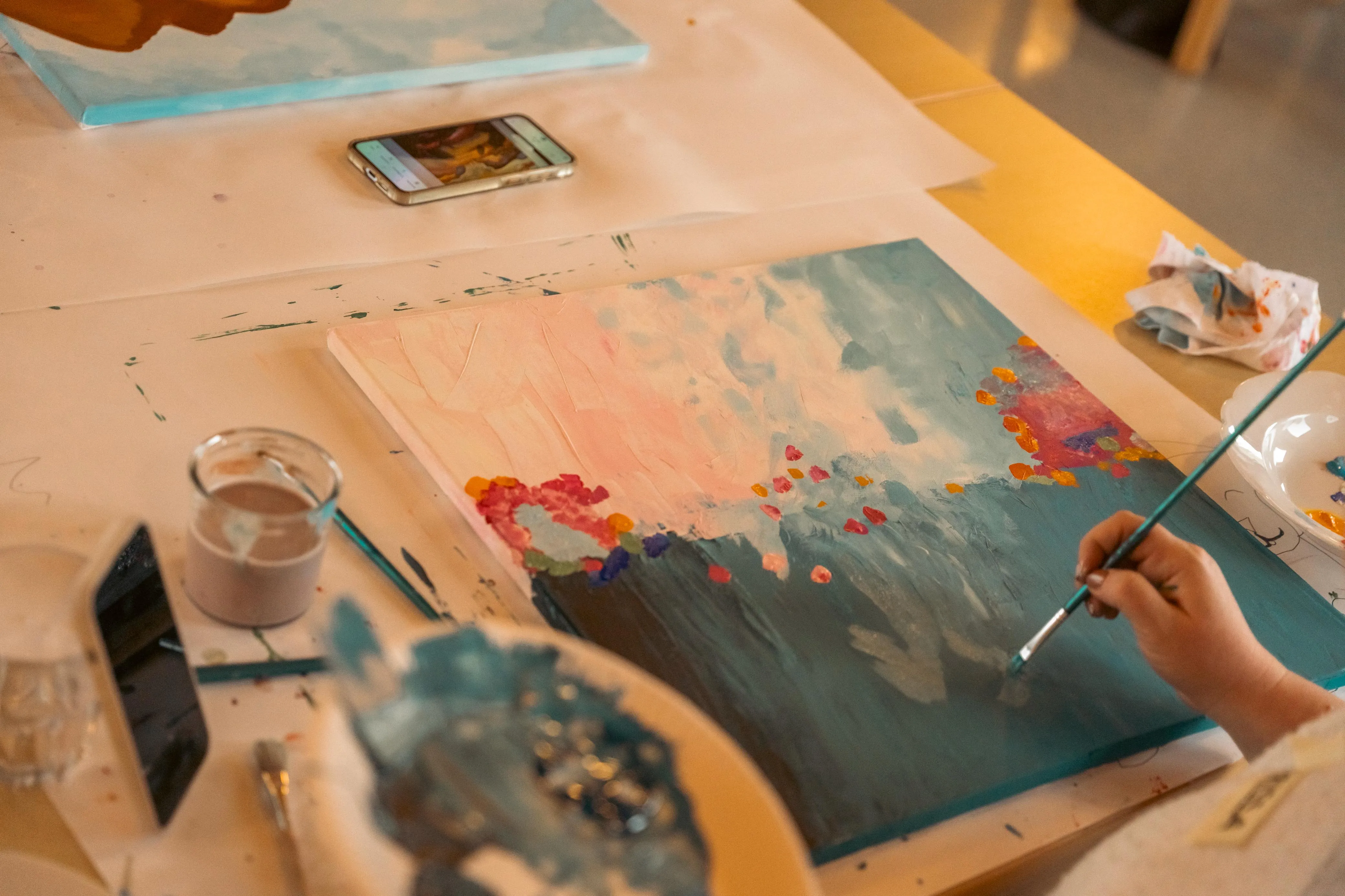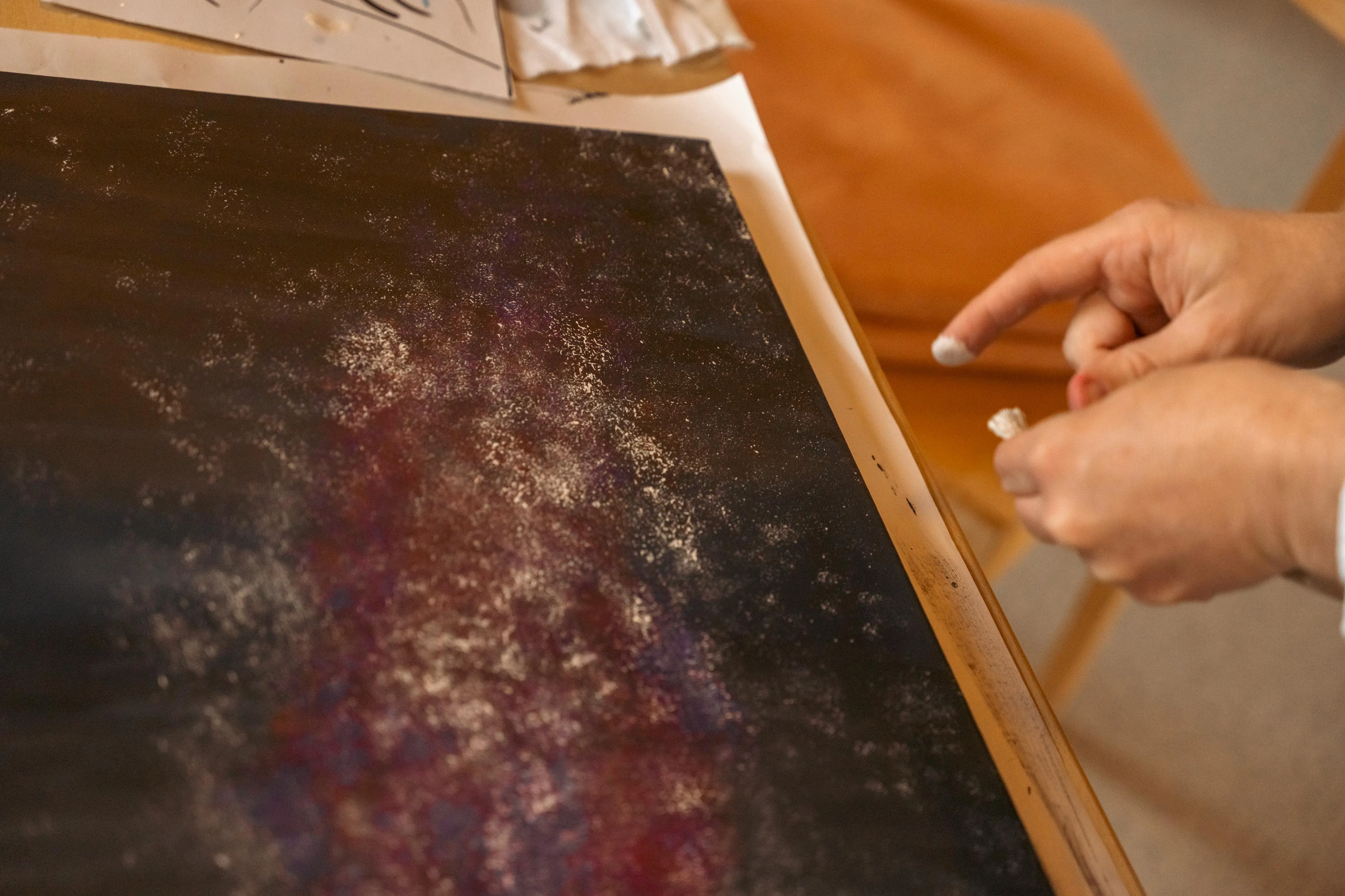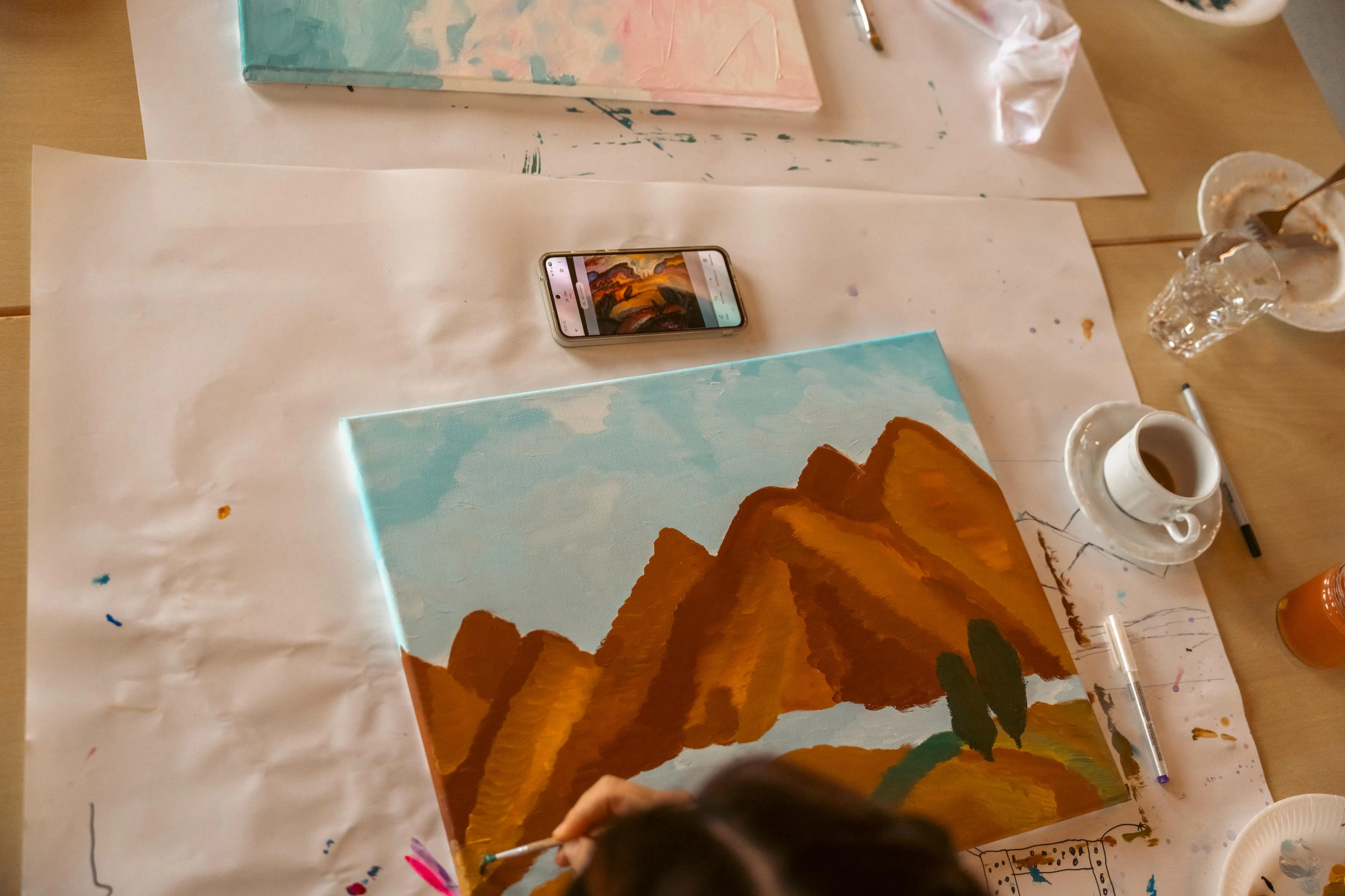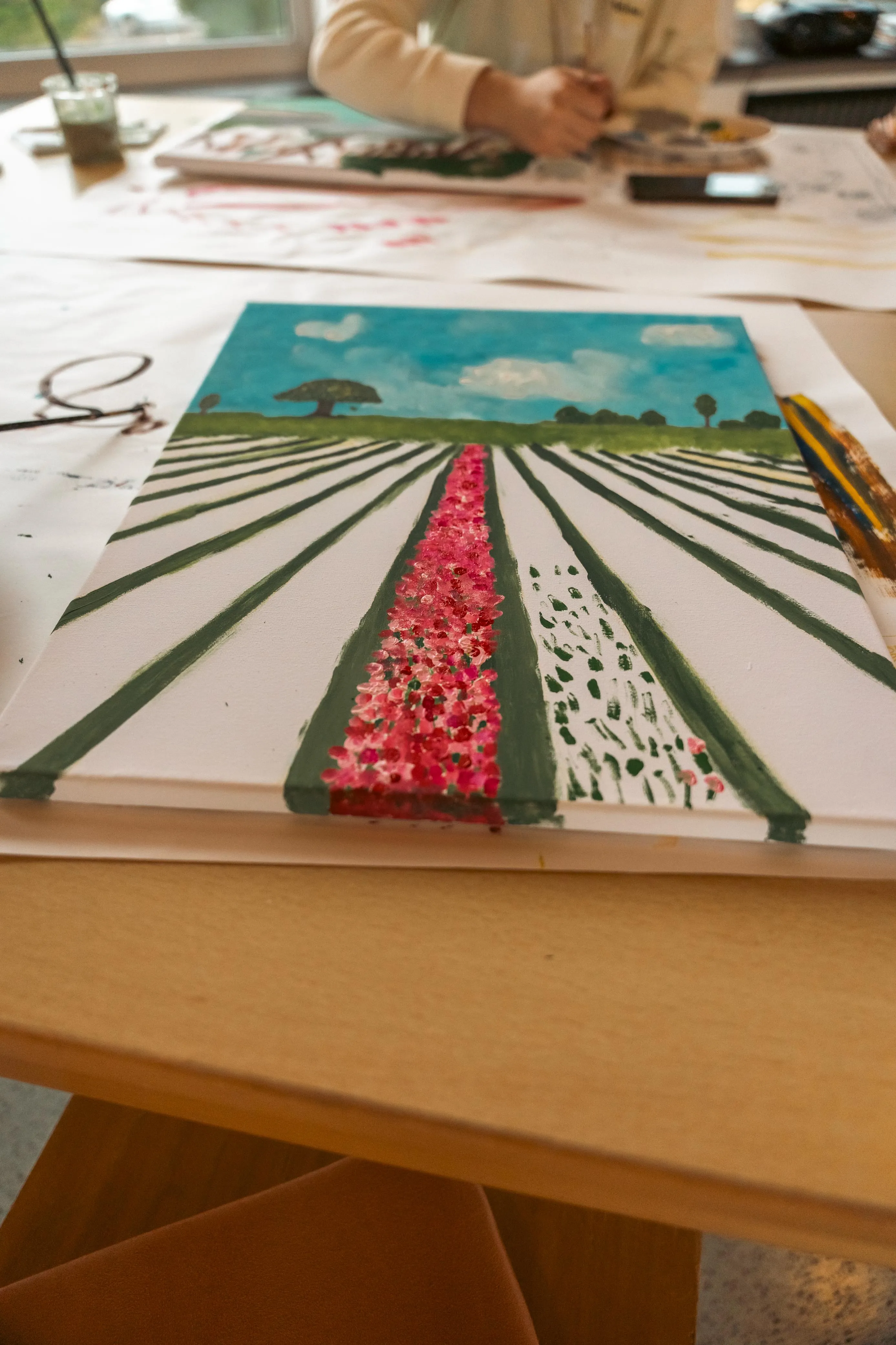 Gudi Mausbach-Dahl stand den Malern beratend zur Seite. Die Halveranerin gab zudem zahlreiche Tipps. Zum Beispiel sei es manchmal hilfreich, das Gemälde aus einer größeren Entfernung zu betrachten oder auch verschiedene Maltechniken zu verwenden, wie klassisch den Pinsel oder aber auch mal mit einem Schwamm die Farbe aufzutragen.