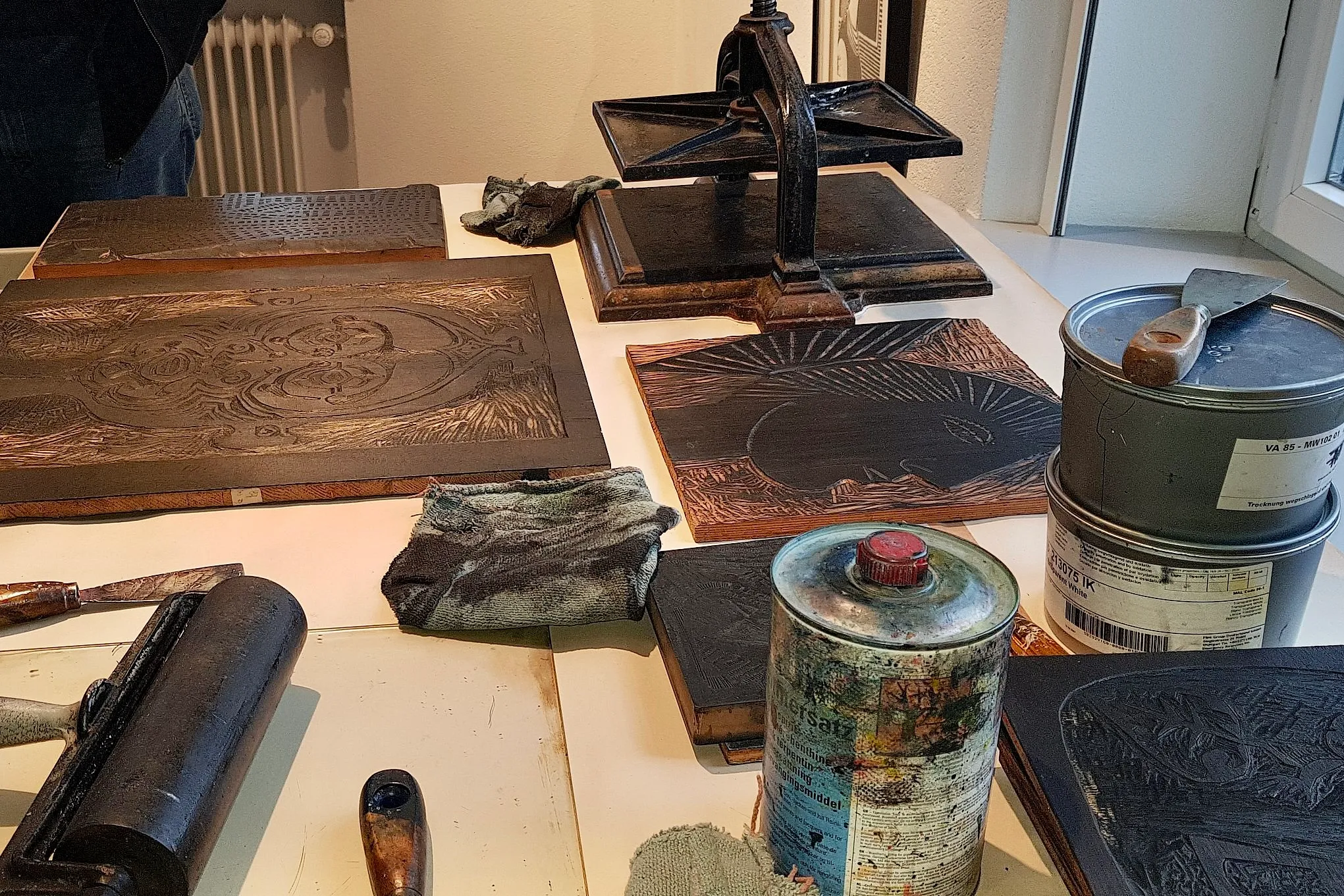 Neben einem Überblick über die Arbeiten Johanns Georgs Müllers sind auch Werkzeuge und Materialien ausgestellt — bis zur Druckerpresse. Sie geben einen Einblick, wie filigran er gearbeitet hat und welches handwerkliche Know-how nötig war. Neben alten Techniken nutzte der Pfälzer ab 1960 auch Filzstifte, die, aus Japan kommend, in Europa gerade „in“ waren. Für seine Arbeiten wurde Müller mehrfach ausgezeichnet, unter anderem in den 70-er Jahren mit der Picasso-Medaille.