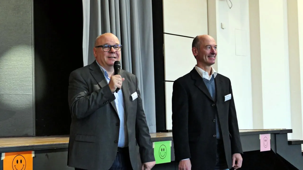 Die Begrüßung der Kinder und Eltern übernahm Schulleiter Oliver Held. In seinen Einführungsreden wies Held auf die steigenden Schülerzahlen hin und spannte den Bogen zu den Bautätigkeiten im „Neubau“ der Realschule. Dort würden in den nächsten zwei Jahren etwa 19,5 Millionen Euro investiert, um die Schule mit dringend benötigten Fachräumen auszustatten. Damit soll den aktuell ca. 700 Schülerinnen und Schülern sowie den etwa 60 Lehrkräften ein angenehmeres Arbeiten ermöglicht werden.