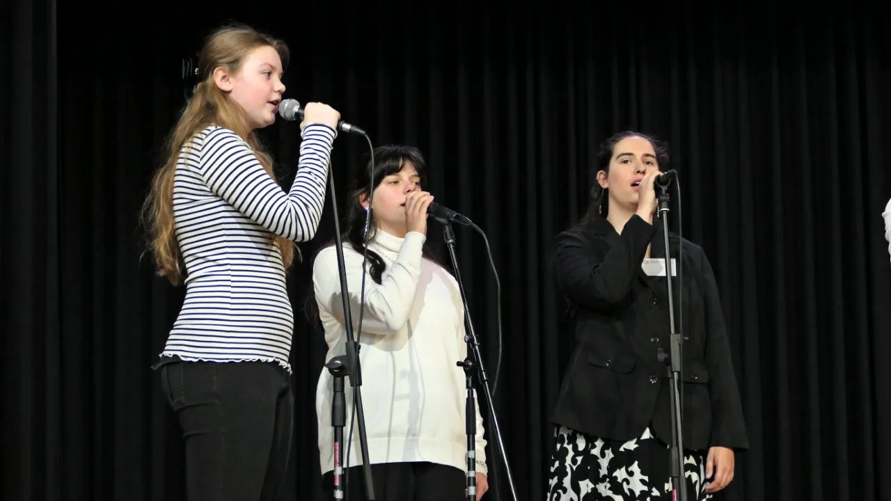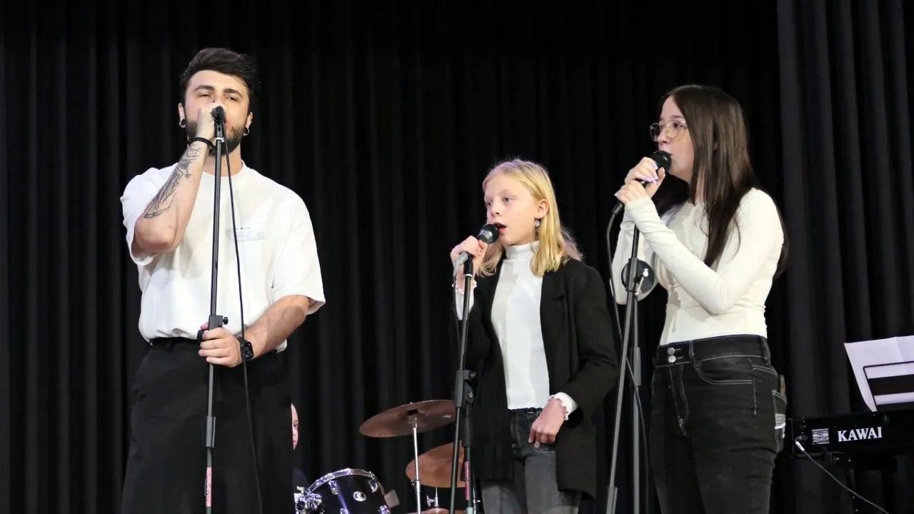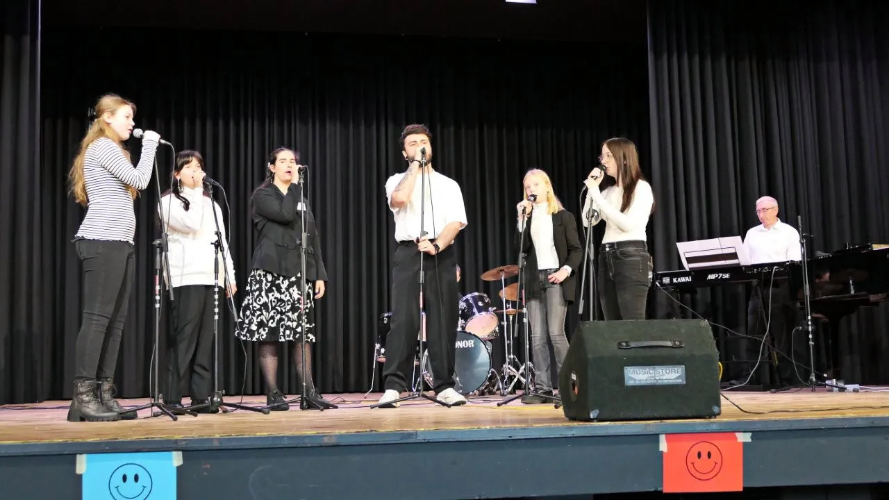 Die weiterführende Einleitung übernahm der stellvertretende Schulleiter Michael Stemski. Er gab den Anwesenden in der Aula einen Überblick über den Verlauf des Vormittags. Der Schulchor der fünften Klasse präsentierte u. a. „In der Weihnachtsbäckerei“ von Rolf Zuckowski. Anschließend gab es die Premiere der Schulband, die sich aus einer AG entwickelt hat, mit dem Lied Skyfall von Adele. Der dritte Programmpunkt war eine Modenschau, bei der die Schulkleidung der Realschule präsentiert wurde.
