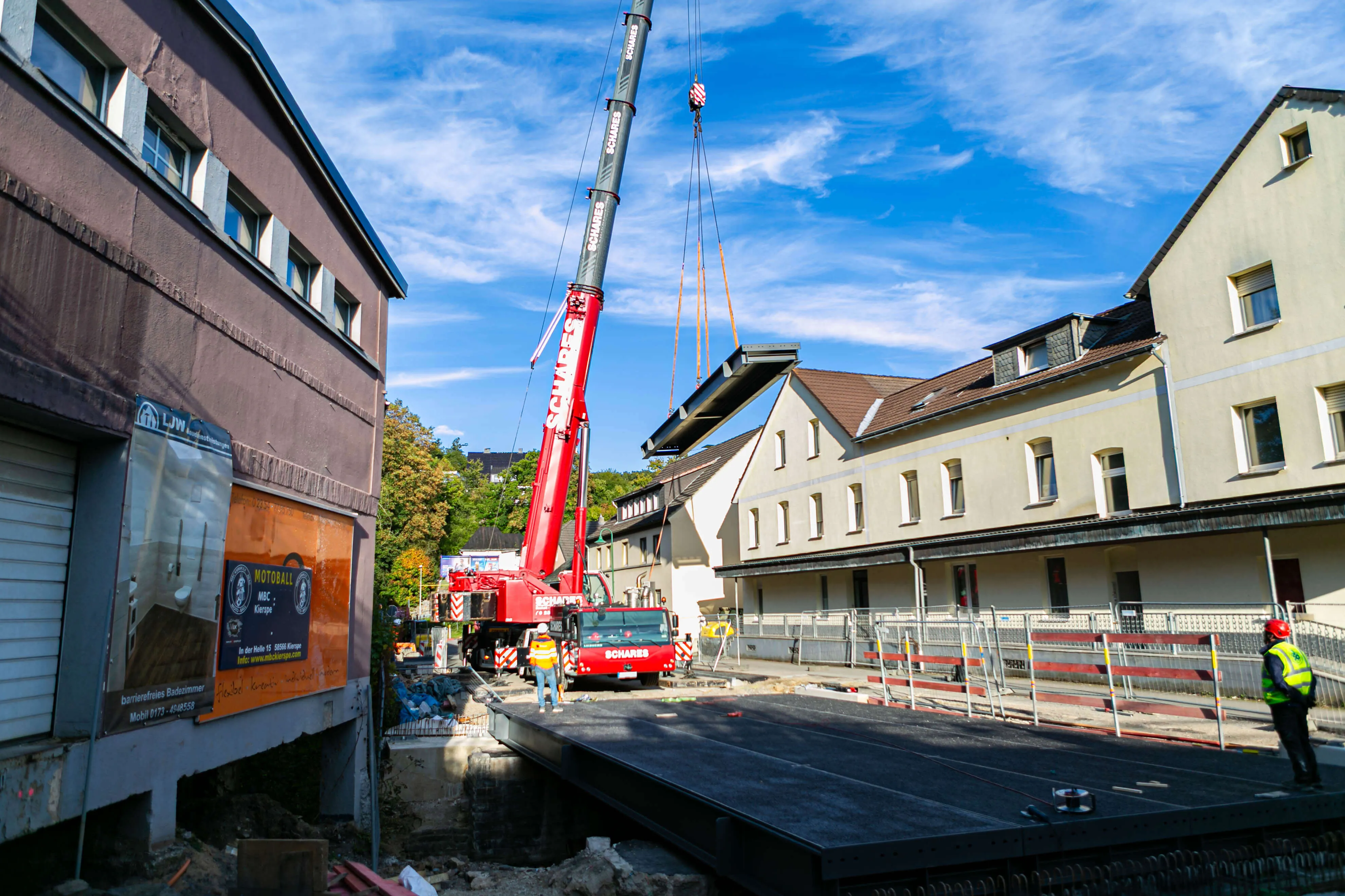 Wegen des Wetters macht sich Schanzenberger keine großen Sorgen - der bisherige Jahresverlauf und das vorausgesagte Wetter stehen den Arbeiten nicht im Weg. Und auch in einem anderen Punkt kann Schanzenberger die Kiersper beruhigen: Für die geplante Umgestaltung der Ortseinfahrt Kierspe-Bahnhof wird die nun gebaute Behelfsbrücke durch eine neue, temporäre Lösung ersetzt werden. Aufgrund des modularen Aufbaus der Behelfsbrücke kann das "Nachfolgemodell" jedoch unter halbseitiger Sperrung errichtet werden.