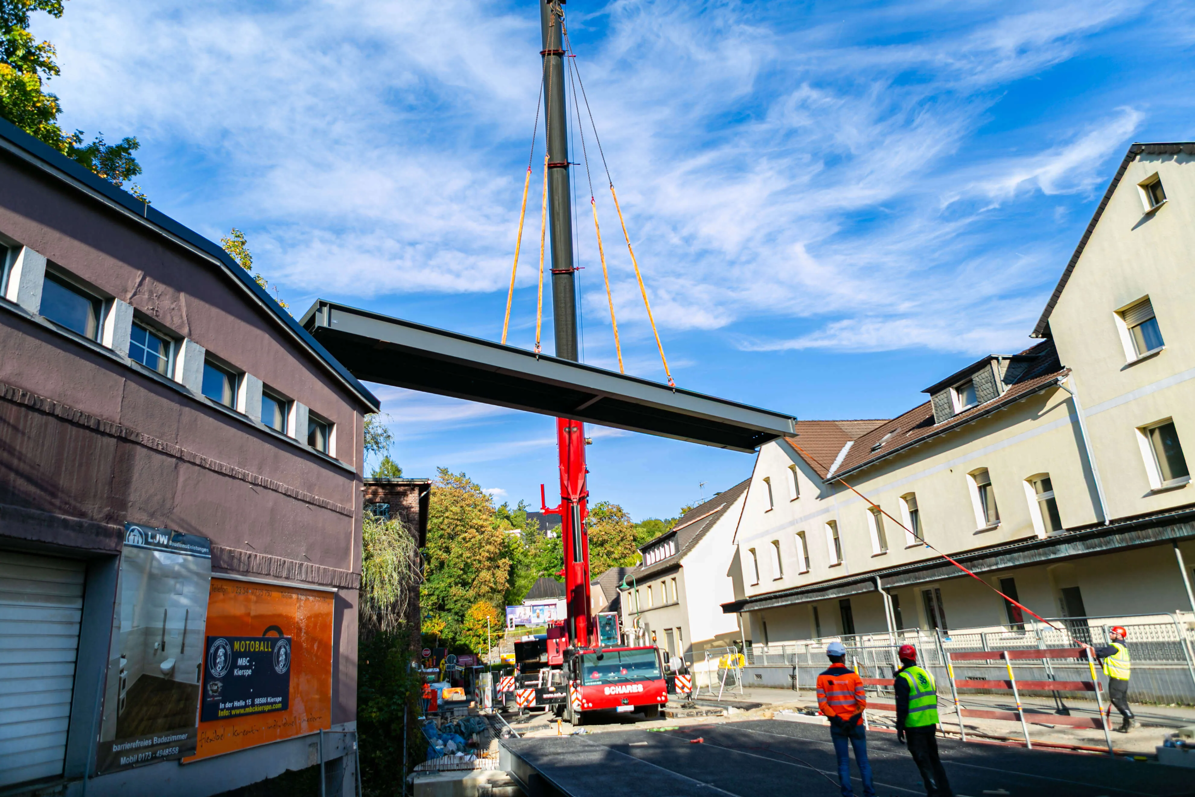 Am 1. Oktober um kurz nach 17.30 Uhr war das letzte Modul der Volmebrücke am Tannenbaum an seinem Platz. Die Fertigstellung des Projektes und die damit einhergehende Öffnung der Straße ist weiterhin für Ende Oktober geplant.