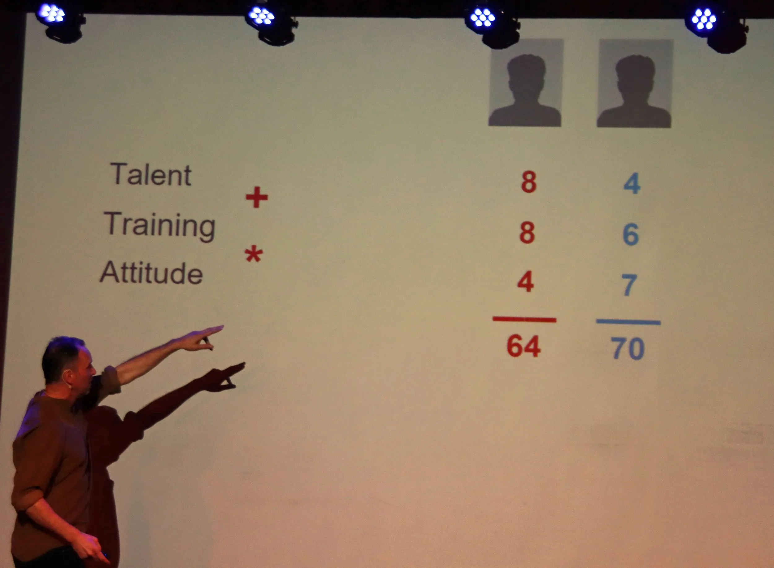 Training plus Talent multipliziert mit Haltung – Das ist die Formel, um aus Typen Riesentypen zu machen. Wie aus drei Faktoren ein Erfolg wird, schilderte Erfolgstrainer Dagur Sigurðsson am Mittwochabend, 8.Oktober, beim Volksbank-Forum.