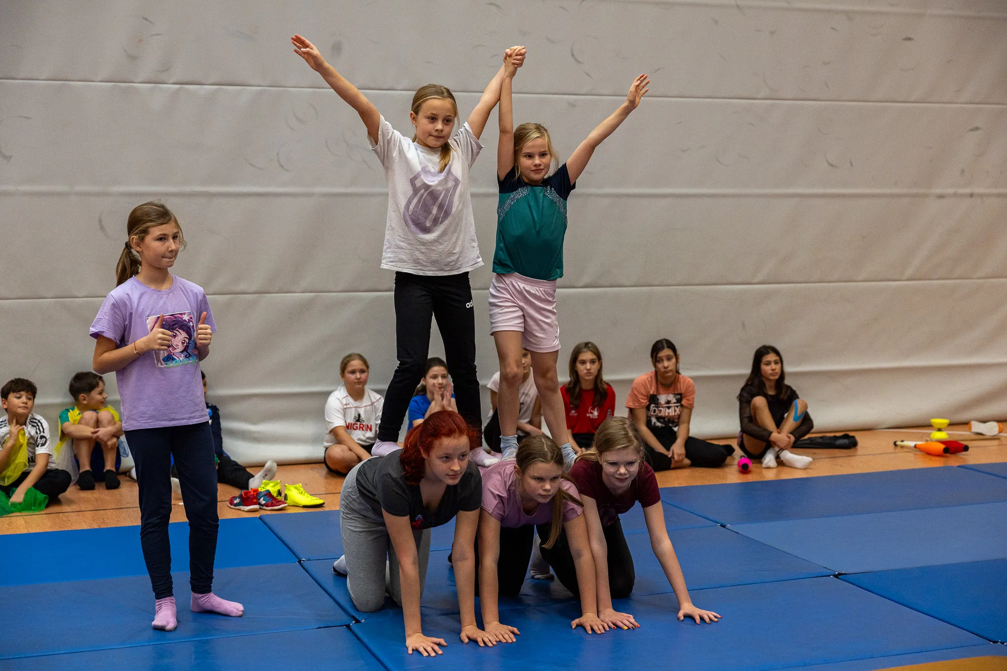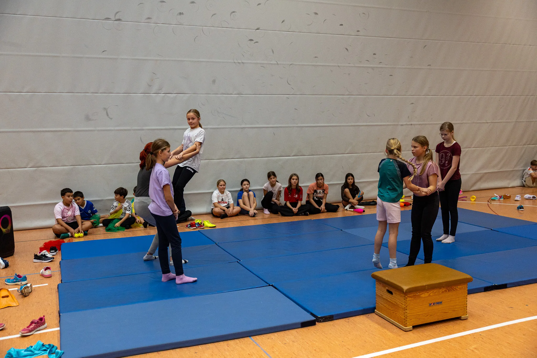 In diesem Jahr kam das Zirkusprojekt neu hinzu. Unter Anleitung von Claudia Koch-Meitz und Imke Metzner lernten die Schüler der Stufen fünf bis sieben Kunststücke - vom Jonglieren bis hin zur Menschenpyramide.