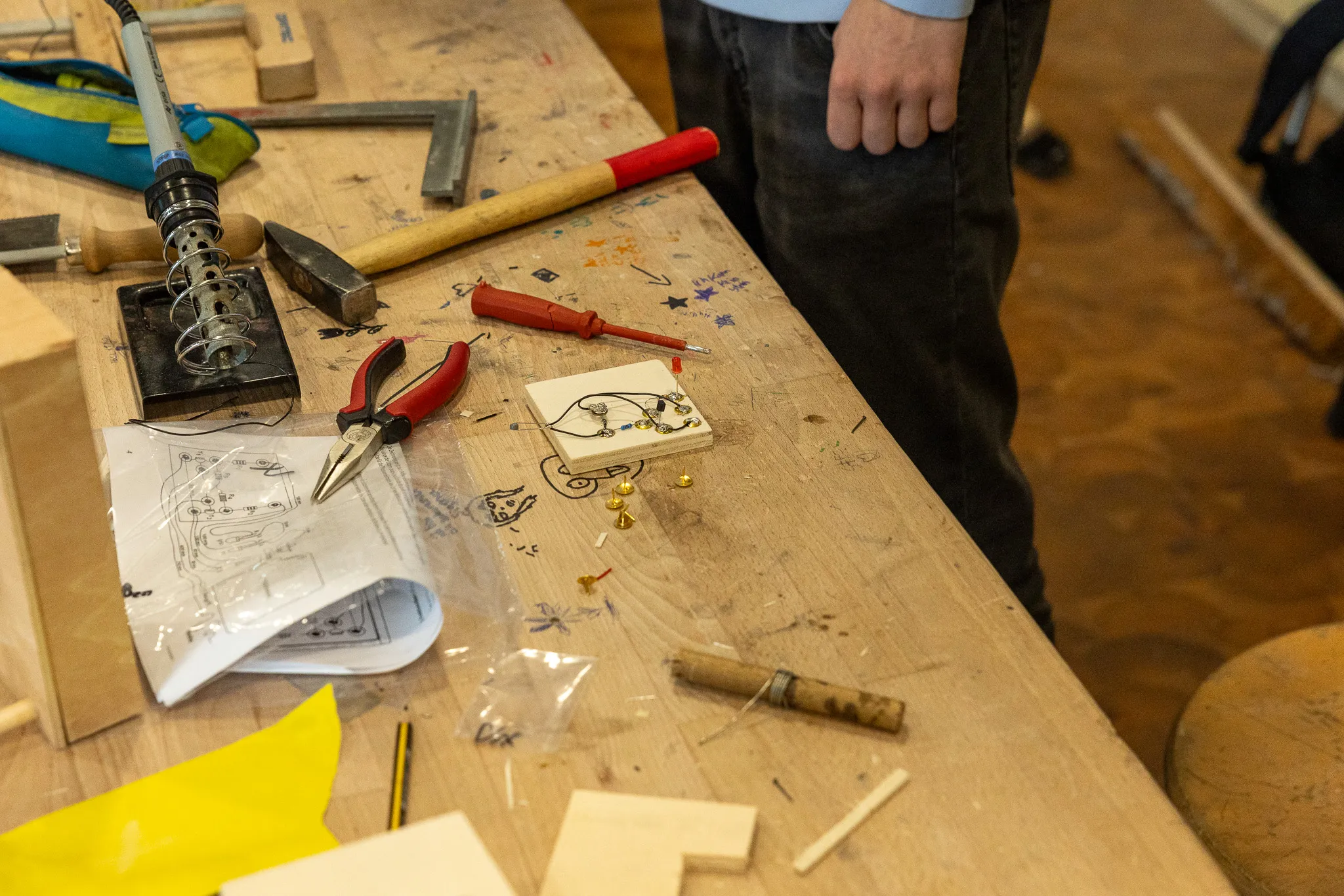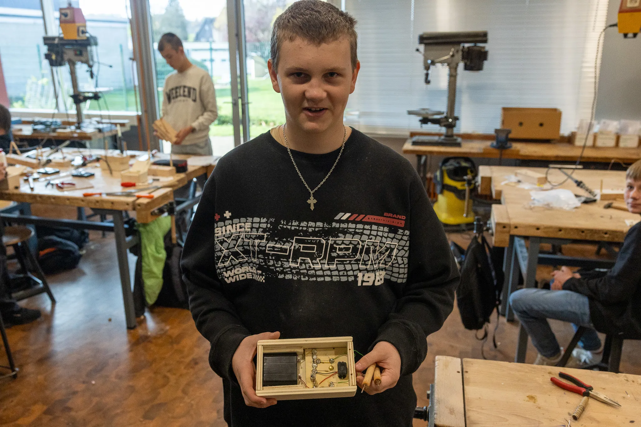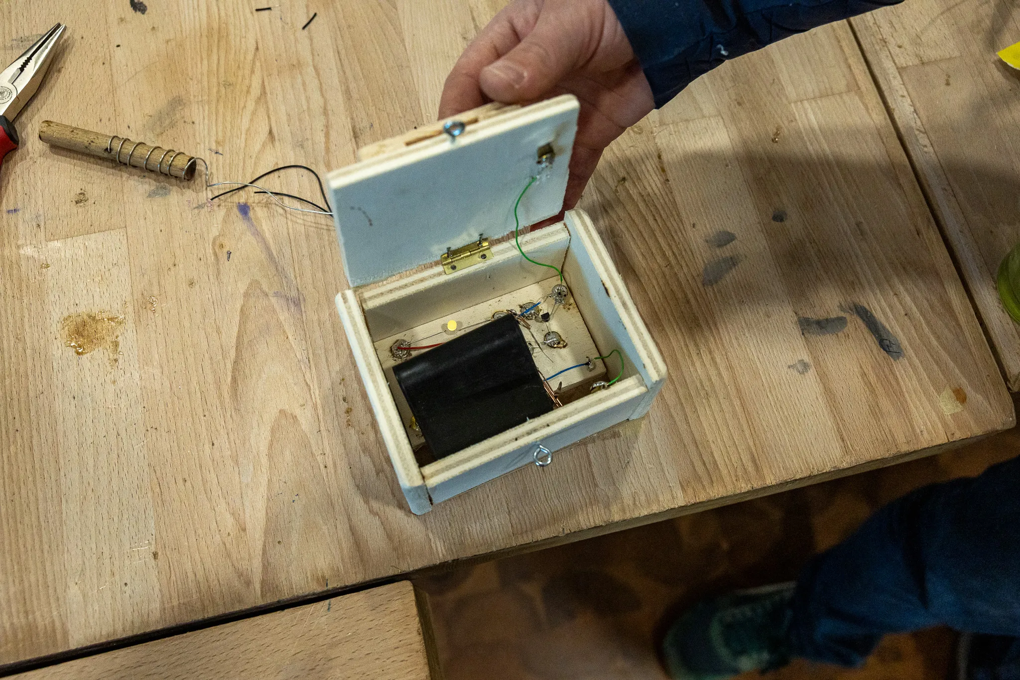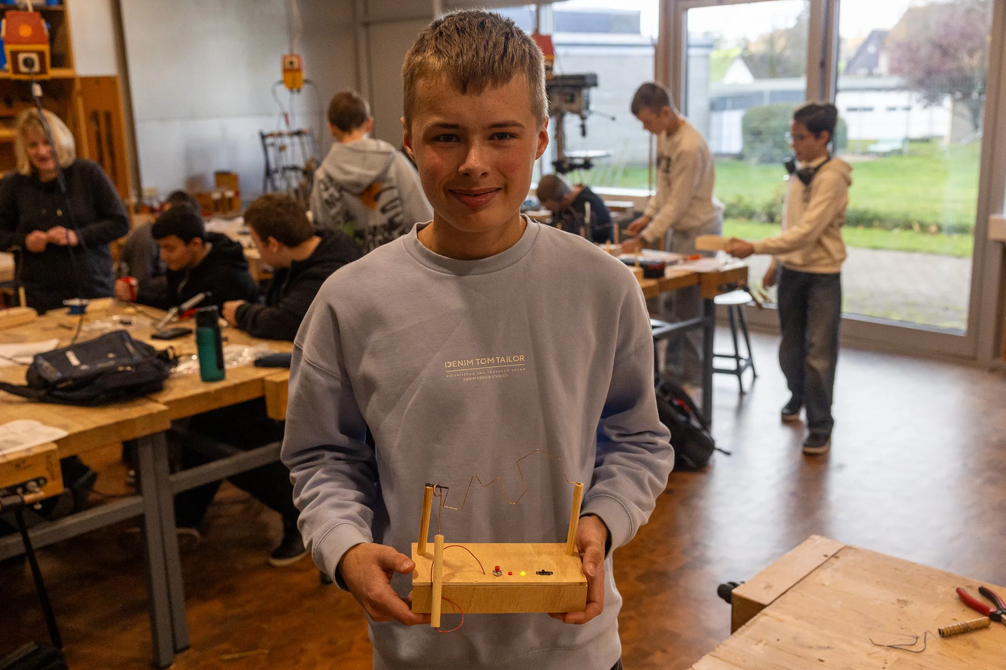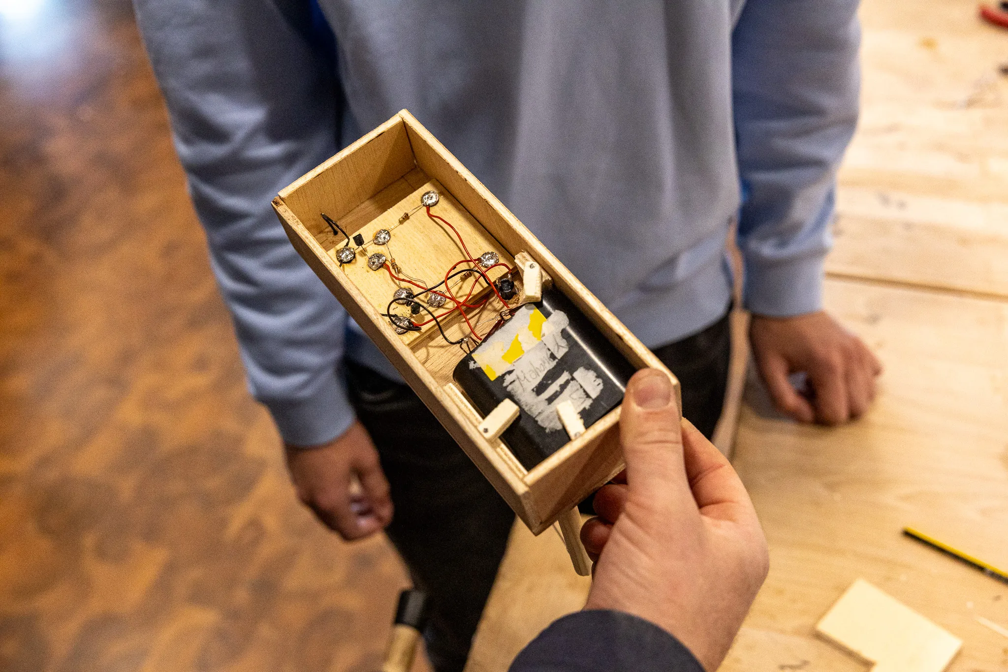 Auch die Elektrowerkstatt erfreute sich großer Beliebtheit. In dem Projekt von Torben Metzner, Kerstin Eichmann-Hürholz und Jan Hürholz entwickelten die Technik-Interessierten ihre eigene Alarmanlage.