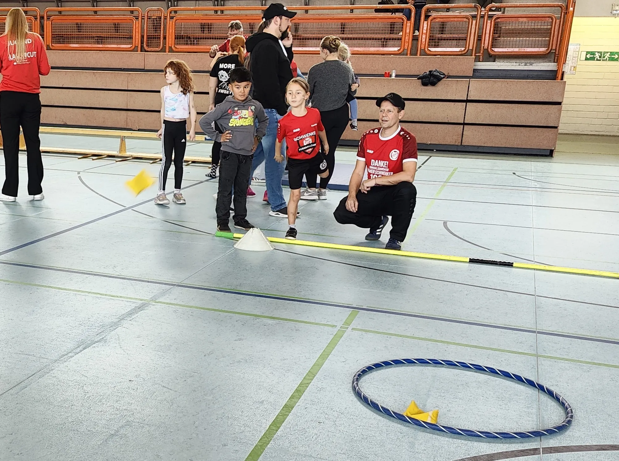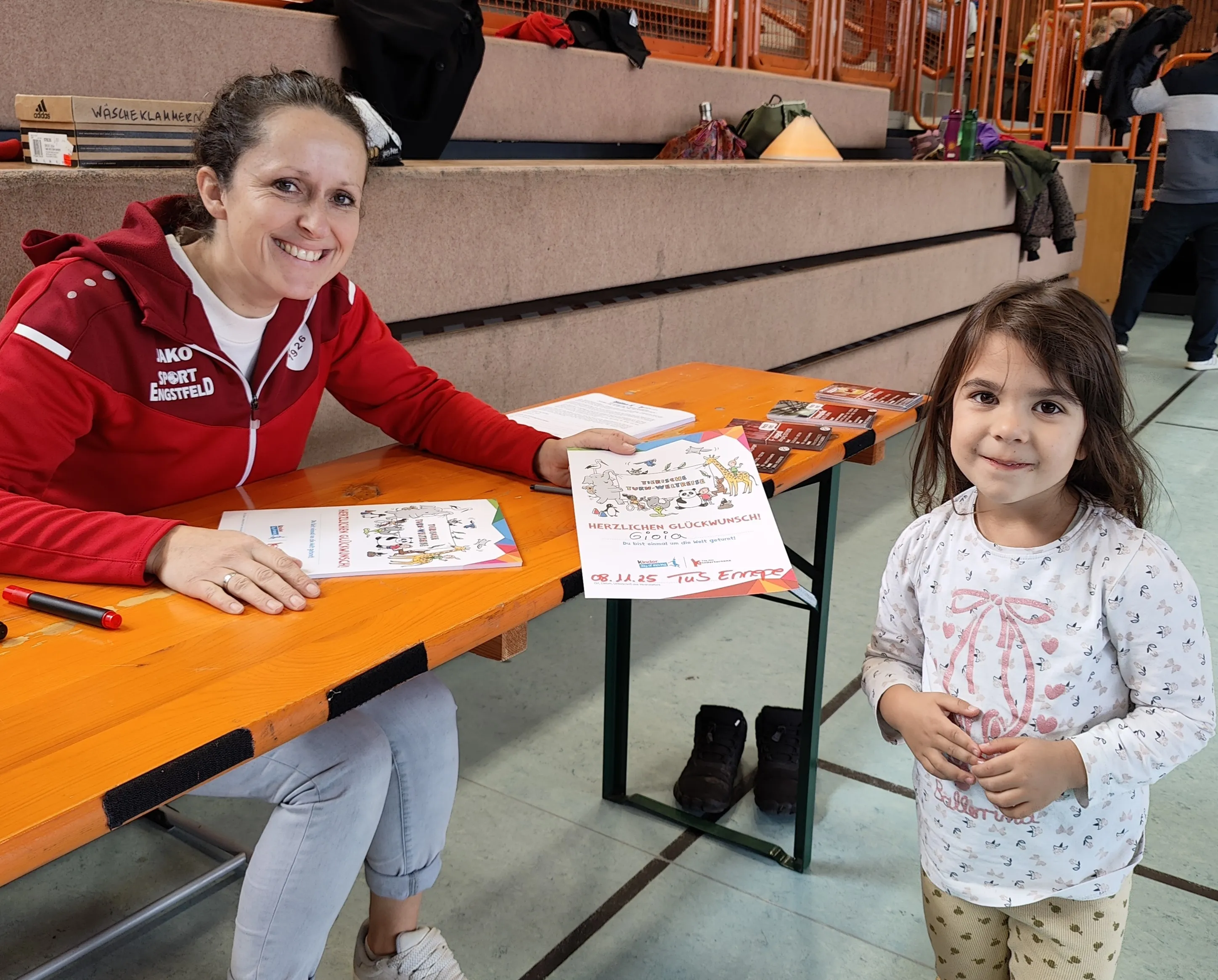 „Durch die vielen Vorerfahrungen des TuS Ennepe mit verschiedensten Angeboten und Veranstaltungen sind wir hier sehr gut vorbereitet. Wir haben heute rund 20 Helferinnen und Helfer im Einsatz, damit an jeder Station Unterstützung steht, Kinderschminken und Klebetattoos angeboten werden können und die Urkunden für die Kinder ausgefüllt und verteilt werden können. Auch für das leibliche Wohl ist gesorgt: Verköstigung mit Waffeln, Kuchen und Pizzaschnecken gibt es gegen eine kleine Spende, deren Erlös dem Verein zugutekommt.“