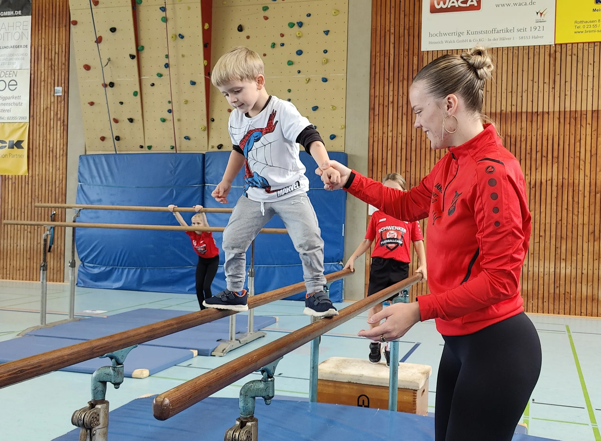 Lara Windfuhr leitet das wöchentliche Kinderturnen in Halver, immer dienstags von 16 bis 18 Uhr. Daniel Rösgen ist Trainer beim Trampolinspringen. Das findet mit verschiedenen Altersgruppen ab sieben Jahren bis zu den Erwachsenen statt, aufgeteilt in drei Gruppen, die donnerstags zwischen 17.45 und 21.30 Uhr trainieren.