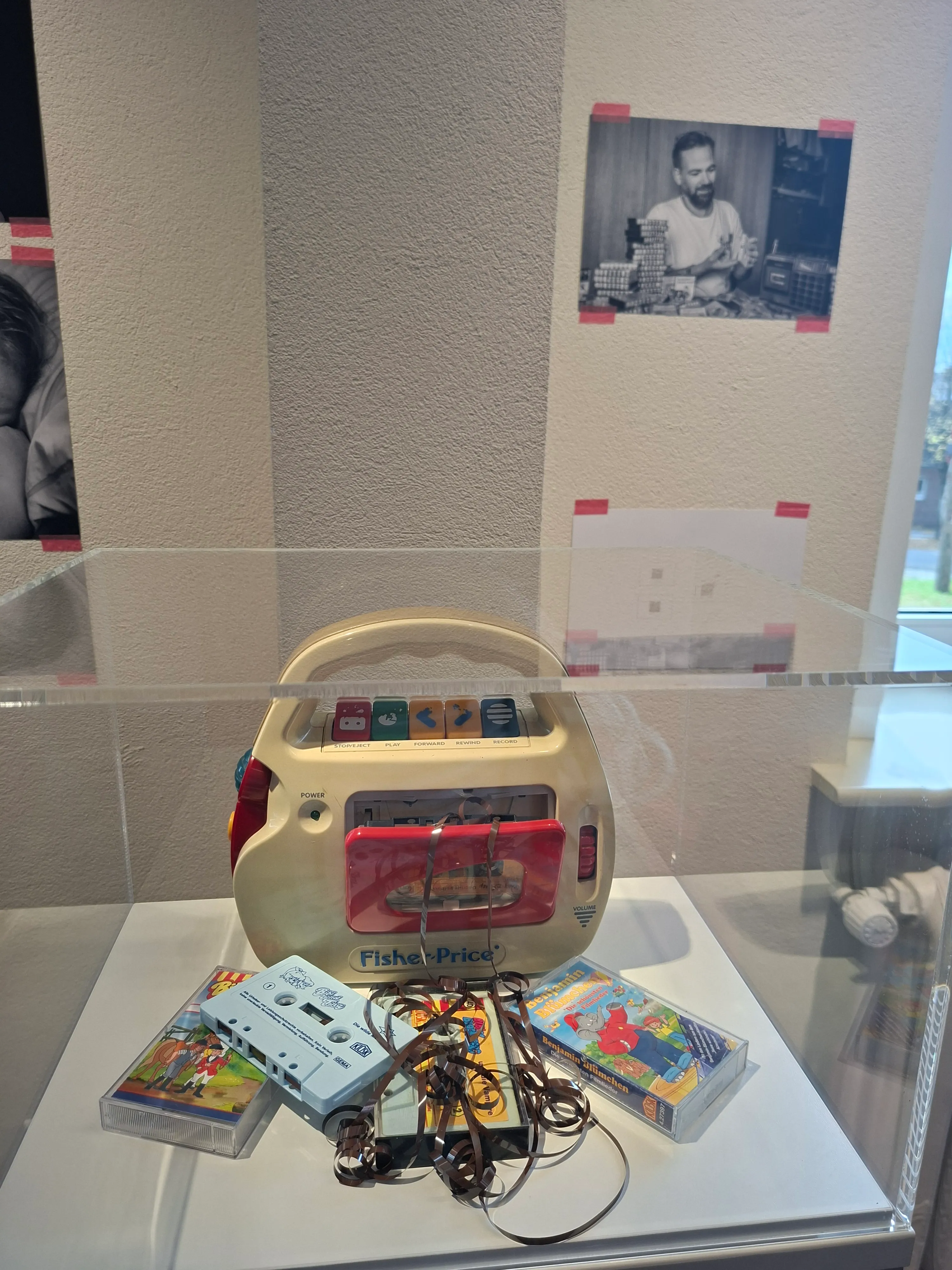 Seine Irritation bezog sich darauf, dass alle Fotos nur mit Klebeband an den Wänden befestigt sind. Kein Glas davor, kein Rahmen drumherum. Den Grund dafür benannte Jana Eilhardt, Kuratorin der Villa Wippermann, in ihrer Eröffnungsrede. "Wir haben lange überlegt, wie wir diese Ausstellung präsentieren", sagte sie. "Sie sollte direkt und nahbar bleiben, damit schieden Glasrahmen direkt aus." Der Zusammenhang zu Spielzeug und Kinderzimmerdekorationen von vor einigen Jahrzehnten brachte dann die Idee: "Wie waren denn die Bilder in unseren Kinderzimmern aufgehängt? Mit Tesafilm!" Und so bringt selbst die Präsentation der Fotos die Erinnerung an die Kindheit zurück.