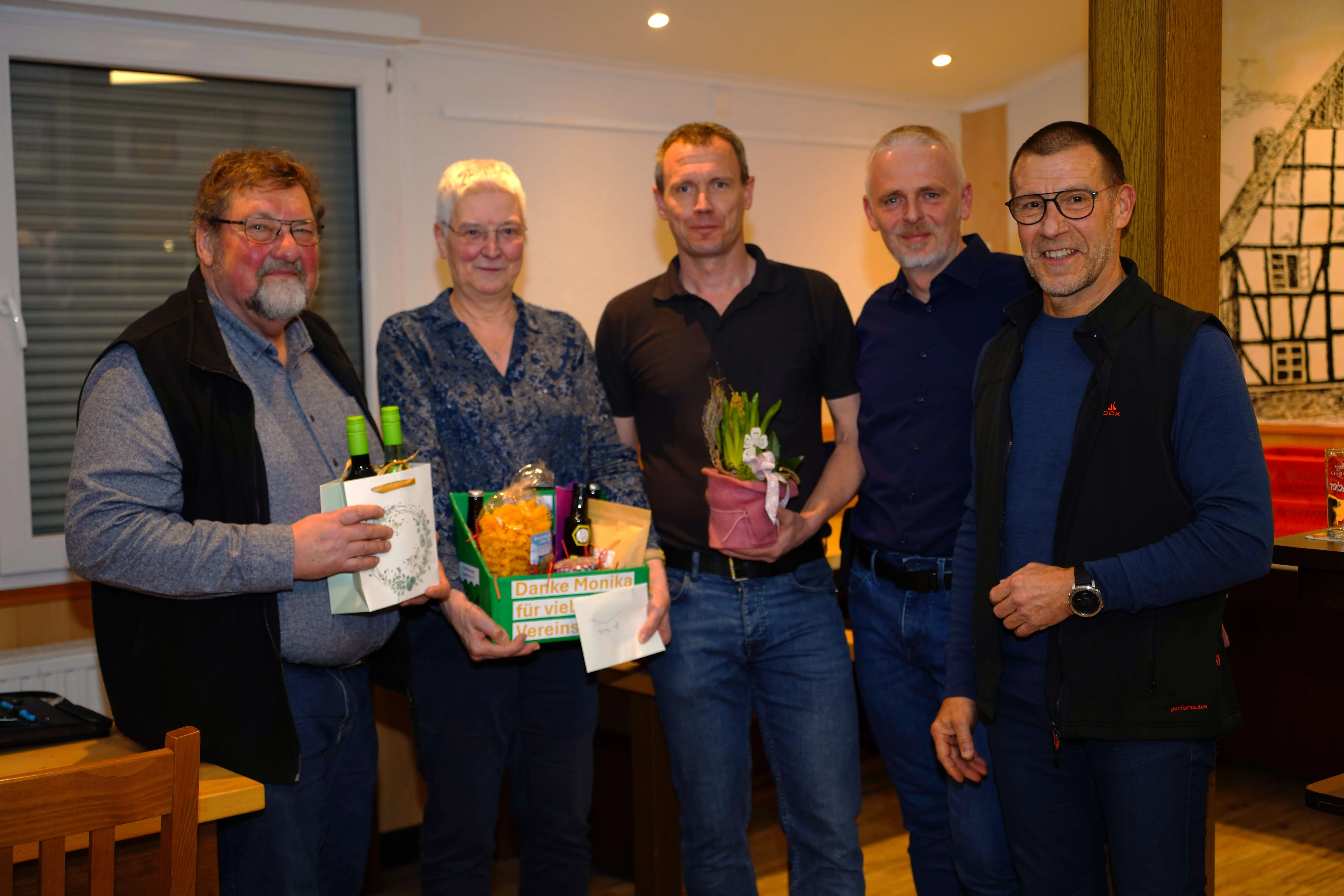 Unter dem Punkt Ehrungen stand am Ende der Veranstaltung die Verabschiedung von Monika Fechner als Schatzmeisterin an. Der Vorsitzende dankte ihr mit einem Präsent und einem Frühlingsgruß für neun Jahre Vorstandstätigkeit. Ebenso wurde Hans Blanke für 28-jährige Tätigkeit als Abteilungsleiter geehrt. Der gesamte Vorstand sprach den geehrten Mitgliedern seinen Dank für die Vereinstreue und ihren Einsatz für den Verein aus.