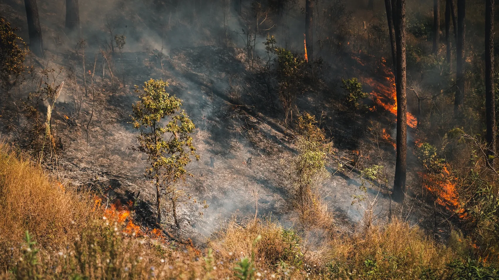 Beim Eintreffen fanden Feuerwehr und Polizei stand eine abschüssige und schwer zugängliche bereits Fläche in Brand. Die Flammen breiteten sich rasch aus und griffen auf rund 2000 Quadratmeter über.