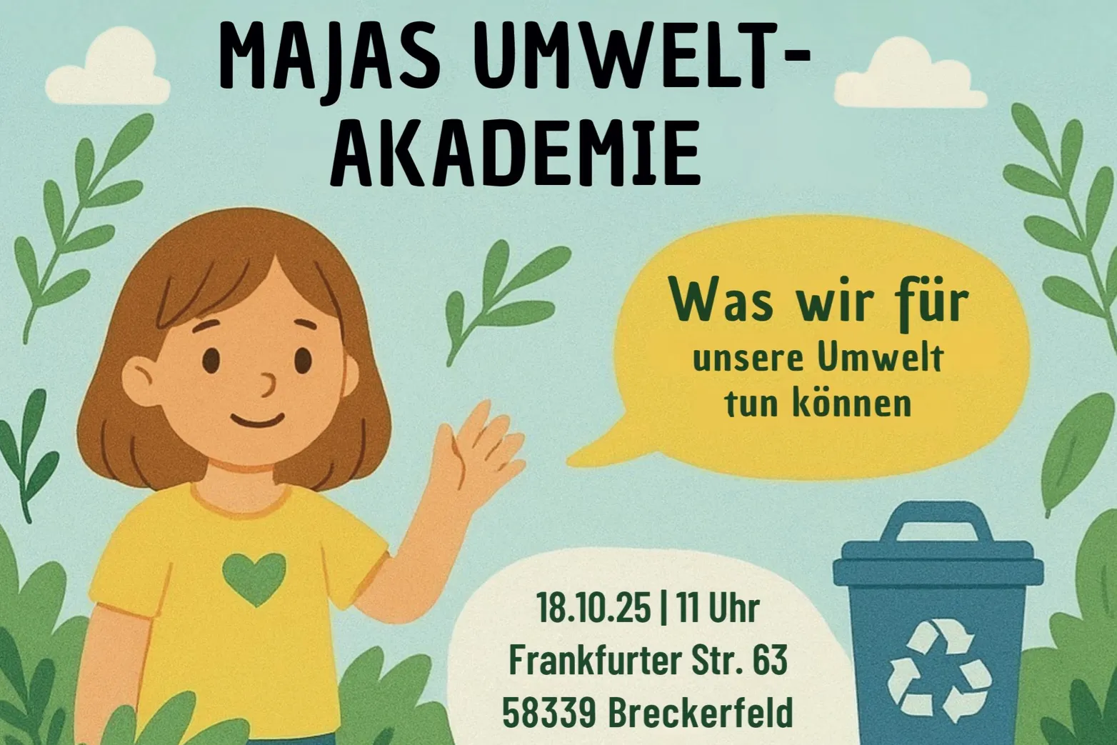 Maja ist sieben Jahre alt, geht in die zweite Klasse der Grundschule Breckerfeld und hat ein großes Ziel: die Welt ein Stück sauberer machen. Am Samstag, 18. Oktober, lädt sie daher alle Interessierten zur ersten Ausgabe ihrer „Umwelt-Akademie“ ein.