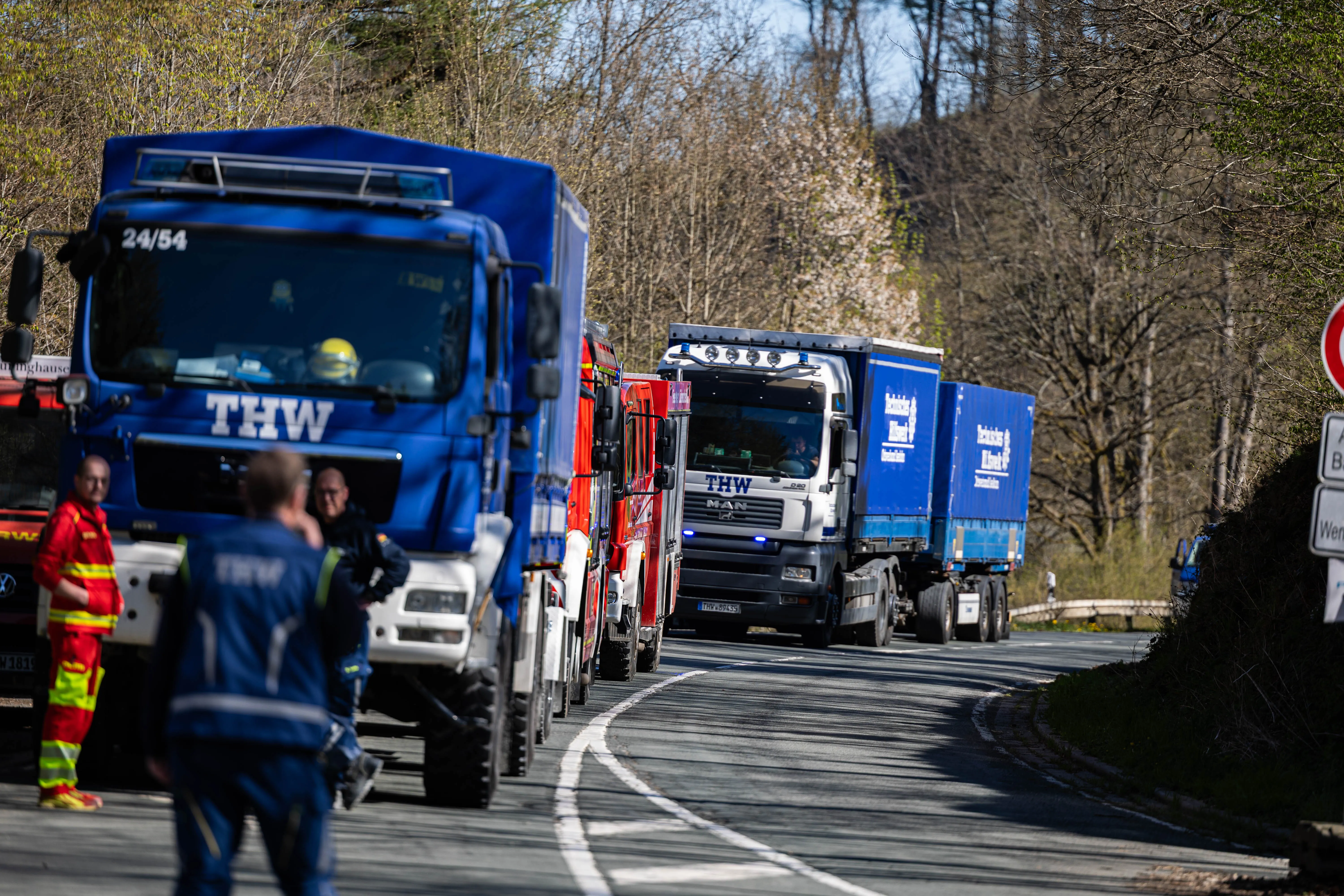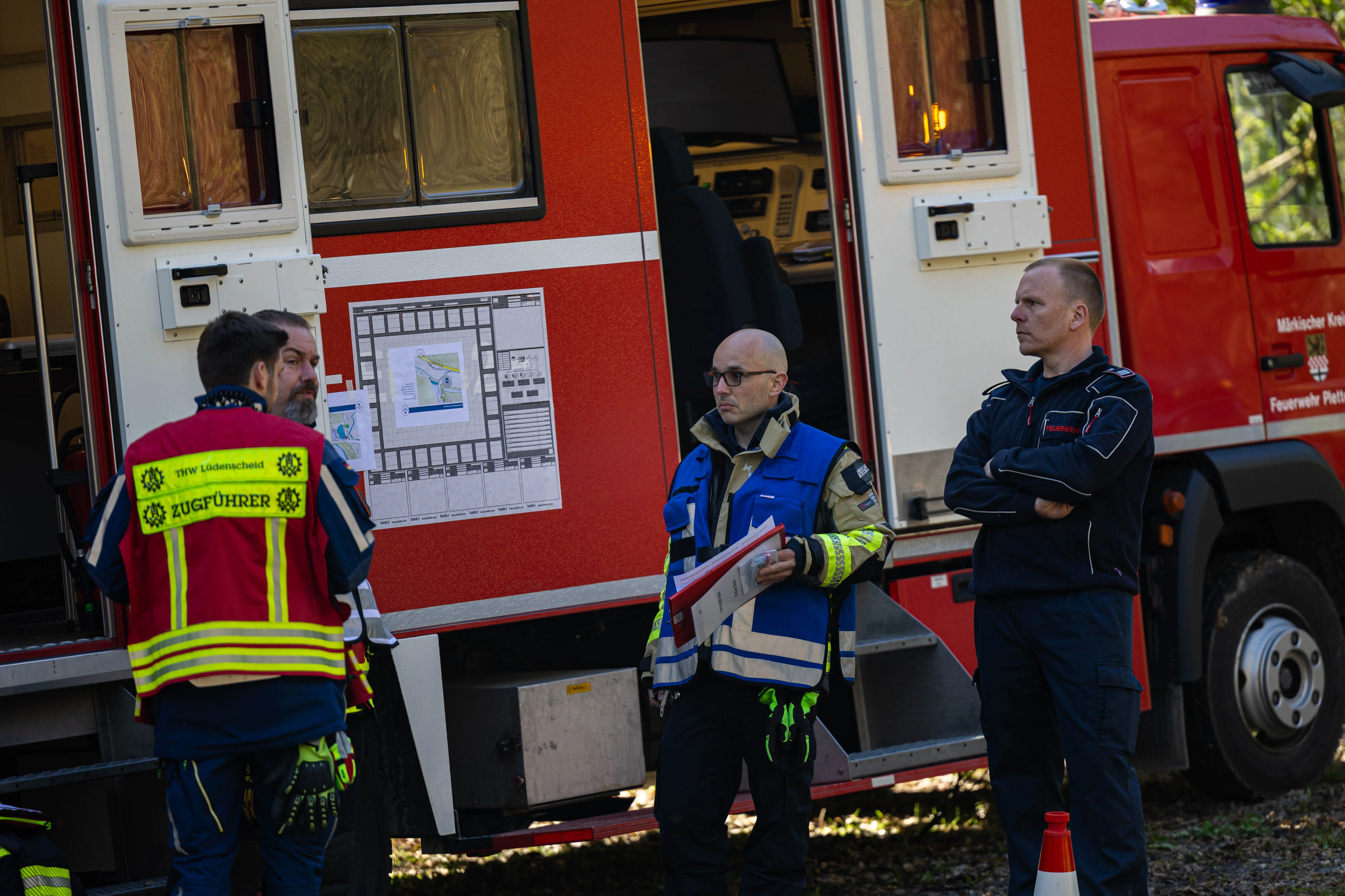 Die Einsatzleitung des Märkischen Kreises reagierte und alarmierte direkt Kräfte aus Feuerwehren, Technischem Hilfswerk (THW) und weiteren Hilfsorganisationen. Beteiligt waren Feuerwehren aus Lüdenscheid, Balve, Schalksmühle, Herscheid, Neuenrade, Plettenberg und Altena, die THW-Ortsverbände Halver, Lüdenscheid, Iserlohn, Lünen, Waldbröl und Balve sowie der Malteser Hilfsdienst aus Werdohl und Lüdenscheid. Ergänzt wurde der Einsatz durch die Drohneneinheit des Märkischen Kreises (Feuerwehr Nachrodt-Wiblingwerde), die Kreisleitstelle sowie den Stab der Einsatzleitung im Brandschutz- und Rettungsdienstzentrum (BRZ) Altena-Rosmart.
